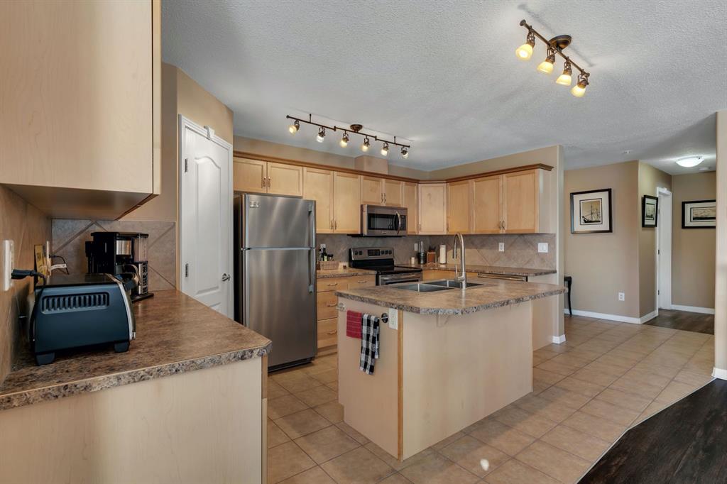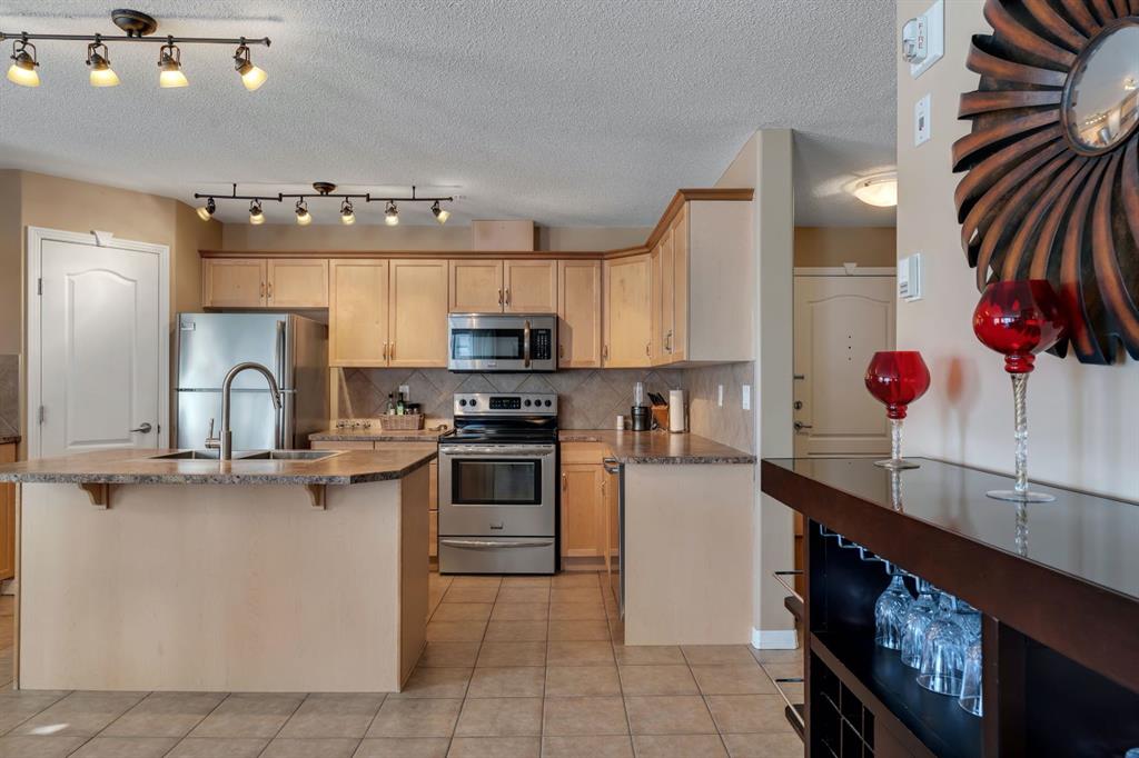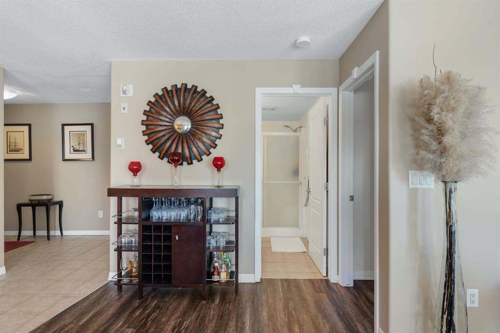 Wow, wow, wow! Such a rare offering! Welcome to this extra large 1240 sq ft , 2 bedroom, 2 bathroom corner unit with two private patios, titled underground parking, fantastic amenities and located in NW Calgary’s only lake community, Arbour Lake. The kitchen is an entertainer’s dream with an abundance of cabinetry and counter space, a walk in pantry, stainless steel appliances and a large island with breakfast bar seating. The open concept layout flows beautifully into the bright and inviting living space featuring a cozy soothing fireplace and sliding glass doors that lead to your private patio, perfect for BBQs and outdoor dining. The spacious primary suite is truly impressive with plenty of room for a king sized bedroom set, a large walk through closet and a generous ensuite complete with ample counter space and a linen closet. Sliding glass doors also lead to a second private patio, the perfect spot to enjoy your morning coffee or an evening cocktail. The second bedroom is also generously sized and conveniently located next to the second full bathroom, making it ideal for guests, family or a home office. Newer Luxury vinyl plank flooring runs throughout the home and the oversized laundry room offers excellent storage space. This exceptionally well managed 18+ complex is known for its peaceful atmosphere and strong sense of community, where listings rarely come to market. Residents enjoy outstanding amenities including a fully equipped fitness centre with sauna and change rooms, a recreation room with kitchen and games area, a woodworking shop, beautifully landscaped grounds with a pond, gazebo and fountain, and plenty of visitor parking. Located just steps from transit, pathways, parks and the private Arbour Lake beach, you will enjoy year round lake access including swimming, skating, tennis courts and a clubhouse. Shopping, restaurants and schools are all nearby with quick access to major routes for an easy commute downtown or a weekend escape to the mountains. This is more than just a condo, it’s a lifestyle! Mr. and Mrs. Clean truly live here! This is a home where pride of ownership is unmistakable! Start enjoying lake living this summer in Arbour Lake, Calgary’s award winning four season lake community. This property is the ultimate combination of beauty, comfort, and long term value. A forever home designed for you and memories on the water. Do not miss it! Call today!.A must to see!