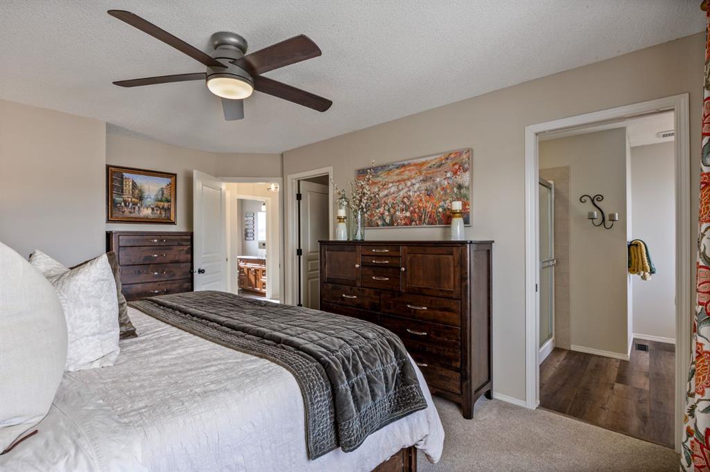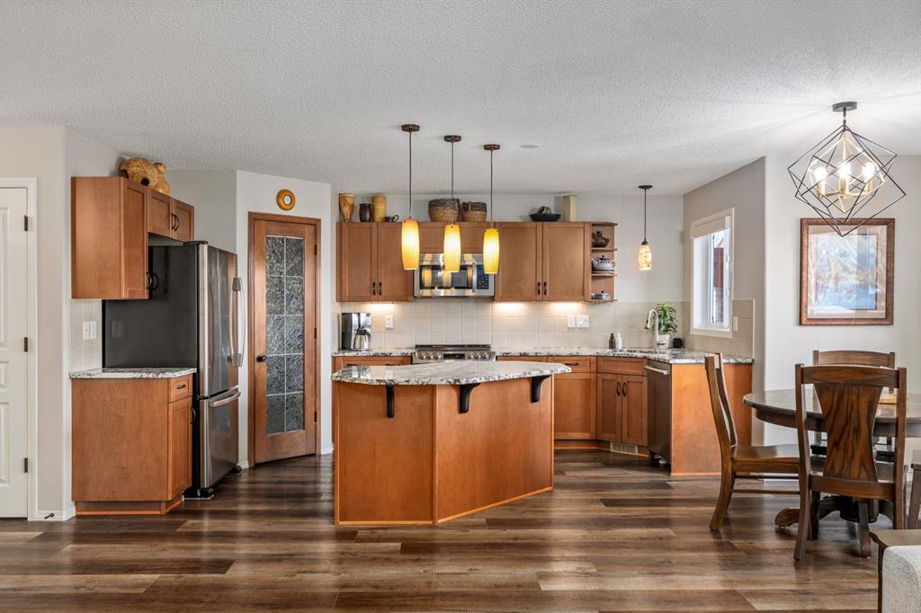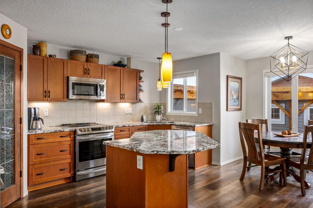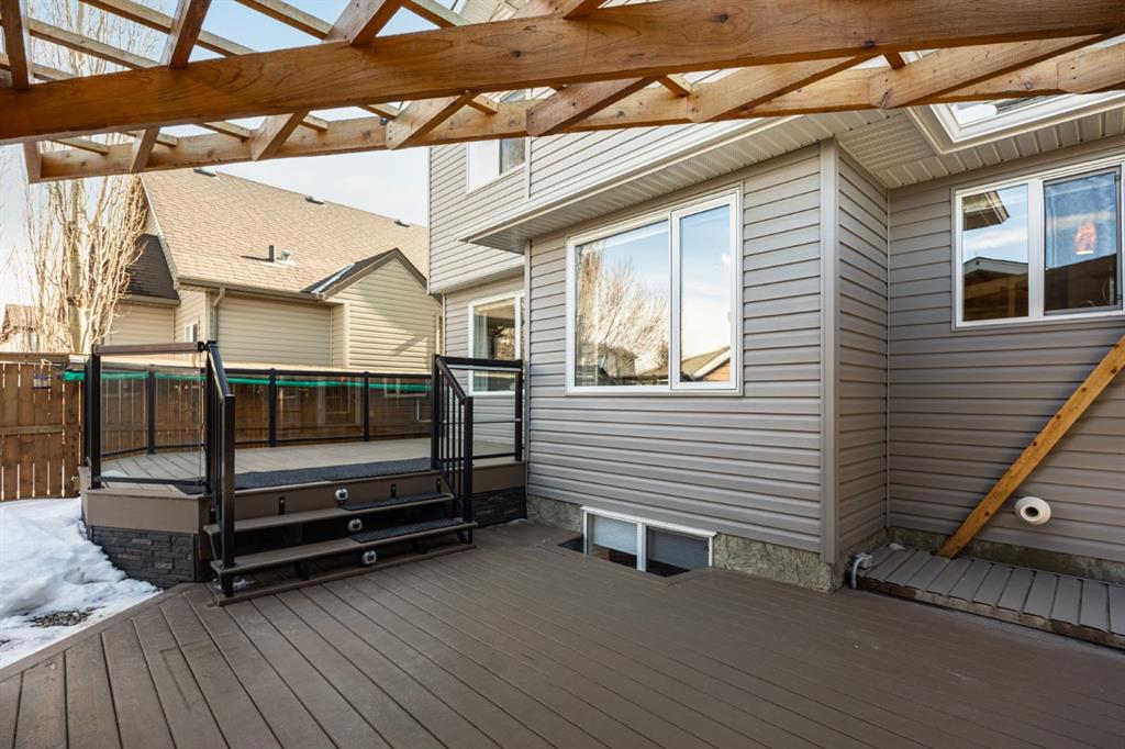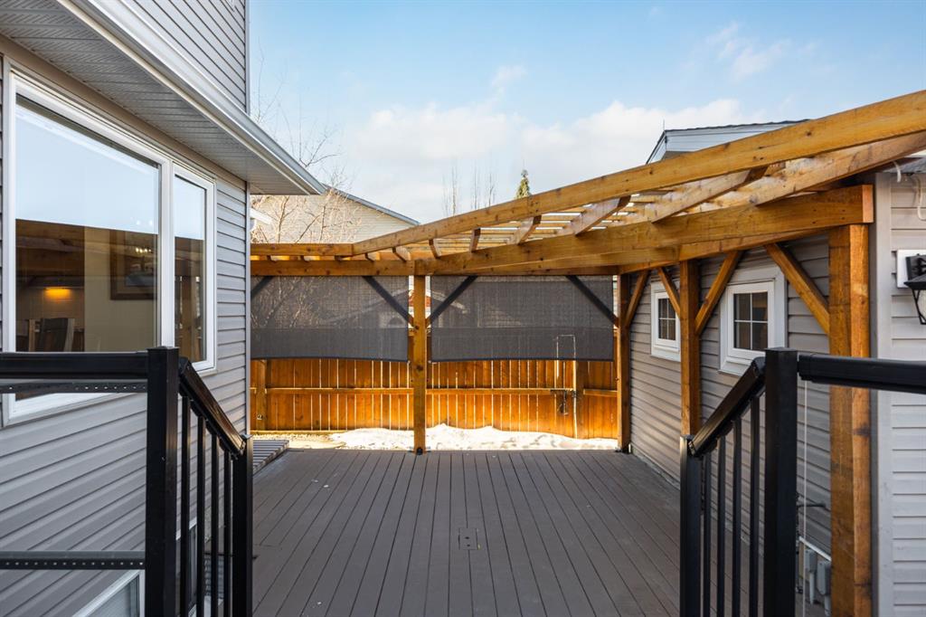 Step inside to a home that immediately feels inviting and thoughtfully finished. Designed for both comfort and everyday living, the space features luxury vinyl plank flooring and plush carpet throughout, paired with timeless granite countertops, Hunter Douglas blinds, and a cozy gas fireplace that anchors the main living area and sets the tone for the home. The kitchen is designed for ease with central vacuum and island kick, while main floor laundry adds everyday convenience. The fully developed basement expands your living space, perfect for movie nights, guests, or a home gym. Comfort and care shine throughout: air conditioning, new hot water tank (2022), new stove (2022), and furnaces that are professionally cleaned regularly with carpets cleaned annually. Storage is abundant with extra attic storage in the garage, plus a Vacuflo system. Step outside and you’ll find a backyard built for all seasons. Enjoy summer evenings on the two-tiered deck with cedar pergola and privacy shades, composite board landings, a propane rough-in for a fire pit on the lower patio, outdoor hot water bib, and hanging plant irrigation. There’s a shed, covered outdoor bicycle storage, and an extended driveway completed in 2024—perfect for extra parking or toys. This is more than a house—it’s a home that’s been loved, upgraded, and meticulously maintained. This beautifully maintained property offers the rare combination of a double attached garage complete with attic storage with a drop-down ladder plus a separate heated, fully finished single detached garage/shop—complete with electrical sub panel, more attic storage, alley access, and even a built-in basketball net on the concrete apron. Whether you’re dreaming of the ultimate man cave, workshop, or hobby space, this 200 sq ft heated shop (built in 2014) delivers. A rare opportunity in one of Airdrie’s most sought-after communities.