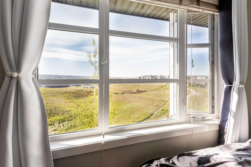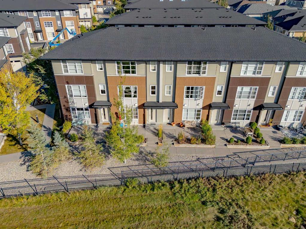 Open House 2-4PM, Saturday, April 4, 2026. Priced to sell! Enjoy breathtaking ravine and green space views from this beautifully maintained 3-bedroom, 2.5-bathroom townhome in Vantage on Evansridge. With nearly 1,541 sq. ft. of finished living space, a double attached garage, and low condo fees, this home offers outstanding value compared to nearby single-family houses. From the private front patio, step into the main floor featuring a versatile bedroom that can also serve as a home office or den, along with direct access to the garage. Upstairs, the open-concept second level is anchored by a stylish kitchen with a large granite island, stainless steel appliances, dark-stained maple cabinets, and a spacious pantry. The kitchen flows seamlessly into the dining area and bright living room, where expansive windows frame the stunning ravine views. A balcony with a gas line and a convenient half bath complete this level. The top floor offers three bedrooms, two full bathrooms, and laundry. The primary suite features a walk-in closet and a beautifully upgraded ensuite with a double shower. Additional highlights include Hunter Douglas window coverings, a water softener, and an insulated garage that easily fits two vehicles. This move-in ready home is surrounded by natural pathways, playgrounds, and green space, with Our Lady of Grace School, transit, and quick access to Stoney Trail and Deerfoot nearby. With incredible views, modern finishes, and a fantastic location, this is the perfect place to call home. Click the Virtual Tours for more detail!