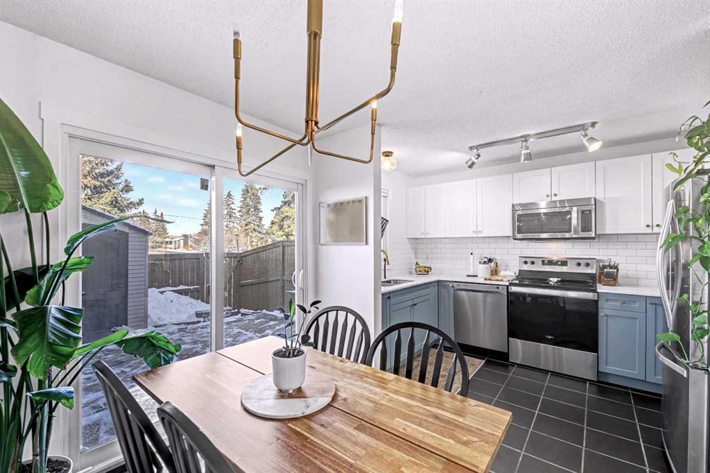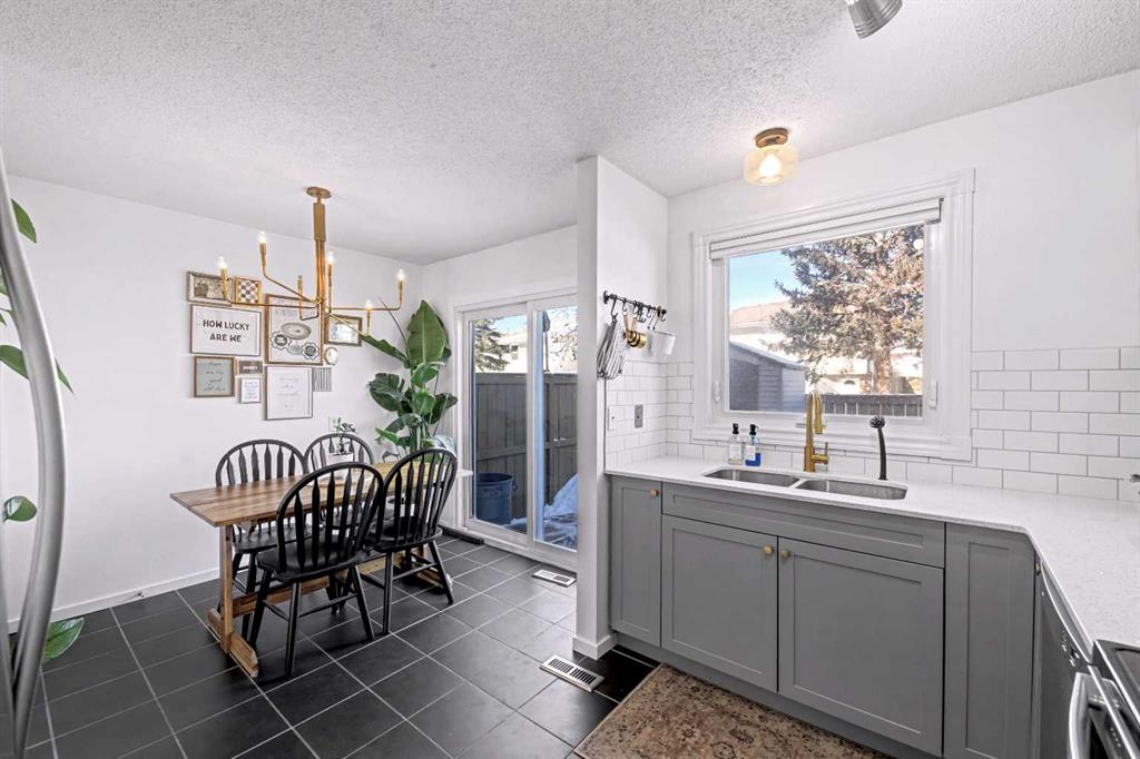 Welcome to Queensland Park! This beautiful and Move in Ready end unit has 2 spacious Bedrooms, 918 square feet of space, Low Condo Fees and a ton of recent upgrades, plus a private fenced back patio! Full of natural light throughout, you get maximum efficiency year round with all windows and exterior doors replaced in 2023. Start your day in this bright and updated kitchen/dining room with New Cabinets, Quartz Counter Tops, Subway Tile back splash, Full Appliance package (2025), Under-mount Sink with Brass finish Faucet, Custom shelves and a new lighting package. The patio sliding door connects you to the private fenced patio for relaxing days in the summer and outdoor entertaining. Into the living room you'll find enough space for cozy evenings to unwind and a front entrance with closet. Upstairs are two spacious bedrooms, the primary is bright with large south facing windows, new lighting and fits a king size bed with room to spare. The 4pc Bath has has been updated (2025) with a new sink, quartz counter top and cabinetry, Shower Kit, lighting and vinyl flooring. The secondary bedroom fits a queen size bed and more with lots of closet space. The unfinished basement is ready for development, extra storage or any project you want to take on. Located steps away from all amenities, schools, transit and walking/ bike trails that lead into Fish Creek Park. This amazing home is Upgraded and ready to go, all it needs is you. Book a showing today before it's gone!