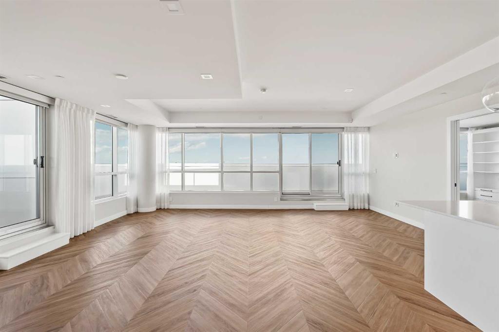 Proudly presenting Suite 717, the most coveted West facing corner penthouse in the prestigious Gateway buildings. This extraordinary home offers stunning panoramic mountain views, evening sunsets, impeccable custom upgrades, and a lifestyle of sophistication and comfort. Thoughtfully designed, the home features electric blackout blinds on all windows, a high-end security system with burglar-proof locks, and a versatile main floor with a custom Murphy bed, built-in office, two separate office spaces, refined window treatments, a customized laundry room, and comfort-raised toilets. The gourmet kitchen is a true showpiece, boasting a single bowl sink, garburator, oversized globe pendant lights, dimmable lighting, and upgraded pull out waste bins. Additional luxuries include two premium parking stalls directly outside of the elevator, two storage lockers, accessibility features throughout, and a bonus spacious in suite storage area under the stairs. This penthouse also comes with air conditioning, chevron flooring, quartz countertops, LED square pot lights, solid core doors, soft close drawers, and a gas line on the patio. Built in 2019 with concrete construction and exceptional soundproofing, this boutique style building is unlike anything else in the city. Residents enjoy access to a rooftop patio, stylish residents' lounge, concierge service, visitor parking, EV chargers, and secure bike storage. Located in the Trendy West District this property is steps from Sobeys, Big T's BBQ, UNA Pizza, Deville Coffee, F45 Gym, Hankki, YYC Cycle, and more, with quick access to Old Banff Coach Road, Stoney Trail, and nearby mountain escapes. The fast growing West District will soon offer over 1 million square feet of retail and commercial space, designed for a walkable lifestyle with 20-ft sidewalks and bike paths. Just 15 minutes from downtown, 5 minutes to Winsport, and 60 minutes to the Rockies, Suite 717 offers unmatched urban convenience with a breathtaking natural backdrop. Book your showing today!