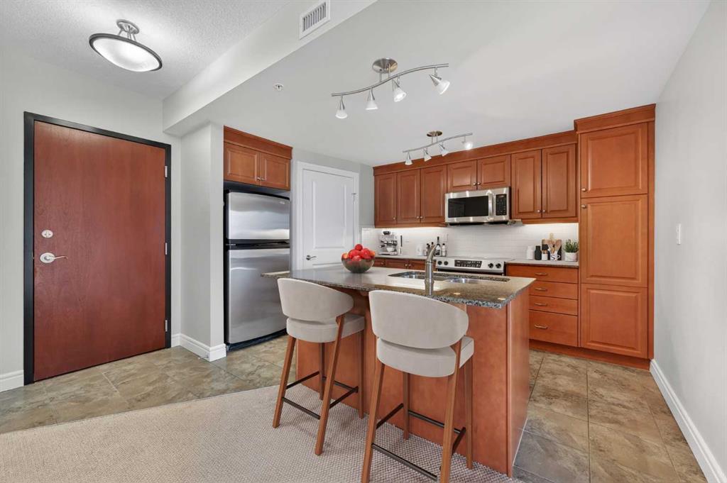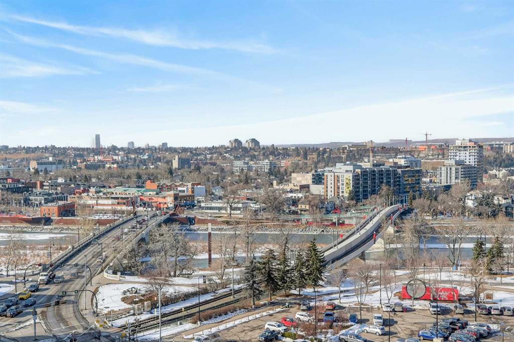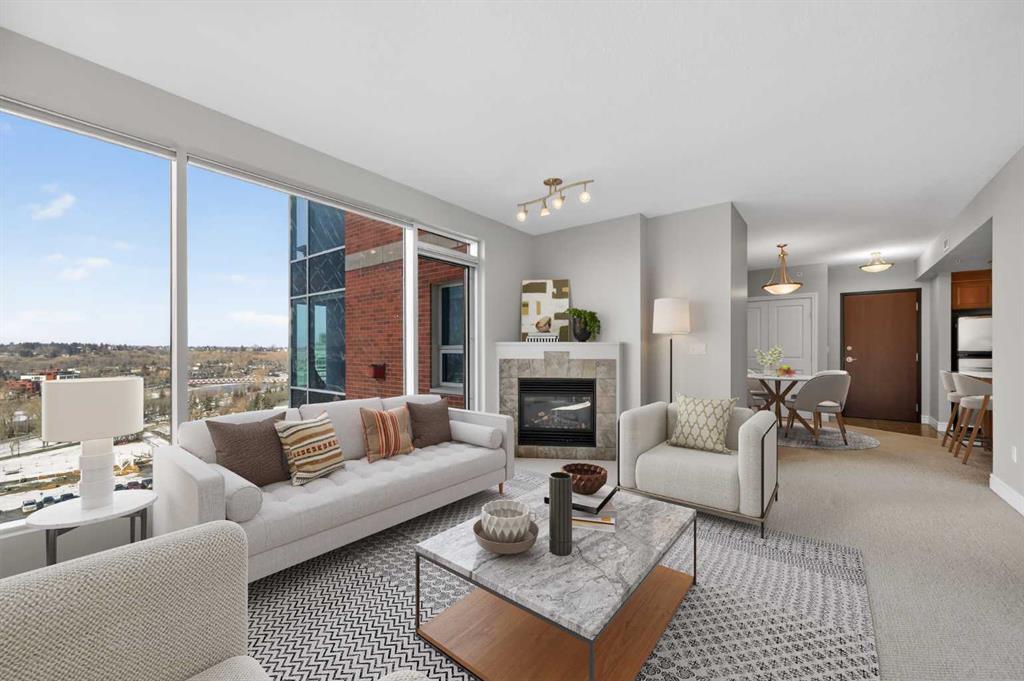 Five West Phase II – Elevated Executive Living in the Heart of Downtown Perched on the 14th floor of Five West Phase II, this sophisticated one-bedroom residence is designed for the young executive who values both momentum and balance. Framed by floor-to-ceiling windows, the space is flooded with natural light and showcases sweeping views of the Bow River and Calgary’s iconic skyline—an inspiring backdrop whether you're starting your morning or winding down after a full day. The open-concept layout creates effortless flow for entertaining or relaxing. A cozy gas fireplace adds warmth and character, while the private balcony becomes your personal vantage point for morning coffee, golden hour sunsets, or simply taking in the city energy below. The kitchen is sleek and functional, featuring granite countertops, stainless steel appliances, and a versatile island with seating, perfect for casual dining, hosting friends, or catching up on emails before heading to the office. In-suite laundry, central air conditioning, a titled underground parking stall, and even a convenient car wash bay in the building ensure your lifestyle runs seamlessly. Step outside and you’re moments from everything that defines downtown Calgary living. Walk to Prince’s Island Park for a midday run or weekend festival, cycle along the Bow River Pathway, or meet colleagues for dinner in Kensington. With the downtown core at your doorstep, commuting becomes optional—and convenience becomes standard. This is more than a condo. It’s a statement of lifestyle, where career ambition meets riverside tranquility, and every view reminds you why you chose to live at the centre of it all.