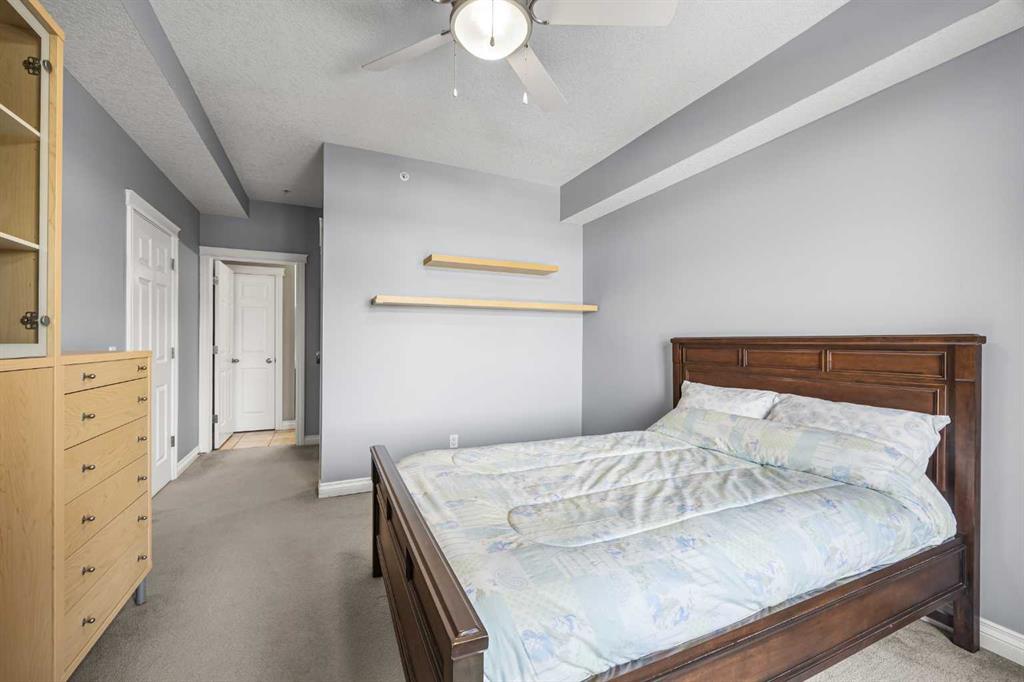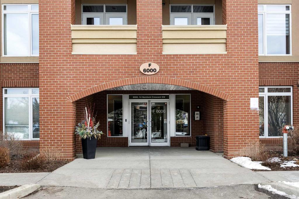 Welcome to this beautifully appointed apartment in sought-after Spruce Cliff, offering a lifestyle just 5 minutes from downtown Calgary. This 1 bedroom + Den, 1 bath home features 675 sq ft of thoughtfully designed living space with impressive 9-foot ceilings throughout, creating an airy, spacious atmosphere. Step inside and discover an inviting open floorplan that begins with the Kitchen featuring a raised breakfast bar, perfect for morning coffee or casual dining. The layout flows seamlessly into the Dining room with ceiling fan overhead, then continues to the bright Living room anchored by a warm fireplace—ideal for cozy evenings. The Living room opens to your private west-facing Balcony with gas hookup that is handy for your BBQ. The Primary bedroom offers a peaceful retreat with a ceiling fan for year-round comfort, generous walk-in closet, and a convenient 4-piece ensuite bath with an extra storage closet for effortless organization. A versatile Den provides the perfect home office or creative space. The in-unit Laundry room includes convenient closet organiser for everyday ease. Your condo fee covers water and gas, plus a titled underground parking stall and an assigned storage locker. The Copperwood complex feels like a private club with luxury amenities including fitness centre, recreation room, workshop, car wash bay, and rentable guest suites for hosting your inner circle. Located in prestigious Spruce Cliff, right next to Shaganappi Point Golf Course and mere steps from Westbrook LRT Station, Westbrook Mall, and CF Chinook Centre. Imagine starting your day on the scenic trails of Edworthy Park and the Bow River pathways, just moments from your door, then enjoying downtown Calgary's restaurants, entertainment, and culture—all within 5 minutes of home. This is more than an apartment—it's a lifestyle of convenience, recreation, and urban sophistication in one of Calgary's most desirable Southwest communities!