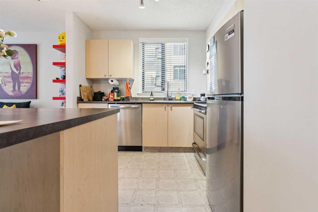 Experience West End downtown living in this well maintained two bedroom condo on the 11th floor of Tarjan Pointe. Large south facing windows fill the home with natural light throughout the day, creating a bright and inviting living space. The functional layout features an open kitchen with island, in-suite laundry, and a private balcony with natural gas hookup, perfect for summer grilling. This unit also includes the convenience of titled underground parking. Ideally located near the scenic pathways along the Bow River, Prince's Island Park, and within easy access to the C-Train. Condo fees include all utilities, adding excellent value and convenience. On Site Concierge and Fitness Area. Don’t miss the opportunity to view this prime two bedroom condominium today.