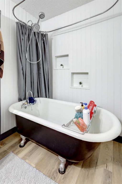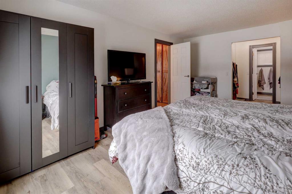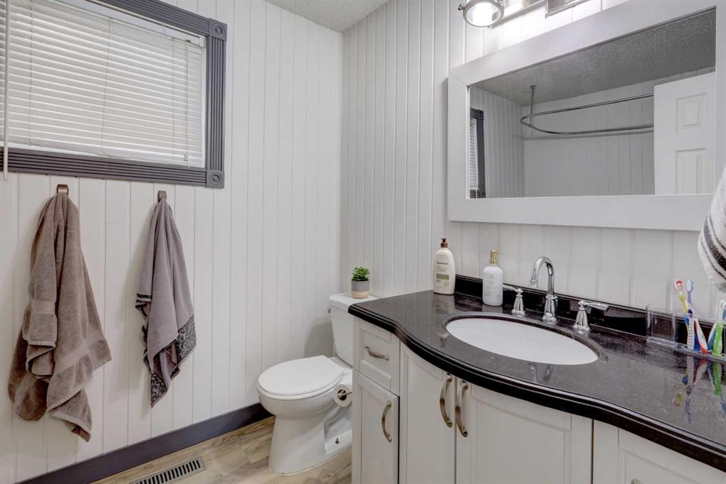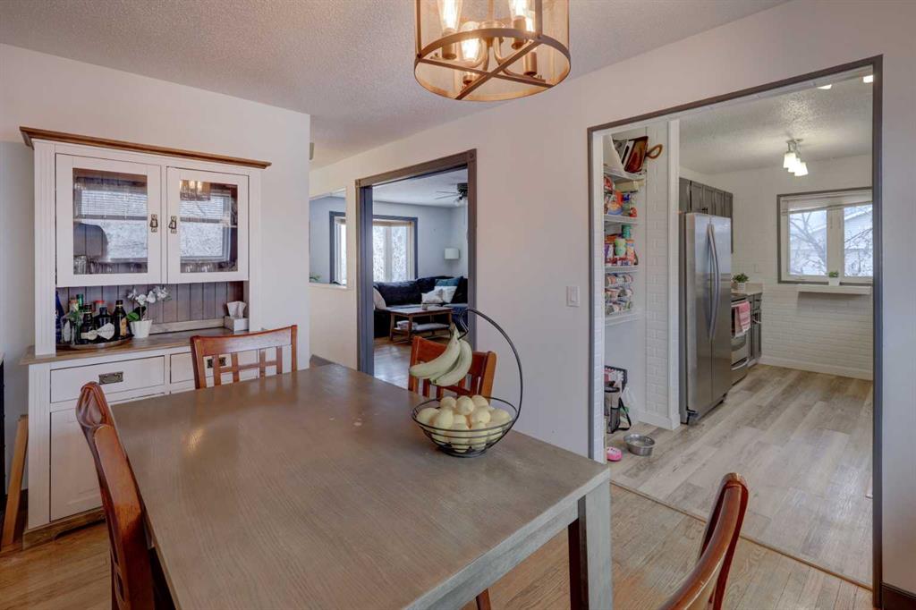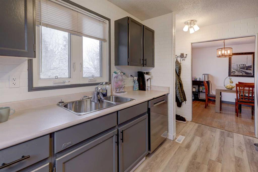 Welcome to this charming bi-level home, perfectly situated on a spacious corner lot in the community of Meadowbrook. Upon entry, you are welcomed by a bright, open main floor featuring a stylish combination of hardwood and vinyl flooring. The living room is anchored by a beautiful wood-burning fireplace, creating a warm and inviting space for relaxing evenings. The main floor also includes a separate dining area and a functional galley kitchen, highlighted by two large windows that flood the space with natural light. The spacious primary bedroom offers a large, bright window, a walk-through closet, and a private ensuite complete with a stunning clawfoot tub. The fully developed basement includes a family room, two bedrooms, a full bathroom, and a laundry area with plenty of extra storage. The large backyard is an entertainer's dream, featuring a fire pit, mature trees, including a crab apple and pear tree. A powered shed backs onto an oversized gravel parking pad with the potential to build the garage of your dreams. Additional features of this home include central air conditioning, ensuring comfort during the warmer months. Meadowbrook is a well-established community with nearby schools, parks, shopping, and restaurants all just minutes away making this home an excellent choice for buyers seeking comfort, convenience, and character.