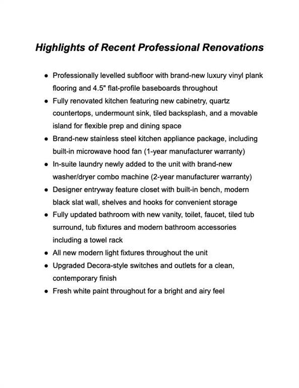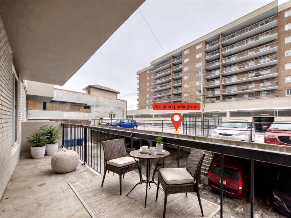 Fully renovated Beltline condo featuring brand new in suite laundry, assigned parking, storage, and a 24 foot private balcony, all at an incredible price point. Be the first to enjoy this completely renovated home offering the feel of a brand new unit at the price of an older one. Every finish in the home has been thoughtfully updated to create a cohesive modern living space. The bright open concept layout features a stunning two tone kitchen with brand new cabinetry, quartz countertops, a contemporary tile backsplash, and brand new stainless steel appliances including a microwave hood fan, all under warranty for added peace of mind. A functional island provides additional prep and seating space and can easily be repositioned within the kitchen depending on your preferred layout. New luxury vinyl plank flooring runs throughout the home, complemented by fresh paint, updated lighting, modern fixtures, and new 4.5 inch baseboards for a clean elevated finish. The home also features brand new in suite laundry with a washer dryer combo, also under warranty. One of the standout features of this unit is the extra long private balcony measuring over 24 feet, with sliding glass doors from both the living room and bedroom creating a seamless connection between indoor and outdoor living. Located on the ground floor this home offers the convenience of avoiding elevators while maintaining excellent privacy and security, as the private patio is positioned above the parkade level with no direct exterior access to the unit. The home is situated in a clean well managed concrete building with no post tension cables and features an inviting lobby, elevator access, and bike storage. Vinyl windows throughout the building were replaced approximately two years ago. The property includes an assigned parking stall and dedicated storage unit, and parking stalls in the building have historically rented for approximately $100 per month creating additional flexibility for owners. Additional street parking is available nearby for guests or a second vehicle. With reasonable condo fees and excellent rental potential this property is ideal for first time buyers, young professionals, downsizers, or investors seeking a turnkey unit in a prime inner city location just steps from shops, restaurants, transit, and everyday amenities. Vacant and available for quick possession.