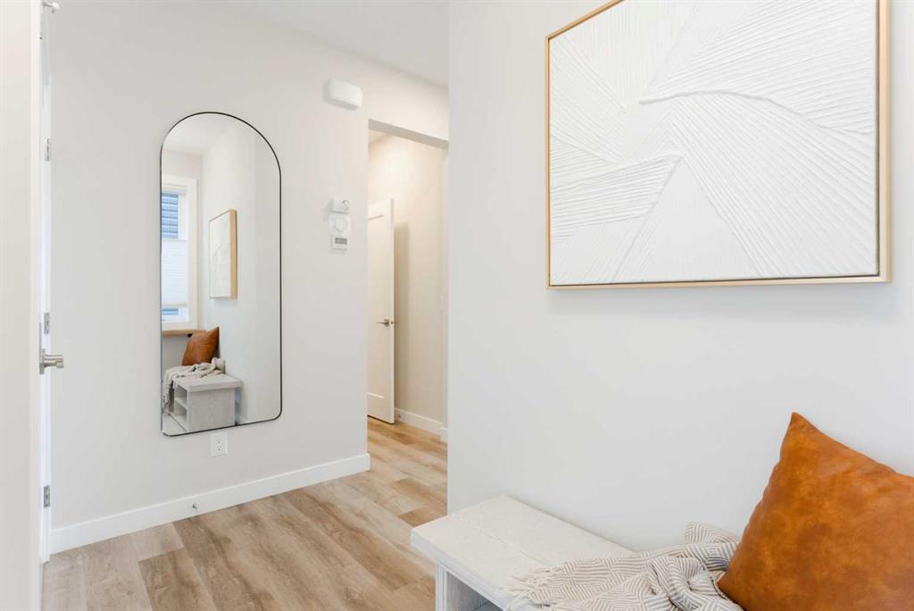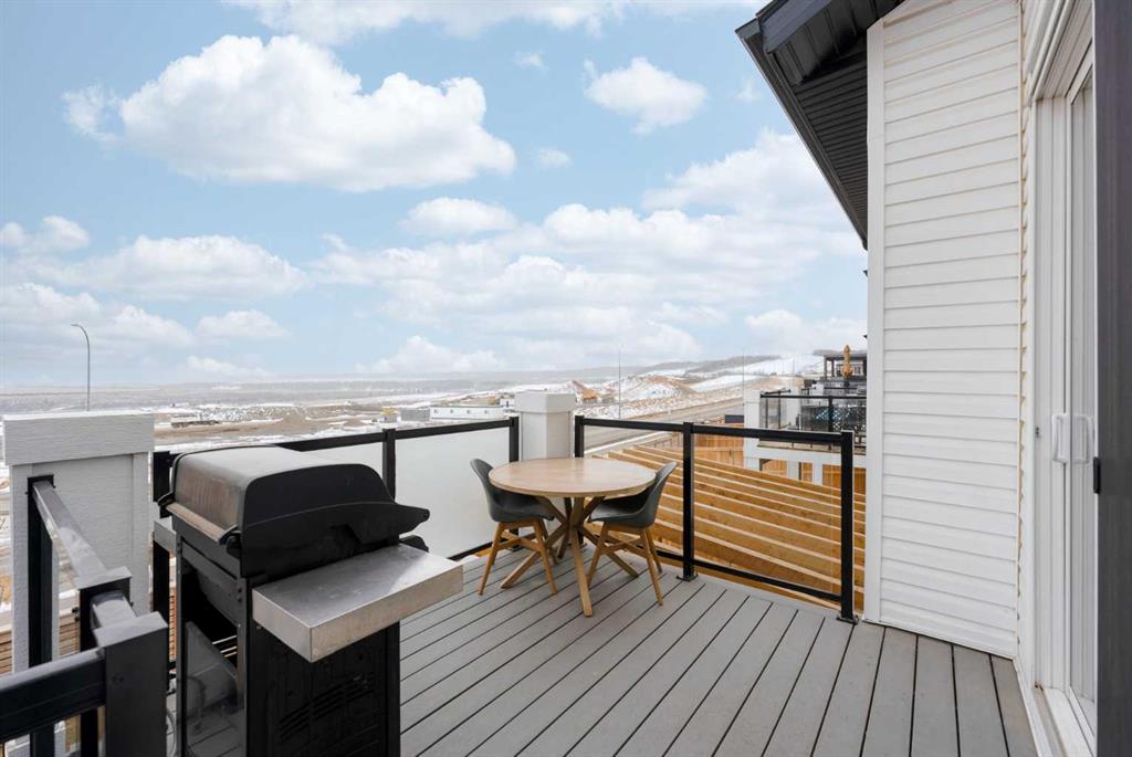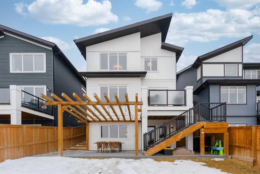 Come and see the views for yourself — unobstructed Bow Valley views from every level of this fully finished walkout in Precedence. Inside, the home is clean, bright, and timeless with a light, neutral palette and expansive windows that bring the landscape in. The open-concept main floor features 9’ ceilings, luxury vinyl plank flooring, and a gas fireplace. The kitchen is anchored by a large island with seating, quartz countertops, full-height tile backsplash, and built-in wall oven and microwave — designed for both everyday living and entertaining. The backyard is a true standout — composite decking with integrated lighting, a modern pergola, turfed dog run, wraparound stairs, and a dedicated gas line for BBQ — all positioned to take in the valley views. Upstairs offers three bedrooms, upper laundry, and a spacious bonus room. The primary retreat includes a walk-in closet and a spa-inspired ensuite with dual vanities, freestanding tub, walk-in shower, and private water closet. The fully finished walkout basement adds a fourth bedroom, full bathroom, and a flexible gym or workspace with the same bright, open feel as the rest of the home. Additional features include premium top-down/bottom-up cellular blinds (blackout in bedrooms), central A/C, and an insulated double attached garage with a builder-installed EV charger. Located close to Cochrane’s pathway network, Spray Lake Sawmills Centre, Greystone pickleball courts, and everyday amenities — offering a lifestyle that’s hard to replicate.