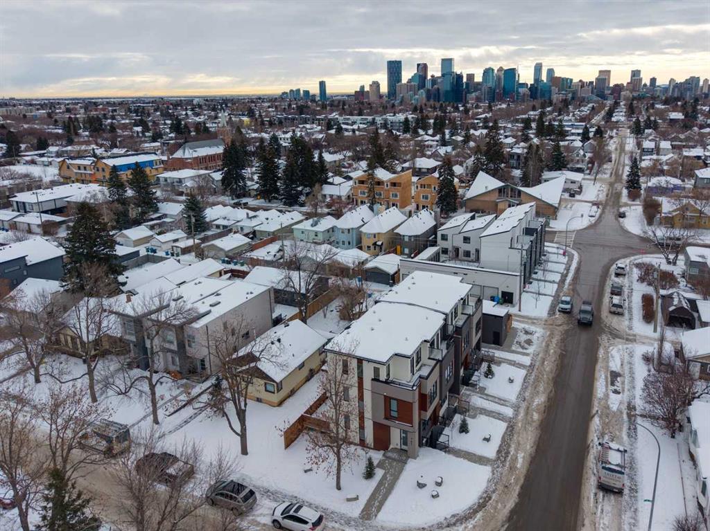 Mount Pleasant - New Pricing! 2122 7 Street NW: Welcome to this beautiful townhome offering 3 bedrooms, 4.5 bathrooms, a single-car garage, and over 2,100 sq ft of developed living space. Designed by respected Calgary architect John Trinh and Associates, this project showcases high-level craftsmanship, thoughtful material selection, and exceptional attention to detail throughout. The main floor features a spacious front entry, a bright living room with an electric fireplace and built-in shelving, and a central kitchen complete with stainless steel appliances, an island with seating, a pantry cupboard, and a dining area with access to the deck. A convenient two-piece powder room completes this level. The second floor offers two generously sized bedrooms, each with its own ensuite, one with a four-piece bathroom and the other with a three-piece. A well-equipped laundry room with cabinets, a sink, and a folding counter adds everyday convenience. The entire third level is dedicated to the primary retreat, featuring exclusive access to the top-floor balcony, a walk-in closet, and a luxurious five-piece ensuite with dual sinks, a soaker tub, and a walk-in shower. The lower level features an open studio-style legal suite with a private entrance, its own full kitchen equipped with stainless steel appliances, a comfortable living area, and a four-piece bathroom. 4 Units are Available! Ideally located in the heart of Mount Pleasant, one of Calgary’s most desirable mature communities, this home offers easy access to Confederation Park, SAIT, and the University of Calgary. Enjoy a quick commute to downtown along with nearby transit routes on 4 Street, Centre Street, and 20 Avenue, plus a great selection of local restaurants and coffee shops.