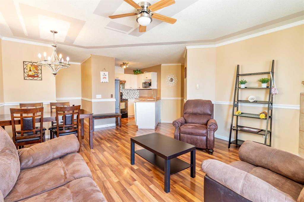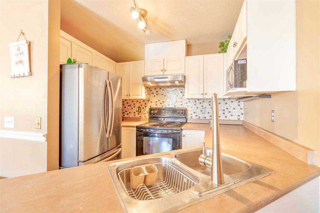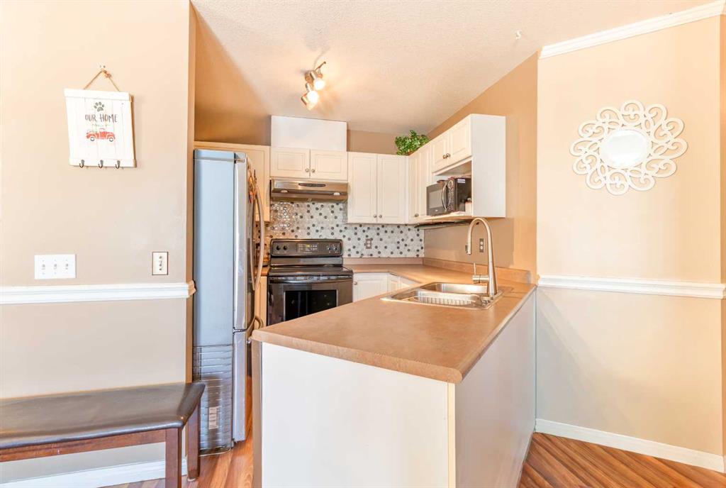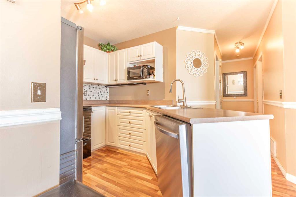 Welcome to this bright and spacious top-floor condo in the welcoming community of Sunshine Meadows! Offering 982 sq ft, this well-designed unit features 2 comfortable bedrooms, a 4-piece bathroom, in-unit laundry, making it a fantastic opportunity for first-time home buyers, downsizers, or investors. The unit is move-in ready and enjoys great natural light and a quiet living environment. The interior offers laminate flooring, freshly painted walls throughout most of the home, and the kitchen offers ample cabinet storage. The home also includes an assigned outdoor parking stall for everyday convenience.