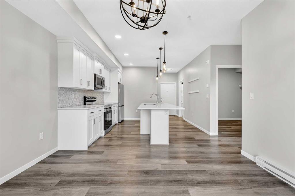 Welcome to Seton Park Place III, where style, convenience and value come together in this beautifully upgraded TOP-FLOOR 2-bedroom condo in Building 2000. Overlooking the peaceful courtyard, this bright and thoughtfully designed 639 sq ft unit offers an open-concept layout enhanced by 9-foot ceilings, large windows and modern finishes throughout, creating a space that feels both comfortable and contemporary. Durable vinyl plank flooring runs throughout the unit complementing the sleek kitchen featuring a massive quartz island that anchors the living space- perfect for entertaining or everyday living. The kitchen flows seamlessly into the living area and out to the private balcony, where upgraded roller blinds on the patio door provide both style and privacy. The primary bedroom is highlighted by a custom feature wall, while the second bedroom offers flexibility for guests, a home office or roommate living. The well-appointed bathroom showcases a full-height tile tub/shower surround, adding a touch of elevated design. Additional upgrades include enhanced lighting and rough-in for future air conditioning, giving you the option to add extra comfort in the years ahead. This home also features in-suite laundry, TWO titled underground parking stalls and an assigned storage locker, offering exceptional convenience rarely found in a condo of this size. Seton Park Place III is a professionally managed, secure building with cameras, low condo fees and a pet-friendly policy (with board approval). Located in the heart of one of Calgary’s most vibrant and walkable communities, you are just steps from South Health Campus, the world-class YMCA, public library, Cineplex, Superstore, restaurants, shops and countless amenities. With quick access to Deerfoot Trail and Stoney Trail, commuting anywhere in the city is effortless. Whether you’re a first-time buyer, investor or downsizer, this top-floor courtyard-facing condo with two titled parking stalls is a rare opportunity to own in one of Calgary’s most sought-after urban communities. *3 of the photos are virtually staged*