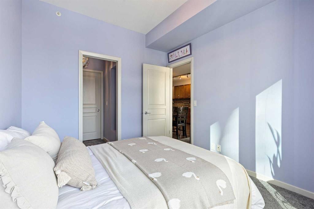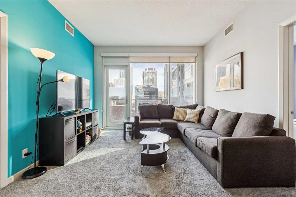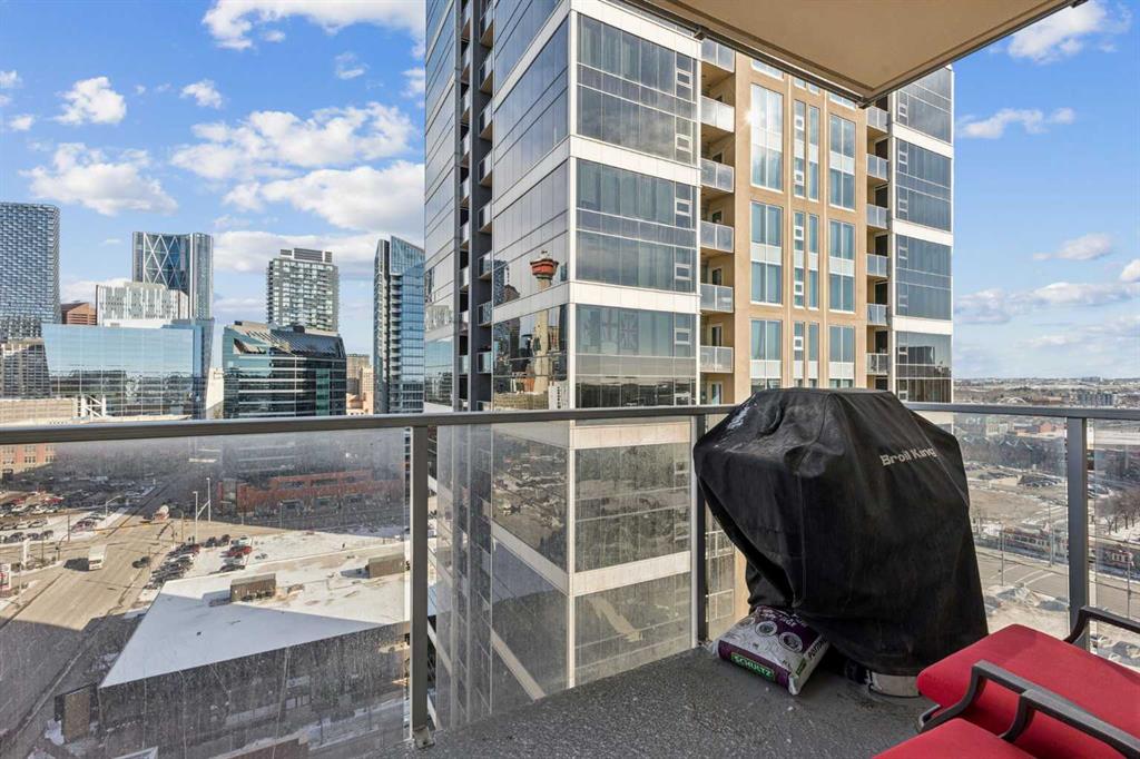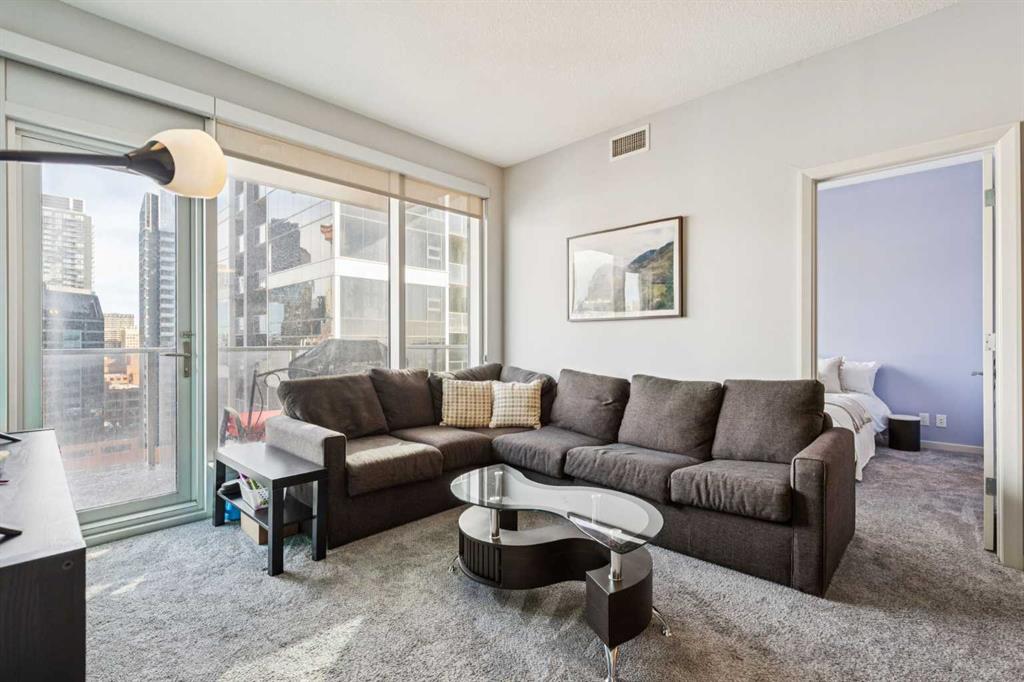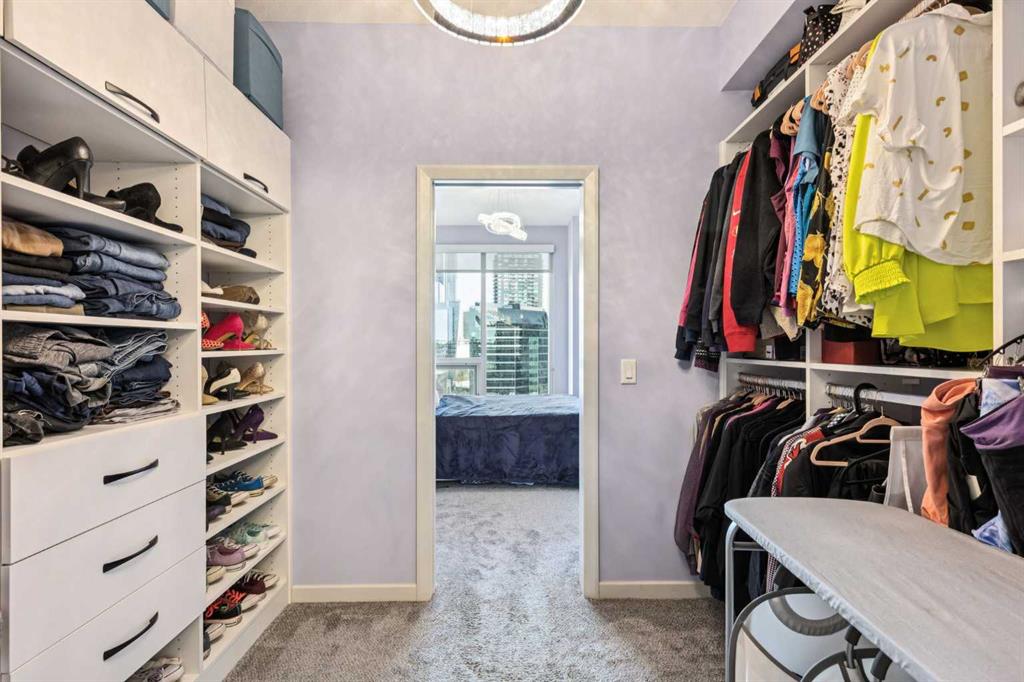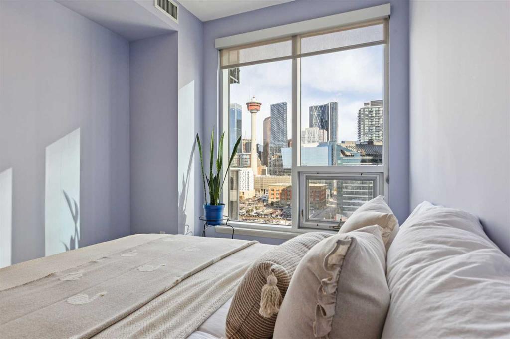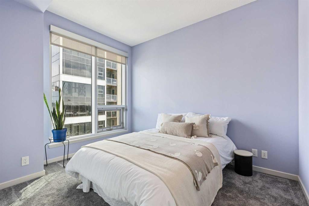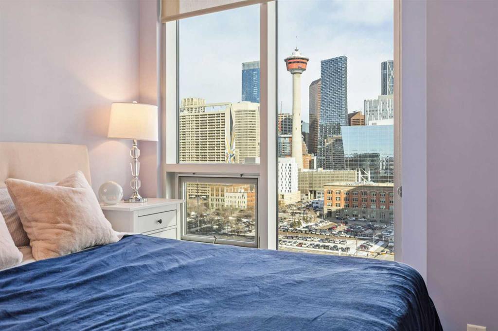 Be sure to watch the video! Welcome to Alura, where an unbeatable downtown location meets modern design and spectacular city living. Floor-to-ceiling curtain wall windows flood the home with natural light during the day and frame breathtaking skyline views at night. The well-designed kitchen features solid maple cabinetry, black appliances, and a mosaic tile backsplash, opening to a bright and spacious living area that’s perfect for both everyday living and entertaining. The thoughtfully designed layout offers two bedrooms and two full bathrooms, with the living space ideally separating the sleeping areas for added privacy. The primary retreat includes a huge walk-in closet complete with custom California Closets systems, while the ensuite features a vanity with dual drawers and a deep soaker tub for relaxing at the end of the day. Recent upgrades include newer carpet and sheer-weave roller blinds, along with elegant crystal and chrome lighting fixtures throughout. Located just steps from the vibrant energy of downtown Calgary, you’ll enjoy immediate access to top restaurants, shopping, arts and sports venues, scenic walking paths, and the convenience of the CTrain right next door. Residents of Alura enjoy exceptional amenities, including a state-of-the-art fitness centre, owner’s lounge, business centre, and a beautifully landscaped garden terrace that connects Alura with Nuera. The building also features secure access, garbage chutes on every floor, and 25,000 sq. ft. of ground-floor retail, adding everyday convenience right at your doorstep. Alura is an 18+ age restricted building and allows for 1-pet with board approval.