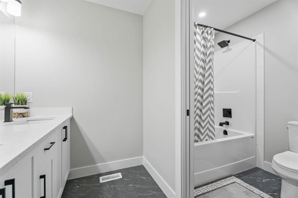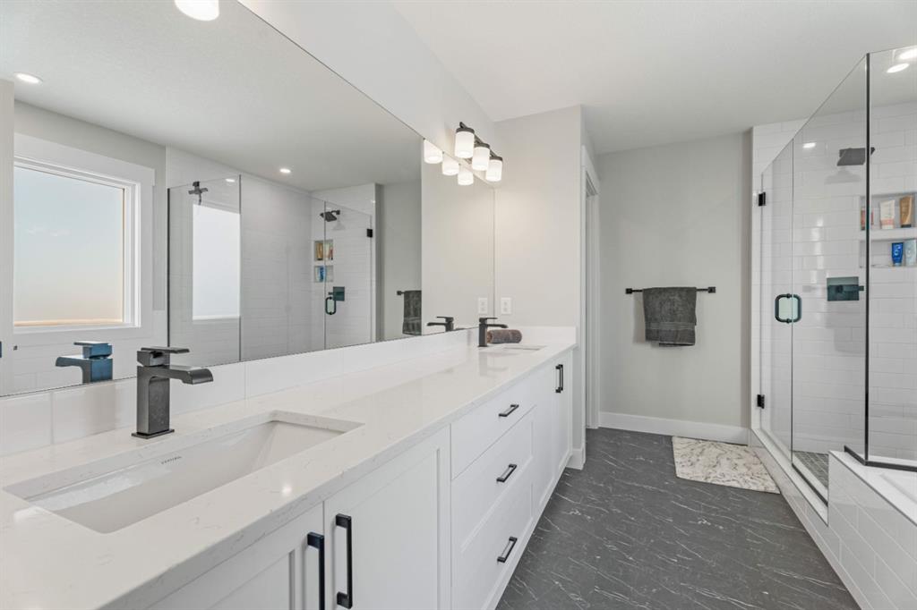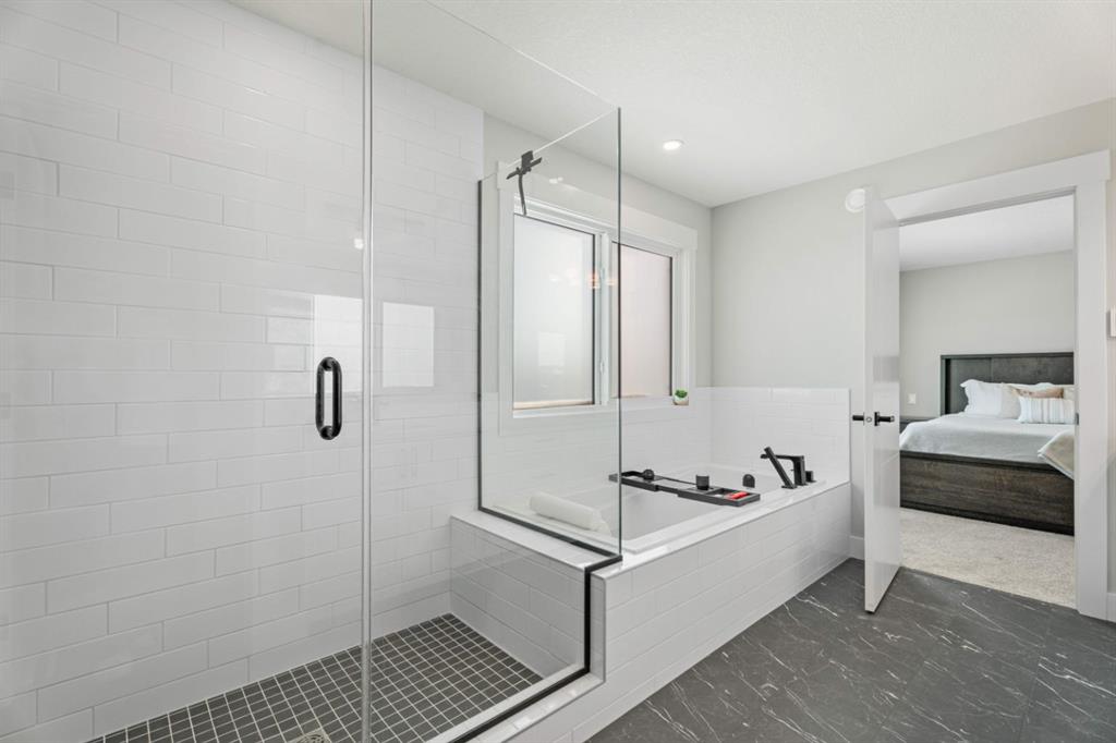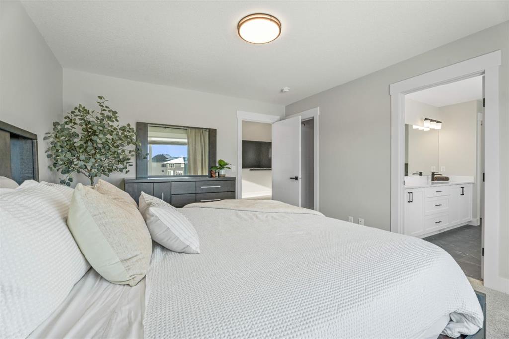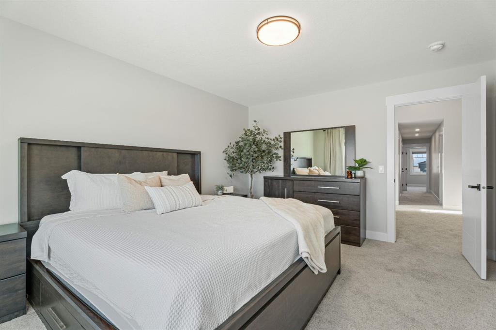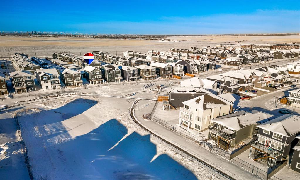 WELCOME TO 235 CHELSEA PARK, CHESTERMERE Nestled in family-friendly Chelsea Park, this stunning Anthem built home backs onto beautiful park space and a serene pond—your private oasis with no rear neighbors. Close to amenities and a future school, you'll enjoy the perfect balance of tranquility and convenience. The contemporary design with striking mountain blue siding, stone accents, and triple attached garage sets this home apart. Step through the bright, wide entry and discover over $108,000 in premium builder upgrades. Nine-foot ceilings on the main floor create an airy feel. Rich grey walls contrast beautifully with crisp white trim and luxury vinyl plank flooring. A private den with elegant French doors offers the perfect home office. The open-concept kitchen, dining room, and great room are designed for today's lifestyle. The show-stopping gourmet kitchen features a massive waterfall-edge island with brown cabinetry complemented by crisp white upper cabinets. The chef will love the gas cooktop, upgraded built-in wall oven and microwave in a stunning tower cabinet, French door fridge with WiFi, and large walk-in pantry. Custom tile backsplash extends to the ceiling, complementing beautiful quartz countertops. All black hardware, fixtures, and lighting add that executive touch. The spacious dining room showcases three large picture windows flooding the space with natural light and flows into the great room with a linear fireplace featuring floor-to-ceiling tile and dramatic black mantle. Step through to your extended deck with spectacular pond and park views. A stairway leads to the backyard and generous concrete patio—perfect for entertaining. Multiple gas line hookups mean you're ready for outdoor cooking year-round. Upstairs find your large primary bedroom—perfect for a king-sized bed—with generous walk-in closet and spa-inspired five-piece ensuite featuring heated floors, fully tiled walk-in shower with frameless glass, and soaker tub—all with executive black fixtures and quartz counters. Two additional generous bedrooms with walk-in closets share a five-piece bathroom. A vaulted bonus room with oversized picture window and upper-level laundry complete this floor. The walkout basement with 9-foot ceilings is roughed-in—bathroom plumbing ready, electrical outlets in place. The triple-insulated garage with gas rough-in offers workspace potential. Every detail matters: triple-pane windows, custom blind package, upgraded stacked kitchen cabinetry, executive black plumbing and lighting, luxury flooring, and quartz countertops throughout. More than just a home, this is where memories are made. Check out our virtual tour—you will not be disappointed. Welcome home.