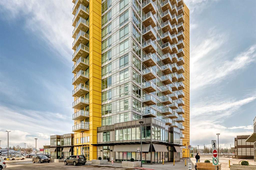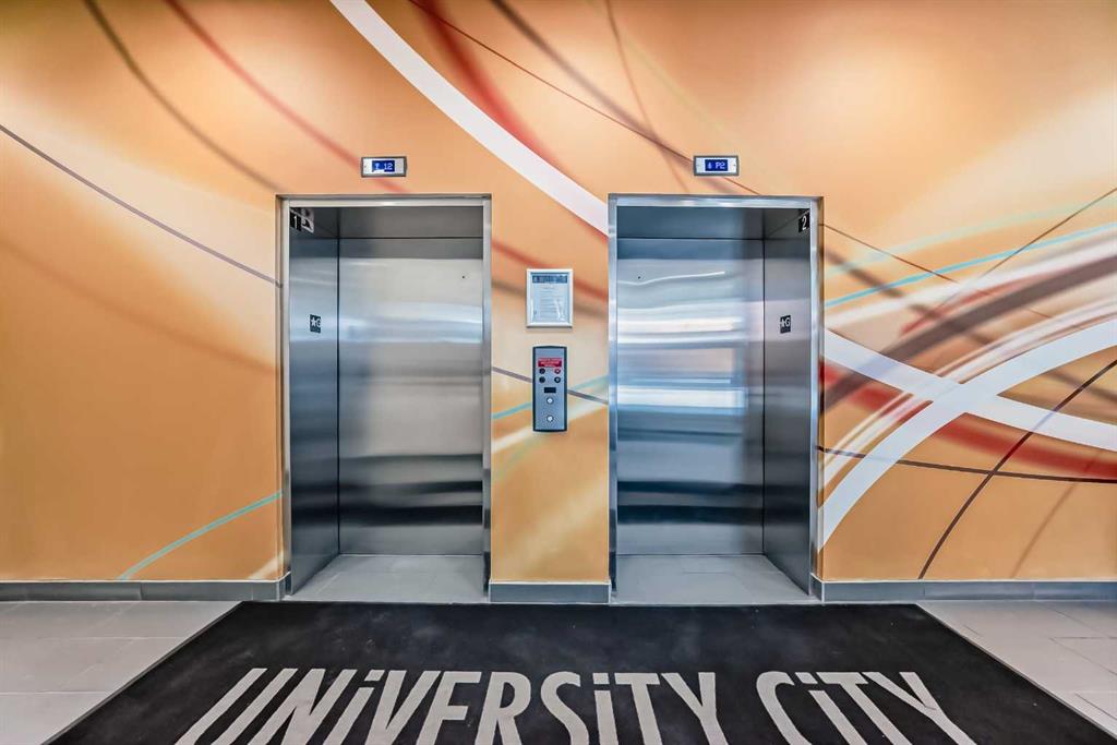Unbeatable mountain views from the 16th floor! From the moment you step into this bright and welcoming apartment, the panoramic views immediately capture your attention. Enjoy sweeping vistas of the mountains and city from the living room and primary bedroom — a truly stunning backdrop for everyday living. Natural light pours into the home thanks to South facing windows. Even the second bedroom enjoys a window, bringing in natural light and views. The bedrooms are separated by the full bath. The kitchen showcases sleek white cabinetry, and the home is complete with the convenience of an in-suite washer and dryer. There is air conditioning as well. There is space for a dining table, and plenty of space in the living room to enjoy those views! Additional highlights include a titled underground parking stall and an assigned storage locker. The building is ideally located within walking distance to the Brentwood LRT Station, the University of Calgary, shopping, grocery stores, restaurants, pubs, and cafés, this home offers exceptional convenience for students, professionals, or investors alike. And did we mention the views? They truly are spectacular.