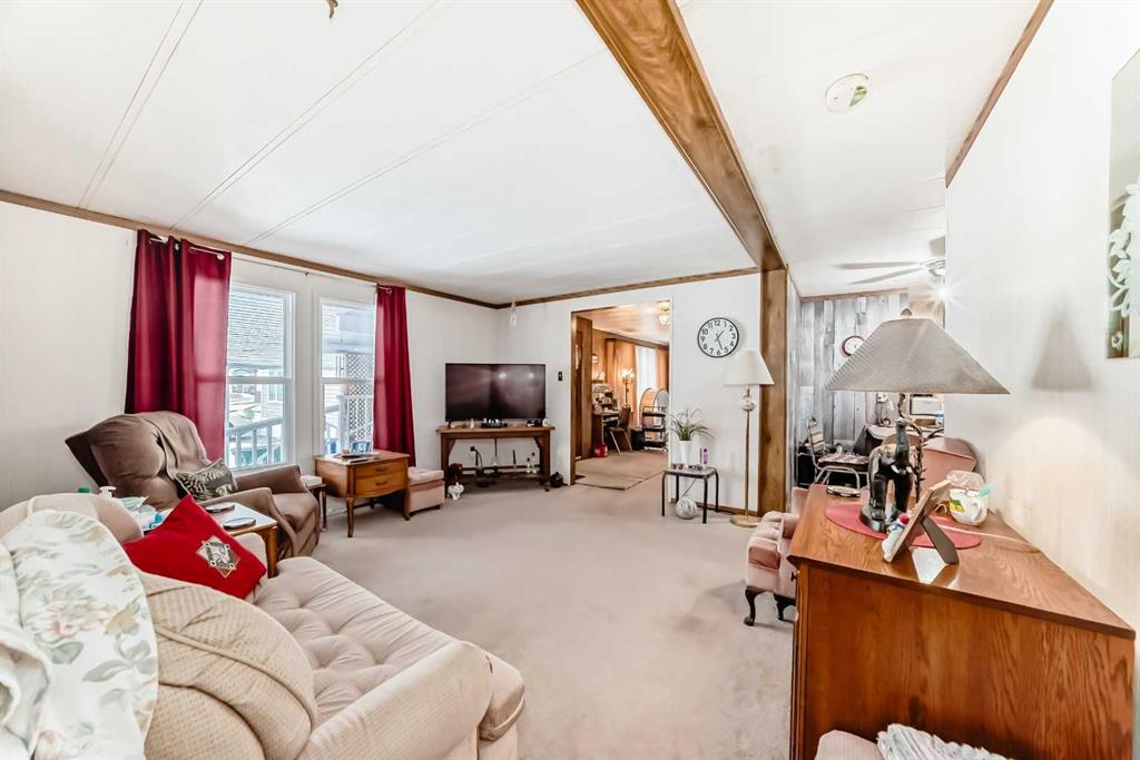 Ready to downsize but still need space? This well maintained double wide in the adult (45+) mobile home community of Watergrove has the spaciousness of a bungalow with the convenience of mobile home community living. Stepping in to the home, you'll see a family room on one side and a living room on the other. Imagine the family gatherings you can host. The galley kitchen still has plenty of storage and counter space, all conveniently located within easy reach. A formal dining room off the kitchen provides room for a entertaining. The primary bedroom has room for larger furniture with a walk thru to the ensuite with a low step in tub. At the other end of the home are two more bedrooms. The deck has a natural gas hook up for your summer BBQs. Several big ticket updates were done around 2012 including newer carpet, vinyl windows and furnace. Lot fee is $915/month which includes water, sewer, waste and recycling. Watergrove community has an active community association with dances, fitness groups, bingo, cards and more. The clubhouse has a games room, library, exercise room, dry sauna, hot tub and, in summer, an outdoor pool. Pet restrictions are 2 pets per home and dogs must be less than 15 inches at shoulder when fully grown.