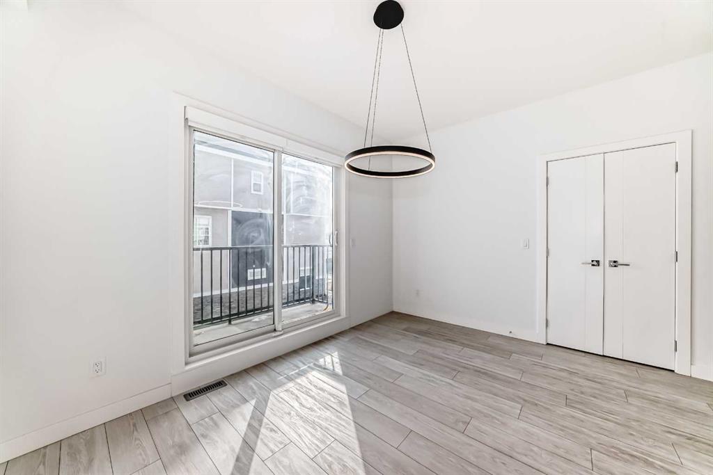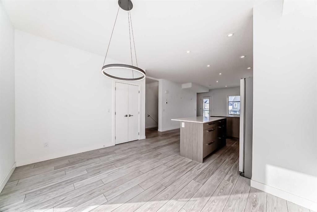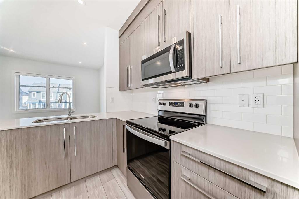 Welcome to this elegant, bright townhouse. This modern design allows for living at unbeatable location within the vibrant Savanna community in Saddle Ridge. The residence provides you with an open concept living space and features not one but two balconies. The entrance ground level introduces a den that can easily be converted to an office space if needed along with a double attached garage for convenient parking. The main floor seamlessly blends style and practicality with ample natural light cascading through large windows and additional pot lights illuminating the space. Luxurious vinyl plank flooring, a neutral color scheme, and upscale finishes enhance the allure. Enjoy relaxing in the inviting living room or step onto the adjacent balcony for tranquil mornings. The stunning kitchen inspires culinary delights, boasting quartz countertops, stainless steel appliances, full-height cabinetry, a timeless tile backsplash, and both a center island with eating bar for abundant prep space or a space to enjoy a quick bite to eat. The dining room offers ample room for entertaining, complemented by a convenient powder room. Upstairs, the primary suite creates an indulgent retreat with a high ceiling, oversized window, spacious walk-in closet, and a private ensuite. Two additional bright and roomy bedrooms share a modern 4-piece main bathroom. Laundry facilities on this level add further convenience. Nestled in the northeast community of Saddle Ridge, Savanna embodies smart growth principles, offering accessibility and a wealth of amenities, the home is location near extensive pathways, parks, and playgrounds within the community enriches the lifestyle. The Savanna Bazaar, a commercial hub, offers live-work-play opportunities, while schools, shops, and recreational facilities in Saddle Ridge are minutes away. Access to the rest of Calgary is effortless via major roads such as Metis Trail, Airport Trail, and the LRT when it's time to explore beyond the neighborhood.