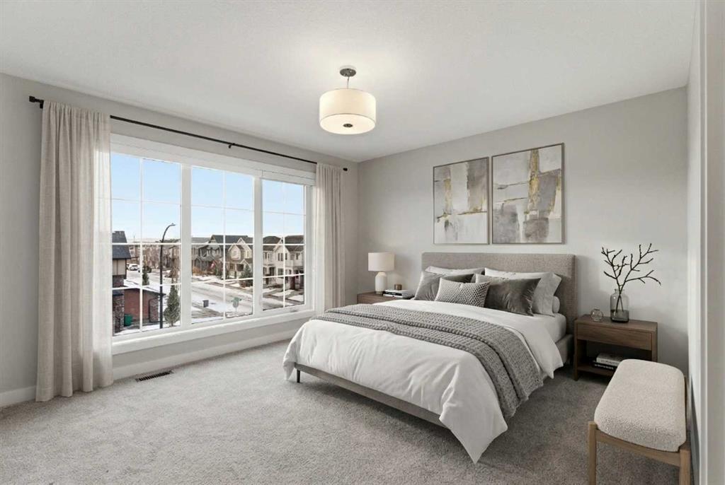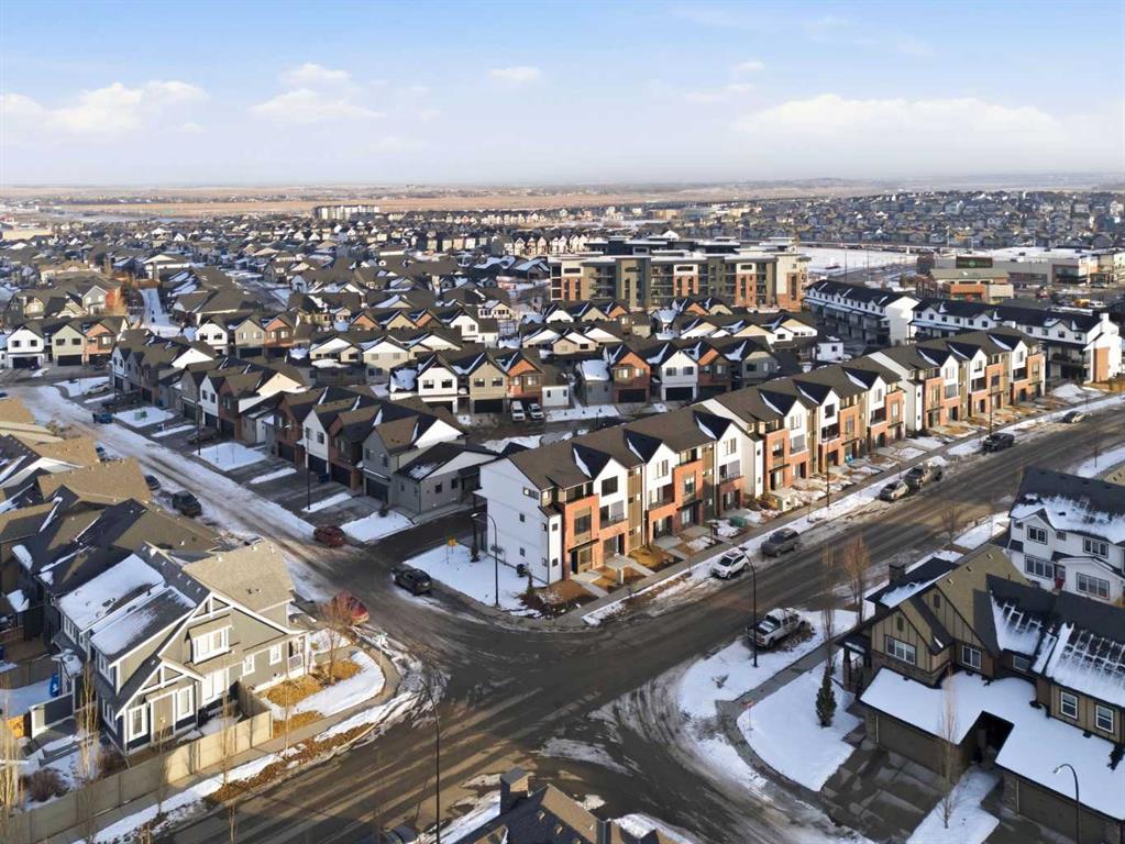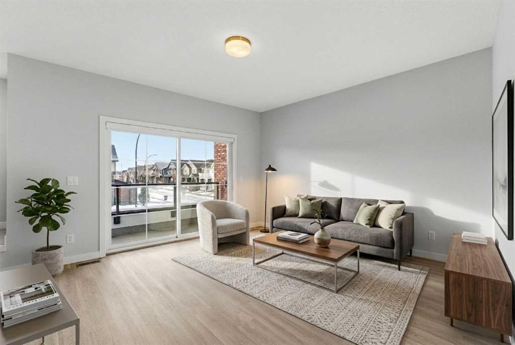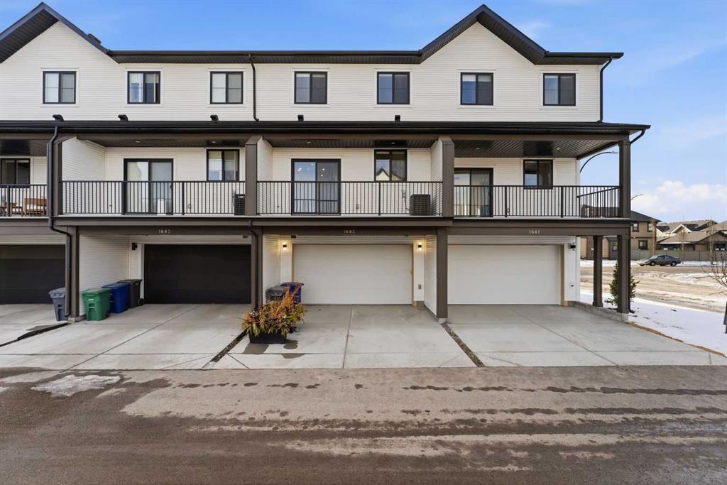 A sophisticated 3-storey masterpiece nestled in the heart of Cooper’s Crossing—an 13th-time recipient of Airdrie’s "Best Community" award. This award-winning home from the Vesta Elevate Collection seamlessly blends contemporary architecture with upscale interior finishes, offering a low-maintenance sanctuary for those who refuse to compromise on style or convenience. The open floor plan is designed with a focus on modern livability featuring 3 bedrooms, 2.5 bathrooms and a flex room ideal for a home office, gym or additional living space. The home features a thoughtful layout across three levels. A bright, open-concept living area is the heart of the home. The gourmet kitchen showcases the full-height cabinetry, sleek modern finishes, and generous prep space that flows effortlessly into the dining and living areas. A convenient powder room completes this level, making it ideal for entertaining. On the upper level discover a deluxe primary suite designed as a private retreat. The secondary bedrooms are a rare find—impressively oversized compared to typical townhome designs, offering plenty of space for family, guests, or hobby rooms. In a market where parking is a premium, this home stands alone. It boasts a double attached garage plus 2 car driveway —a rare and highly coveted four-car setup that provides ultimate convenience for multi-vehicle households. Step outside and experience true walkability. You are perfectly positioned directly across from Cooper’s Town Promenade, giving you instant access to: Save-On-Foods, Shoppers Drug Mart, and Pet Valu. Starbucks, McDonald’s, and local eateries. Miles of pathways, lush parks, and top-rated schools are just steps from your front door. Whether you are an active professional or a growing family, this home offers the perfect balance of "elevated" interior design and a vibrant, award-winning neighborhood. Please note: Entrance Level 233 total sq ft, living space 672 total sq ft, Upper level (bedrooms) 702 sq ft.