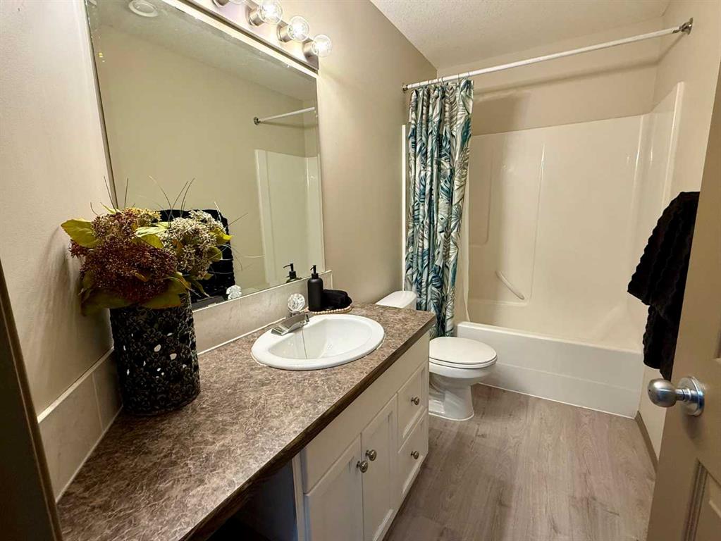 Conveniently located close to schools, shopping, and downtown Camrose, this meticulously maintained 648sq ft(1296sqft total) freshly updated bi-level condo is the perfect starter home or investment property. Step inside to a bright and spacious open-concept main level,featuring new Luxury Vinly flooring, vaulted ceilings and large windows that flood the livingroom and kitchen with natural light. The kitchen offers plenty of cabinets, counter space, a centre island, pantry, and storage, making it both functional and inviting. You’ll also appreciate the convenient 2-piece bathroom, main floor laundry, and direct access to a private deck for fresh air and relaxation. The lower level offers three good-sized bedrooms, a 4-piece bathroom, and additional storage space. This Condo delivers comfort, convenience, safety, with parking right outside your door. With it's low-maintenance lifestyle and unbeatable location, this condo is a fantastic opportunity to get into the market and enjoy the pride of ownership.