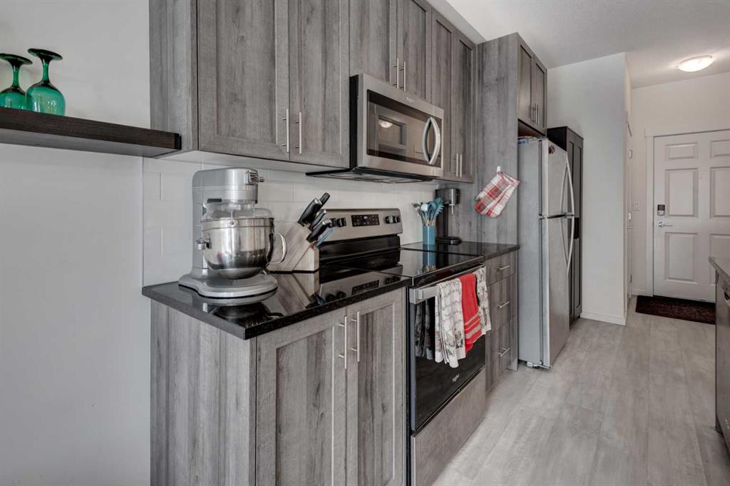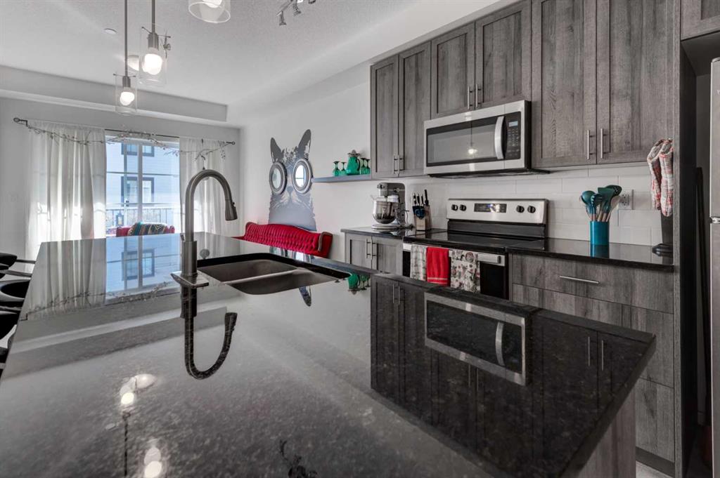 Legacy living where city and nature meet. This modern unit (less than 5 years old) with 2 bedrooms and 2 bathrooms features in-suite laundry, a breakfast bar island, high ceilings, stone countertops, stainless steel kitchen appliances, and lots of cupboards! The bright south facing balcony is the perfect place to enjoy your morning coffee in the sunshine or have a relaxing glass of wine while grilling your steak dinner on your natural gas bbq, which is included with the sale. The primary bedroom features a walk-through closet and the ensuite is a full 4 piece bathroom. A second 4 piece bathroom and 2nd bedroom offer a flexible space to use as a bedroom or a home office that meets many lifestyles. You’ll love how convenient your dedicated storage cage in the parkade is and your own titled underground parking spot for easier loading and unloading. With both amenities and greenspaces nearby you get the charm of parks, water features and trails, as well as the conveniences of shopping, restaurants, and services. The pet friendly building (with board approval), and neighbourhood are the perfect place to walk your dog, enjoy a bike ride, or just step away from the hustle and bustle for some fresh air. The low condo fees that include water, gas, and heat make budgeting simpler whether you are a resident or an investor with tenants.