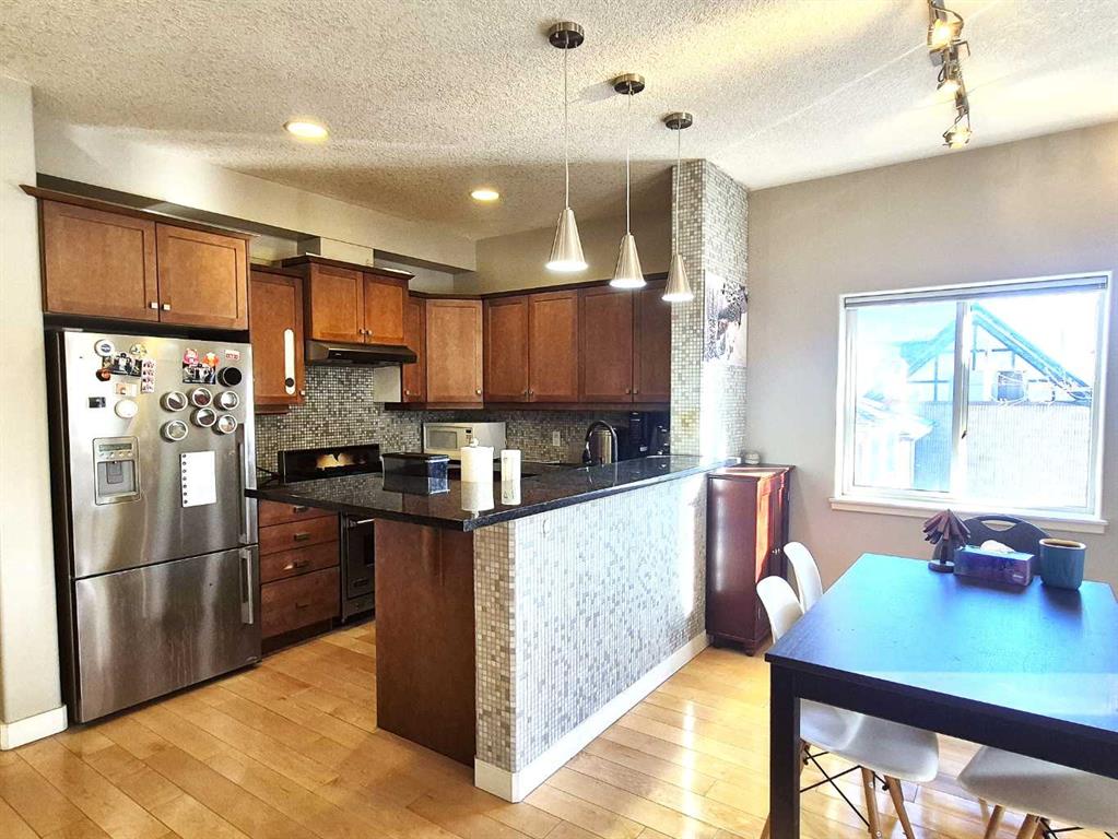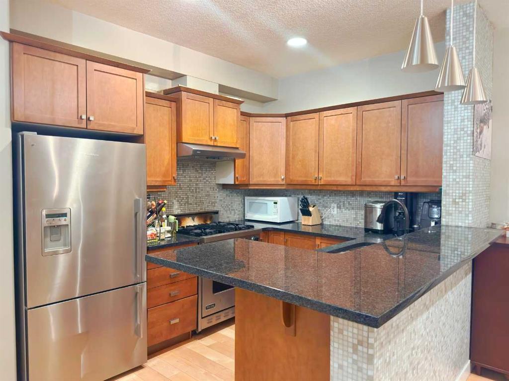 Over 1,000 sq. ft. spacious condo in the popular inner city community Cliff Bungalow. CONCRETE & STEEL building. End unit facing south and east. 9 feet ceiling. Open concept floor plan. Granite counter top, gas stove kitchen. Master bedroom with Ensuite. In unit laundry. Titled underground parking. Central air conditioning. Close to all the popular coffee shops & restaurants and historical 17th Ave area. Walking distance to the Western Canada High School. Must see property and don’t miss out.