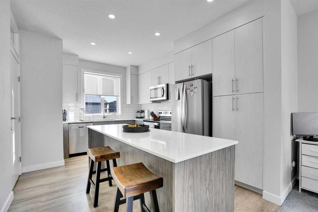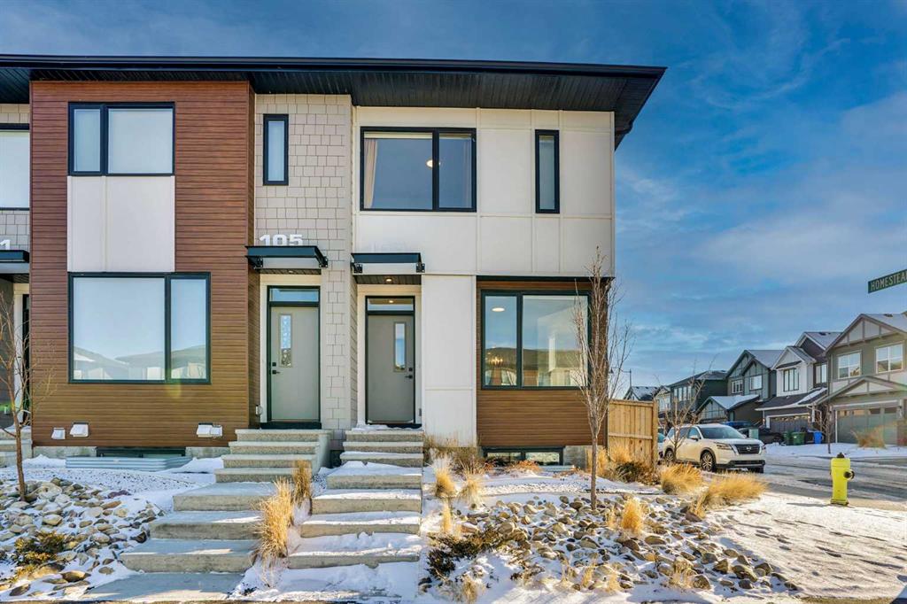Welcome to this exceptional end unit Townhouse offering NO CONDO FEE and outstanding value for homeowners and investors alike. This well-maintained home features bright and functional layout designed for comfortable family living. Large windows throughout provide an abundance of natural light, and the corner-lot setting enhances privacy and outdoor space. The modern kitchen features a large quartz island, stainless steel appliances, and ample cabinetry and counter space. Upstairs, you’ll find a good-sized primary bedroom with an ensuite and walk-in closet. Two additional bright bedrooms and another full bathroom provide ample space for guests or family. You will also have laundry on upper level. Adding tremendous flexibility and value is the 2-bedroom illegal basement suite, with separate back entrance with a kitchenette area, full washroom and separate laundry ideal as a mortgage helper, for extended family, or future rental potential. One of the standout features is the big fenced backyard and a double detached garage, providing rare outdoor space and ample parking. This home is also equipped with a tankless hot water system for added efficiency. Located in the growing and family-friendly community of Homestead, this home is conveniently located close to Stoney Trail, McKnight Blvd, Country Hills Blvd and Airport Trail this home offers excellent connectivity across the city. Enjoy easy access to a nearby pond, shopping plaza, parks, public transit, and the Gurudwara (Sikh Temple), making it an ideal location for families and daily convenience. With no condo fees, strong income potential, and a prime corner location in the growing community of Homestead, this is an opportunity you don’t want to miss. Book your private showing today! Note: Some pictures are virtually staged.