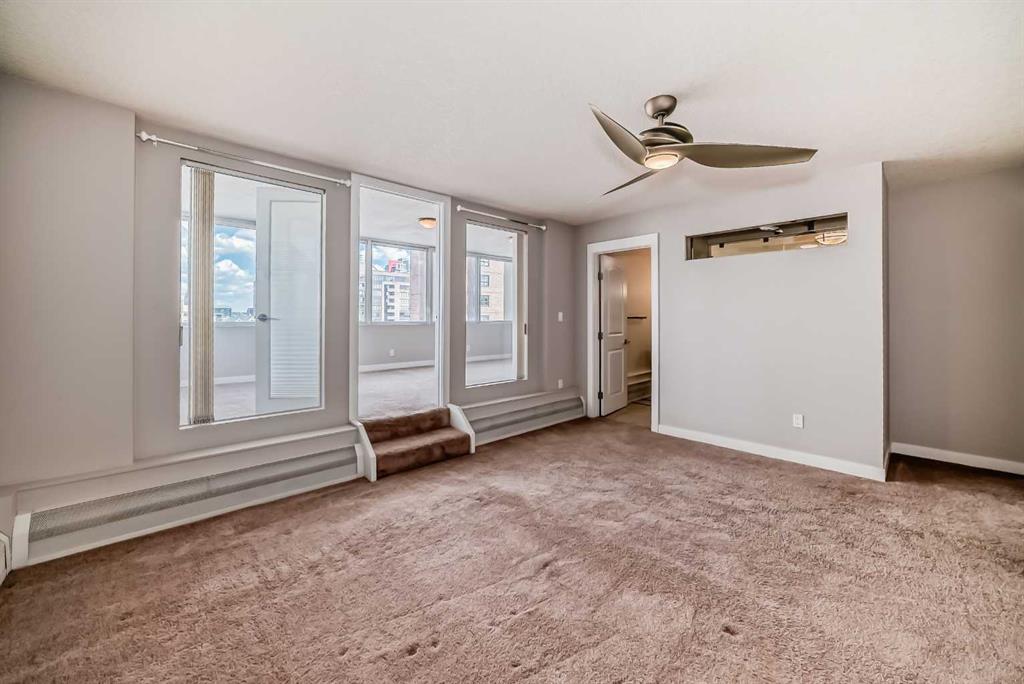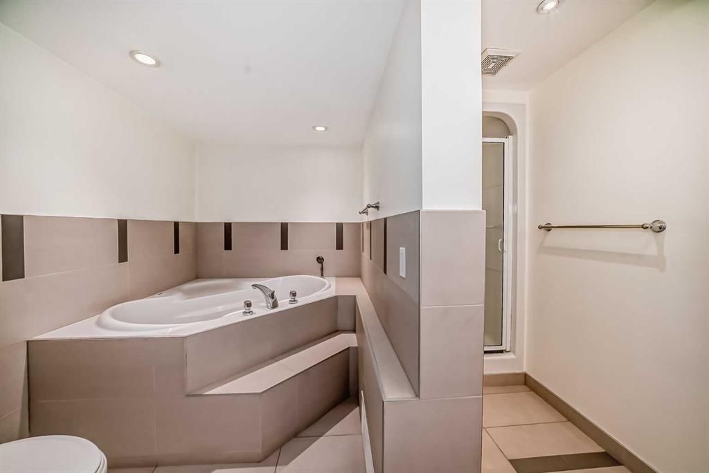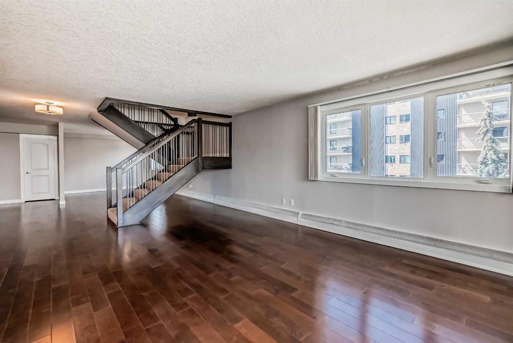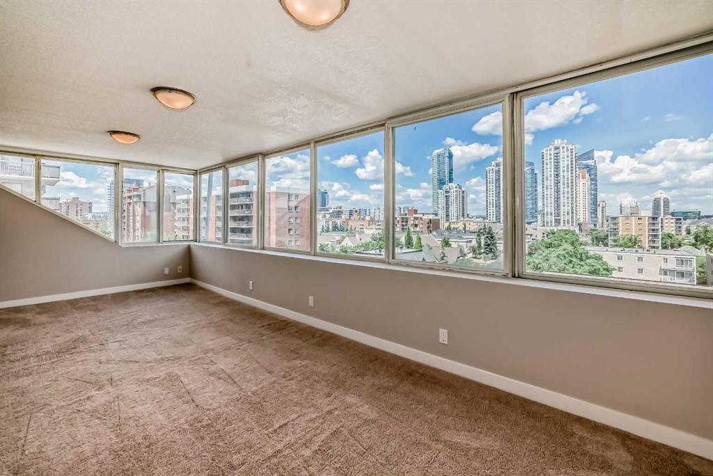 Check out this stunning 2 level top-floor penthouse condominium, offering luxurious living in the heart of the Beltline. A unique unit boasting over 2100 Square feet of renovated space. This exquisite 2-bedroom, 2.5-bathroom, two-story home boasts breathtaking city views and features a spacious and modern layout. The main floor is adorned with engineered wood floors and includes a large front closet and stylish powder room. The layout incorporates a vast great room that seamlessly combines 2 family rooms, kitchen, and dining area. The kitchen is a highlight with its gleaming white rear cabinets, a large dark island with breakfast bar, granite countertops, glissining tile and stainless steel appliances. Conveniently, there is a large laundry room with front-load machines and a sink, along with two in-suite storage rooms. The central dark maple staircase leads to the upper level, where you will find the grand master suite, which includes a private solarium or retreat, a spacious walk-in closet, and a spa-inspired en-suite bath featuring double sinks, a large Caesar stone vanity with ample cabinet space, and a glass shower with rain head. The second bedroom is generously sized with a sizable walk-in closet. The main bath offers a luxurious oversized air tub, a separate shower, and a stylish vanity. A second entry door is located on this floor to access the building hallway. Additional amenities include two underground parking stalls, two large storage units. This pet-friendly condo (for small dogs with prior approval) provides exceptional value and a unique, stylish living experience. Walking distance to 17th avenue, coffee shops, restaurants and plenty of parks. Easy access to transit. Book your showing today!
