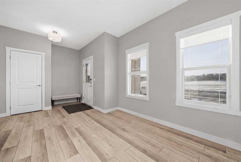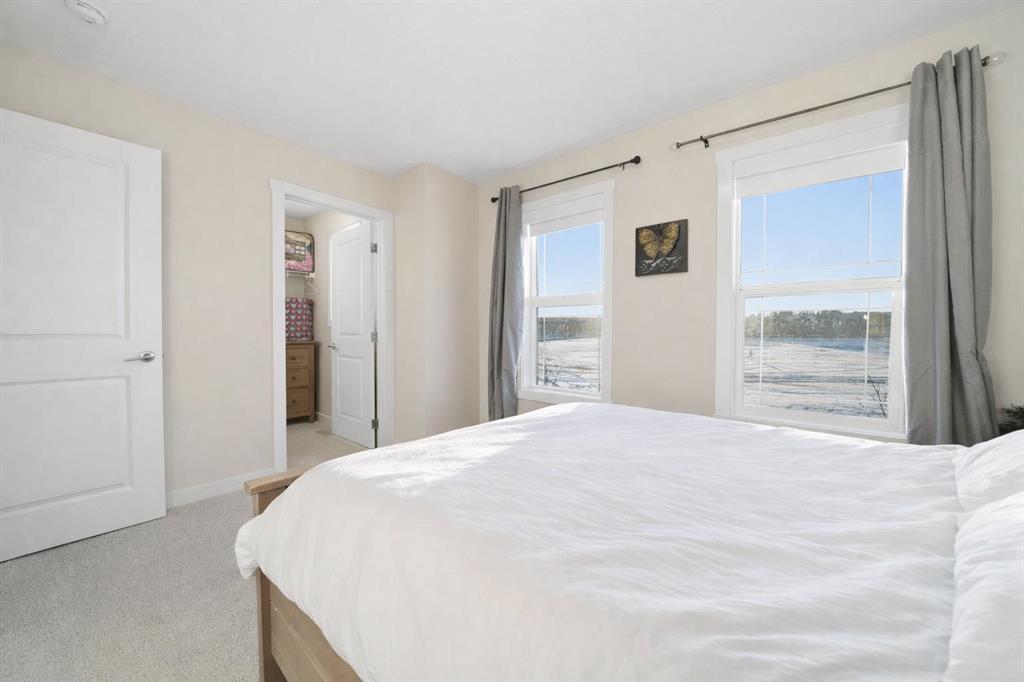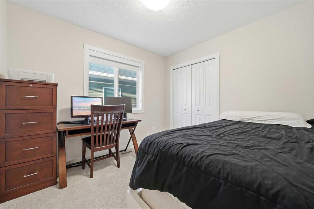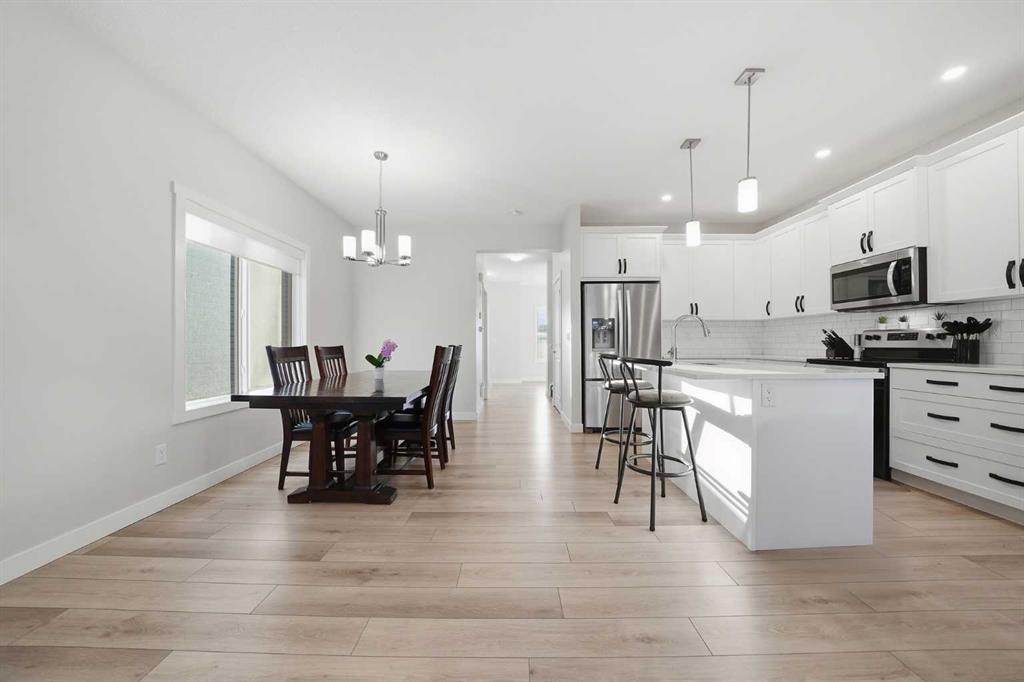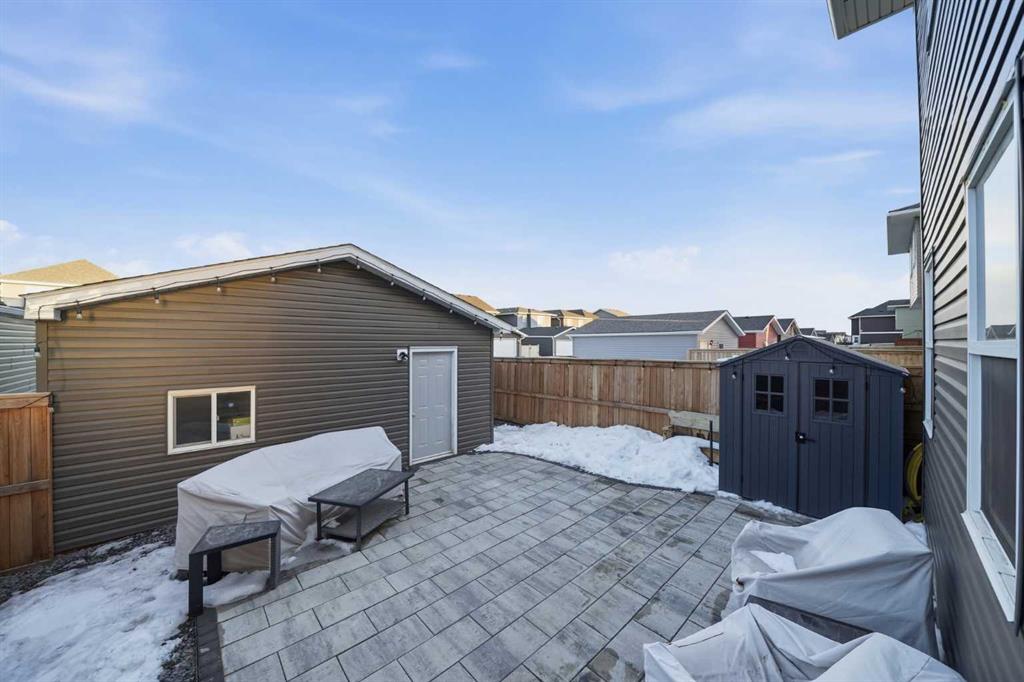 ** OPEN HOUSE SAT MAR 21 11AM-1PM ** Move-in ready and beautifully maintained, this stylish original-owner home offers nearly 2,500 sq. ft. of fully developed living space with thoughtful upgrades throughout. Perfectly positioned directly across from expansive greenspace, the home enjoys open views and an abundance of natural light from west-facing front windows, creating a bright and welcoming atmosphere from the moment you step inside. The main floor is designed for both comfort and connection, featuring a spacious living room highlighted by rich vinyl plank flooring and an inviting layout ideal for everyday living. The impressive kitchen is the heart of the home, complete with quartz countertops, stainless steel appliances, and a large central island perfect for gathering with family and friends. The generous dining area flows seamlessly to the backyard, where a sun-filled brick paver patio creates the perfect setting for morning coffee, summer barbecues, and relaxing evenings outdoors. Upstairs, the primary bedroom offers a stylish ensuite and ample closet space, while two additional bedrooms and a full bathroom provide flexibility for family, guests, or a home office. The fully finished permitted basement, completed in 2024, adds exceptional versatility with a comfortable rec room ideal for movie nights, a kids’ play area, or a quiet workspace, along with a spacious fourth bedroom. Additional upgrades include central air conditioning installed in 2022, extra-thick carpet underlay in the basement for added comfort, and a fully finished double detached garage with durable epoxy flooring that creates the perfect space for vehicles, storage, or a workshop. Located in the welcoming and family-friendly community of Bayview, this home is just steps from parks, playgrounds, scenic walking and biking paths, and conveniently close to schools, transit, shopping, and everyday amenities throughout southwest Airdrie. This exceptional property combines location, comfort, and quality upgrades, book your private showing today.