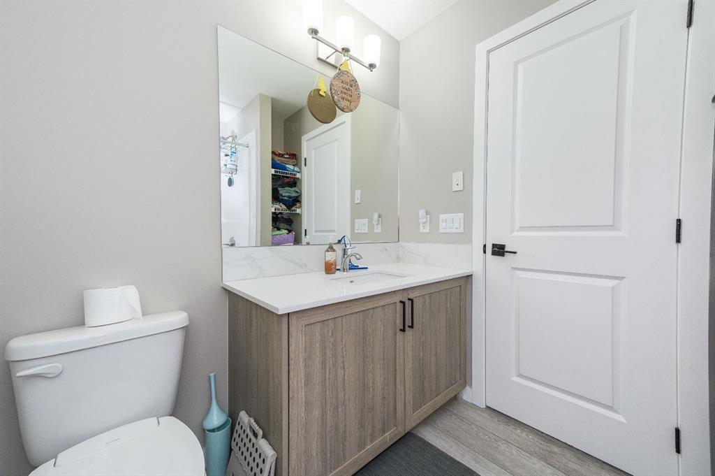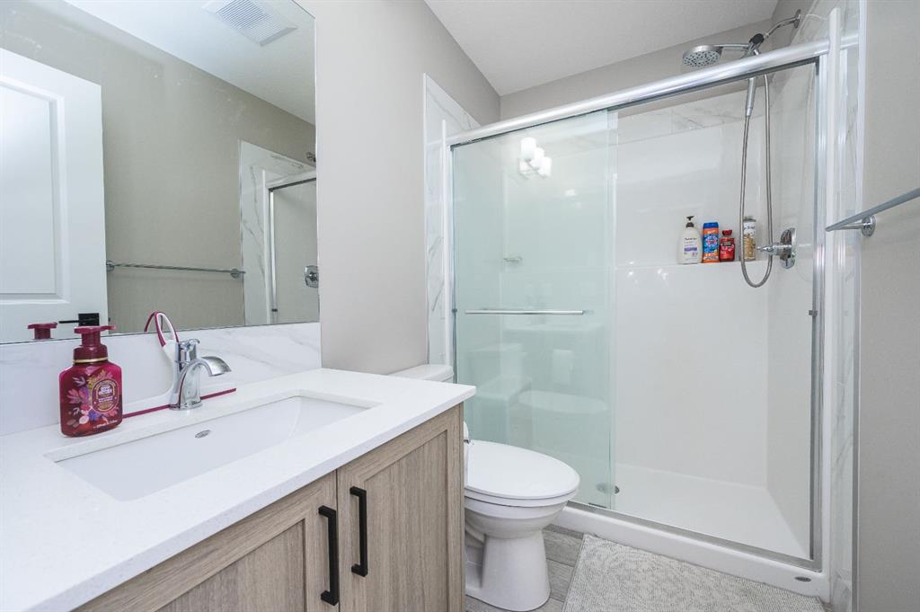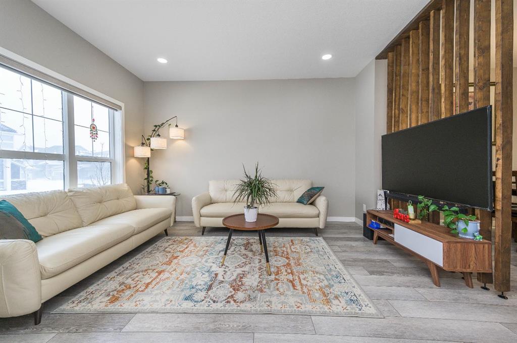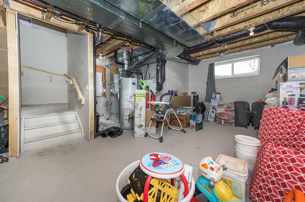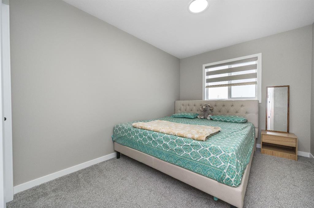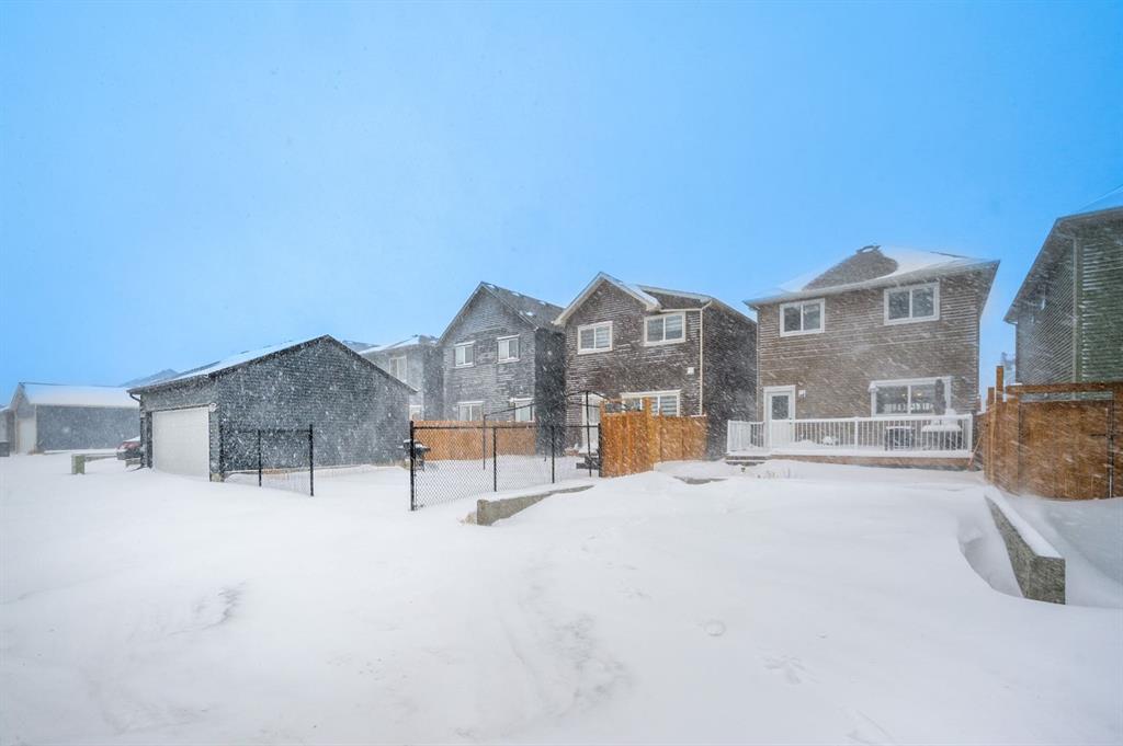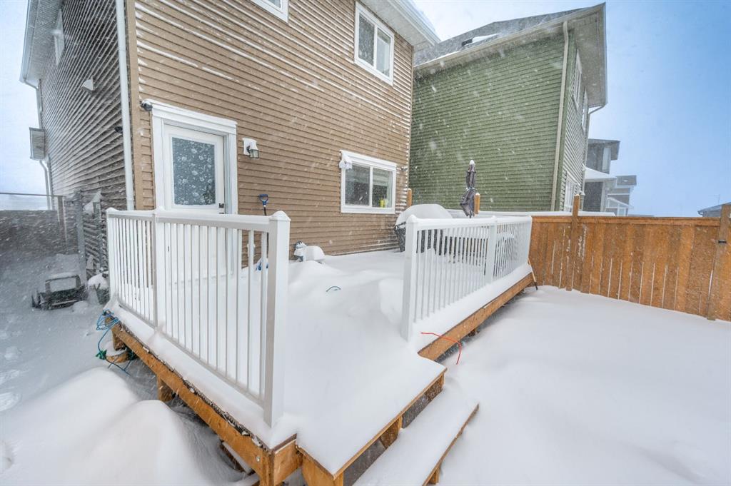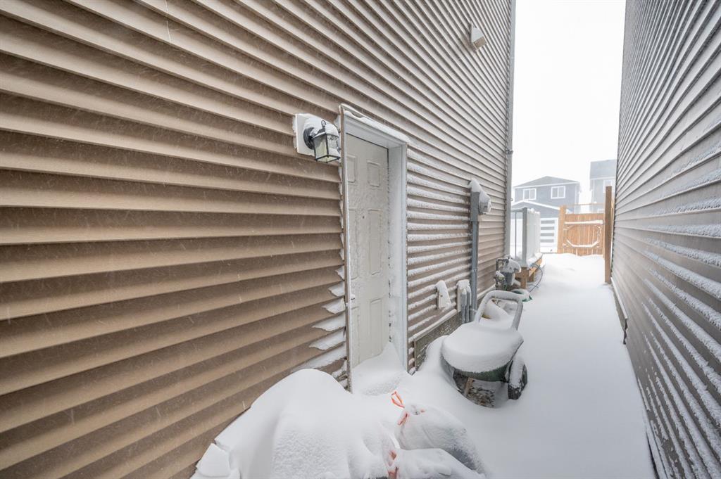 Welcome to this beautiful 3-bedroom, 2.5-bath laned home in the vibrant community of Cobblestone Creek. Only one year old, this modern home offers a functional layout, stylish upgrades, and excellent future potential. The main floor features a bright open-concept floor plan, perfect for both everyday living and entertaining. The fully upgraded kitchen boasts modern finishes, ample cabinetry, and quality appliances, flowing seamlessly into the spacious dining area and comfortable living room. A convenient half bathroom completes the main level. Upstairs, you'll find three well-sized bedrooms, including a primary suite with its own full ensuite bathroom. An additional full bathroom serves the other bedrooms, and the upper-floor laundry room adds everyday convenience. The unfinished basement comes with a separate side entrance, offering great potential for future development or customization. Outside, the backyard is fully set up and ready to enjoy, featuring a finished deck, fencing, and a two-car parking pad at the rear. Located in the growing community of Cobblestone Creek in Airdrie, this brand-new, young and vibrant neighborhood offers easy access to parks, schools, shopping, and everyday amenities—making it an ideal place to call home.