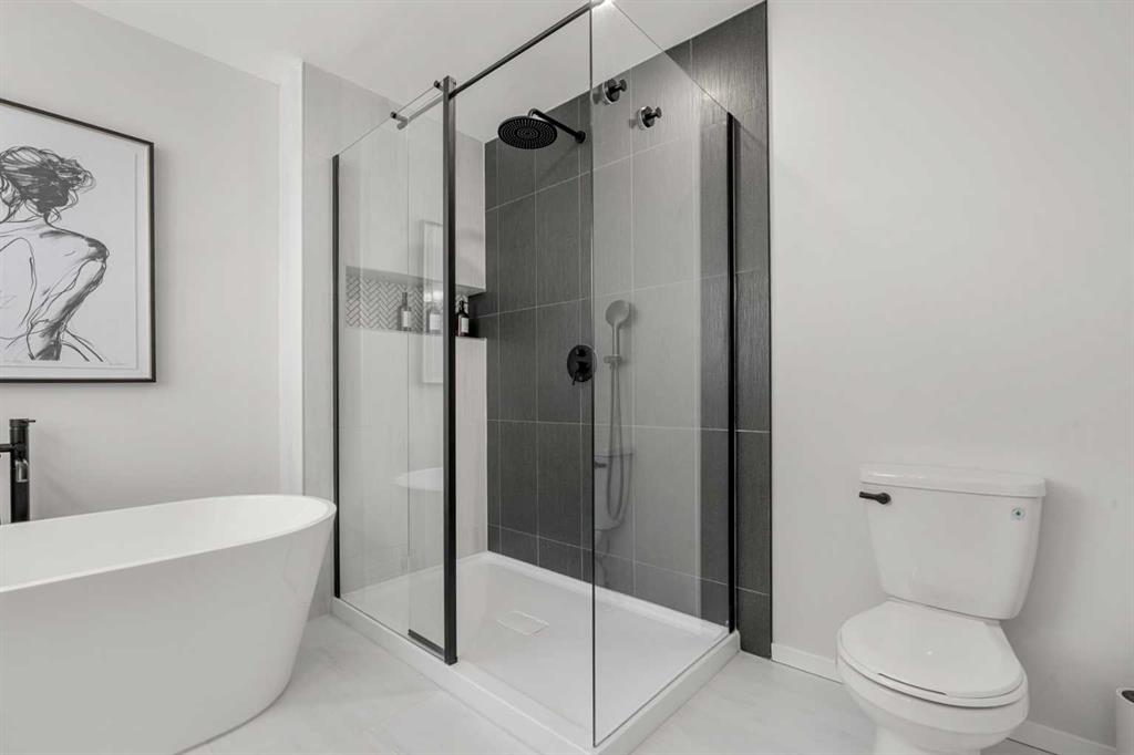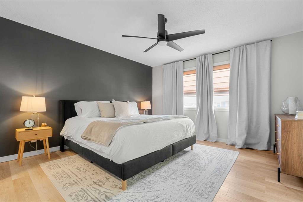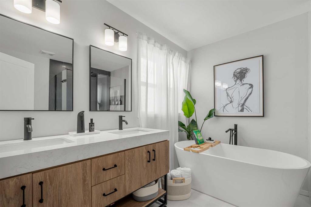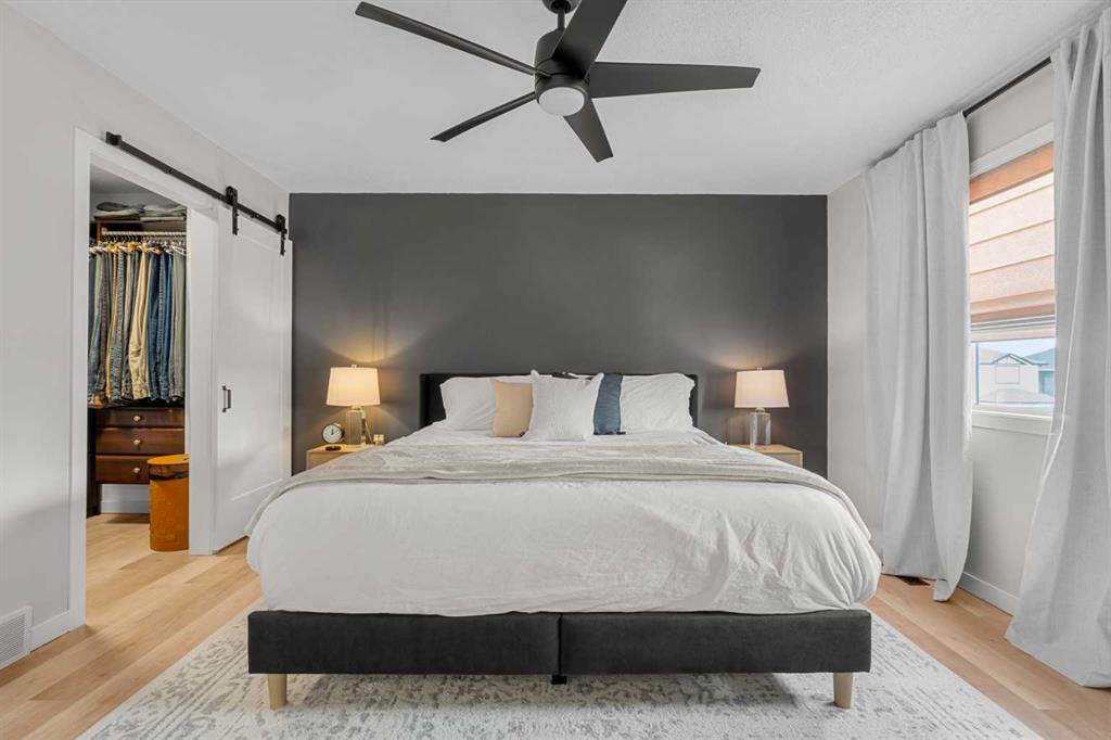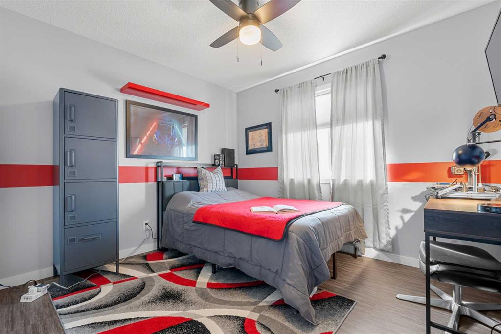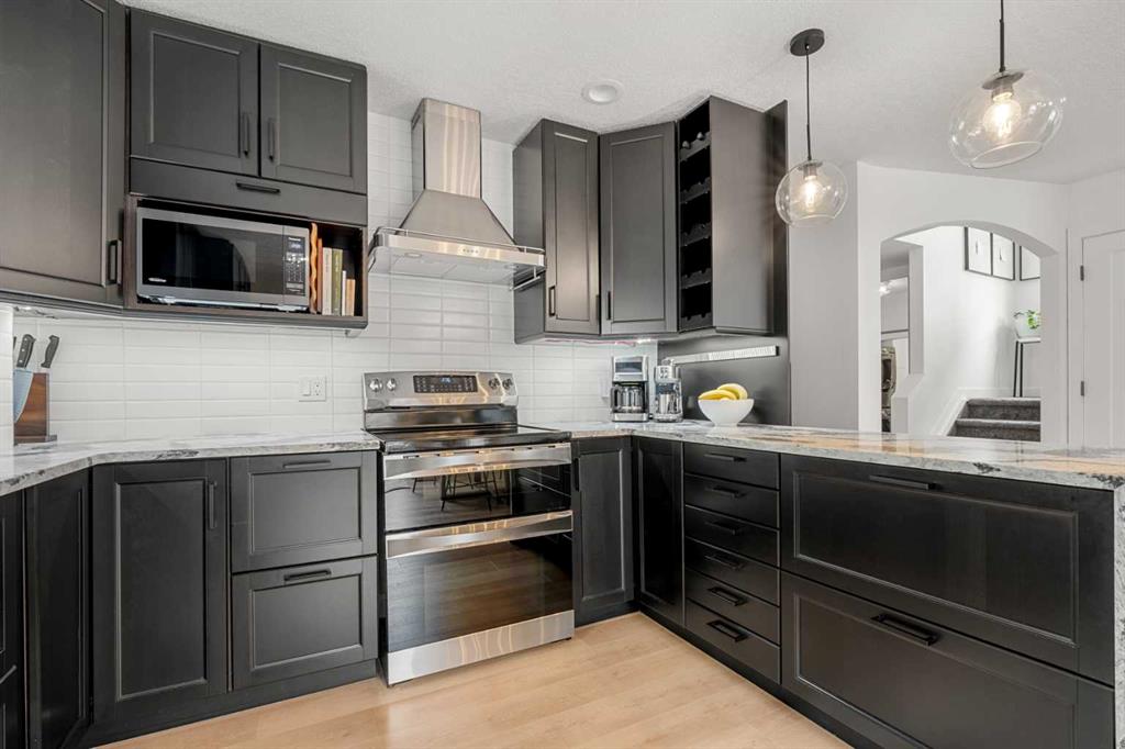 Welcome to this beautifully updated, top-to-bottom renovated home located in the desirable Fairways community of Airdrie, just minutes from Woodside Golf Course and conveniently close to Veterans Blvd NW, offering quick access to major routes, parks, and everyday amenities. This well-maintained property offers 3 spacious bedrooms upstairs, 2.5 bathrooms on the upper levels, plus a fully finished basement that includes an additional bedroom, a full bathroom, and a dedicated office space, making it perfect for growing families, remote work, or guests. Inside, the home showcases thoughtful upgrades throughout. The modern kitchen is designed for both functionality and style, featuring quality cabinetry, modern countertops, a stunning waterfall island, built-in dishwasher, stylish wine cabinet, and an electric range with double ovens, making it ideal for cooking, hosting, and everyday living. The primary ensuite has been beautifully renovated into a spa-like retreat, complete with a glass shower with built-in niche, upgraded plumbing fixtures, a relaxing standalone tub, and a stylish double vanity. The primary closet features a barn-style sliding door and built-in organizers, adding both character and practical storage. The fully finished basement adds valuable living space and includes a cozy electric fireplace, an additional bedroom, full bathroom, and a private office space, offering flexibility for work, guests, or extended family. Step outside to the true highlight of the home — the resort-style backyard, thoughtfully designed for relaxation and entertaining. The outdoor space features a pergola-covered seating area with privacy screen, a relaxing hot tub, cozy firepit area, raised garden beds, and a spacious deck perfect for gatherings. An L-shaped built-in bench seating area adds charm and functionality, creating the perfect place to host family and friends. Additional upgrades throughout the home include custom laundry storage, built-in closets, accent walls, upgraded baseboards, modern lighting fixtures, and stylish ceiling fans, giving the entire home a polished, move-in-ready feel. Located in one of Airdrie’s most family-friendly neighbourhoods, and just minutes from golf, parks, green spaces, and major roadways, this home offers the perfect combination of comfort, lifestyle, and convenience.