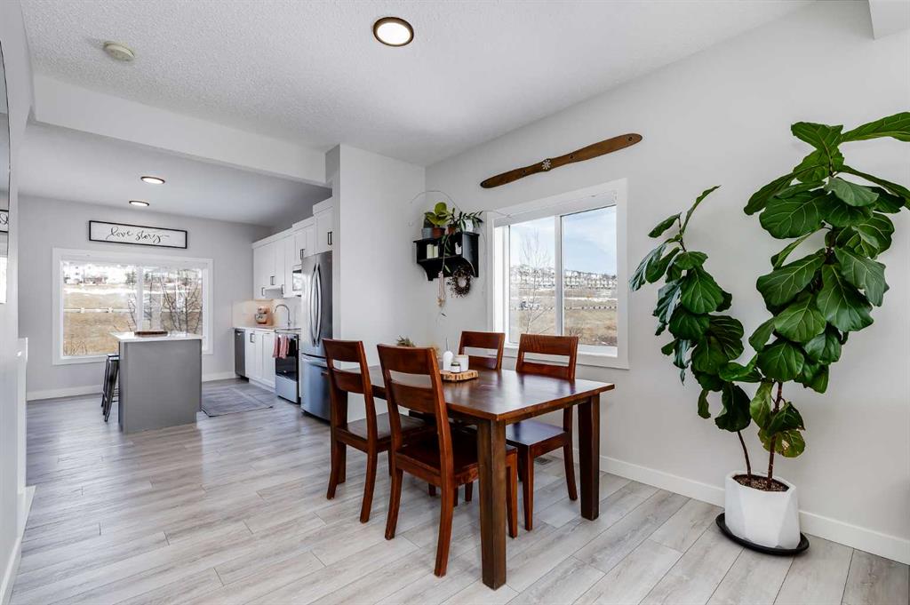 Located in the sought-after, family-friendly community of Tuscany, this end-unit three-storey townhouse offers 1,260 sq ft of thoughtfully designed living space with two bedrooms and two full bathrooms. Built in 2022 as part of the Tuscan Rise development by Rockford, the home combines contemporary finishes with a functional layout. The main level provides a welcoming entry and direct access to the attached tandem garage. This spacious garage comfortably accommodates two vehicles while still offering room for additional storage. Upstairs on the second level, the home opens into a bright, open-concept living area designed for both everyday living and entertaining. Large windows allow natural light to fill the space, highlighting the nine-foot ceilings and durable luxury vinyl plank flooring that runs throughout the level. The kitchen is a central feature, finished with white cabinetry, quartz countertops, under-cabinet lighting, and a tasteful backsplash. A two-tone island with seating creates a practical gathering spot, while stainless steel appliances, including a French door refrigerator, and generous cupboard and counter space provide everything needed for cooking and hosting. Adjacent to the kitchen, the dining area offers ample room for a full table, making it ideal for shared meals or casual gatherings. The living room provides a comfortable place to unwind, and sliding glass doors lead to the balcony, extending the living space outdoors. The balcony is equipped with a natural gas line, making it easy to connect a barbecue for outdoor cooking. Plush carpet adds comfort underfoot throughout the upper level. The primary bedroom is generously sized and features dual closets along with a private three-piece ensuite complete with an oversized shower. A second bedroom provides flexibility for guests, a home office, or additional family members. A four-piece bathroom serves this room and visitors, and the conveniently located laundry area completes the upper floor. The home includes air conditioning for summer comfort. Tuscany Summit Playground is just steps away, providing an easy place for outdoor play. Commuting is simple with quick connections to both Crowchild Trail and Stoney Trail. Nearby shopping, dining, and services can be found at Tuscany Market and Crowfoot Crossing, along with the YMCA. Several schools serve the community, including Eric Harvie School, St. Basil School, Twelve Mile Coulee School, and Tuscany School. Outdoor enthusiasts will appreciate being just minutes from Lynx Ridge and Valley Ridge Golf Clubs, the Bow River pathways, and WinSport. The location also offers convenient westward access toward the Rocky Mountains. Take advantage of your opportunity to see this incredible property in person, book your showing today! Be sure to check out the floor plans and 3D tour for a closer look before your visit.