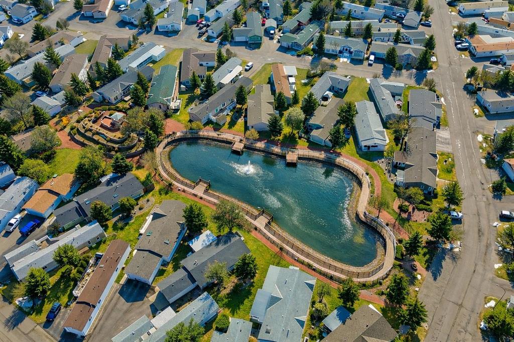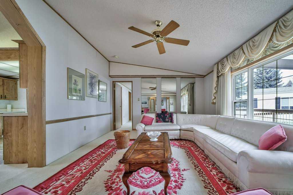 This well-maintained home offers a large GARAGE (21X19), 2 spacious bedrooms, 2 bathrooms, and a dedicated office, providing comfortable, easy living. The oversized living room is filled with natural light from large windows, creating a warm space to relax or spend time with family. A generous kitchen and dining area make it easy to continue hosting dinners, celebrations, and holiday gatherings—because downsizing shouldn’t mean giving up the moments that matter most. Recent updates include a newer roof and a brand-new deck, perfect for enjoying the outdoors or visiting with friendly neighbors. Accessibility is simple with a ramp, making everyday living more convenient. Located in Parkbridge Estates, residents enjoy exclusive access to a beautiful walking path that winds around a serene man-made lake, surrounded by mature trees and nature, along with a private clubhouse available for hosting events and community gatherings. With frequent deer sightings and peaceful surroundings, it’s a perfect setting for relaxing strolls. Conveniently located just minutes from Costco and other essential amenities, this home offers the perfect balance of comfort, community, and low-maintenance living.