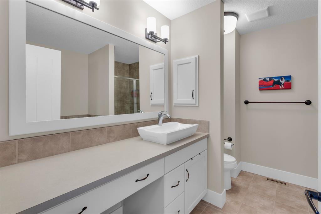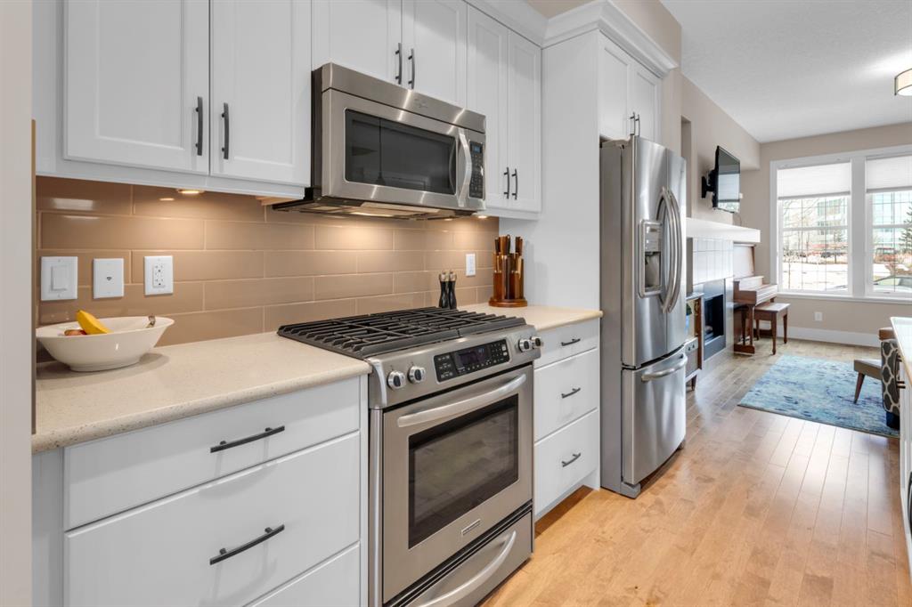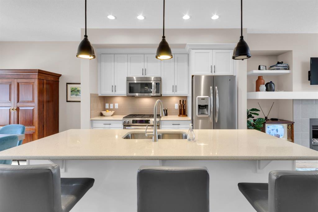 Welcome to Quarry Park, one of Calgary’s most vibrant and thoughtfully planned communities. Known for its beautiful green spaces, walkable pathways, and convenient amenities, Quarry Park offers an exceptional lifestyle along the banks of the scenic Bow River. Residents enjoy easy access to parks, off-leash dog areas, extensive pathway systems, boutique shopping, local cafés, and popular neighbourhood pubs — all while being ideally located for commuting to downtown or anywhere across the city. This stylish two-storey townhouse blends comfort, functionality, and modern design. With its separate front entrance from the street and a private fenced backyard, the home offers the feel of a detached property while maintaining the convenience of townhouse living. A detached double garage adds practical everyday ease. The open-concept main floor is bright and inviting, perfect for both daily living and entertaining. The living room centers around a beautiful gas fireplace with built-in shelving, creating a warm focal point. The spacious kitchen features stainless steel appliances, a massive island, and plenty of prep and gathering space. Just off the kitchen, the sunny dining area overlooks the backyard, bringing in natural light throughout the day. A convenient main-floor half bath completes this level. Upstairs you’ll find a unique and highly functional layout with two primary bedrooms, each with their own private ensuite. Separating the bedrooms is a dedicated laundry room and built-in desk workspace, offering the perfect spot for working from home or staying organized. There is also a pull-down attic hatch, providing valuable extra storage. The fully developed basement offers a cozy yet open extension of the home. The large family room provides plenty of flexible space and is currently set up for spin bikes and fitness equipment. This level also features a generous third bedroom with large windows, a walk-in closet, and convenient cheater access to a four-piece bathroom, making it ideal for guests or older children. With its smart layout, private outdoor space, and unbeatable location in Quarry Park, this home offers the perfect blend of urban convenience and natural surroundings.