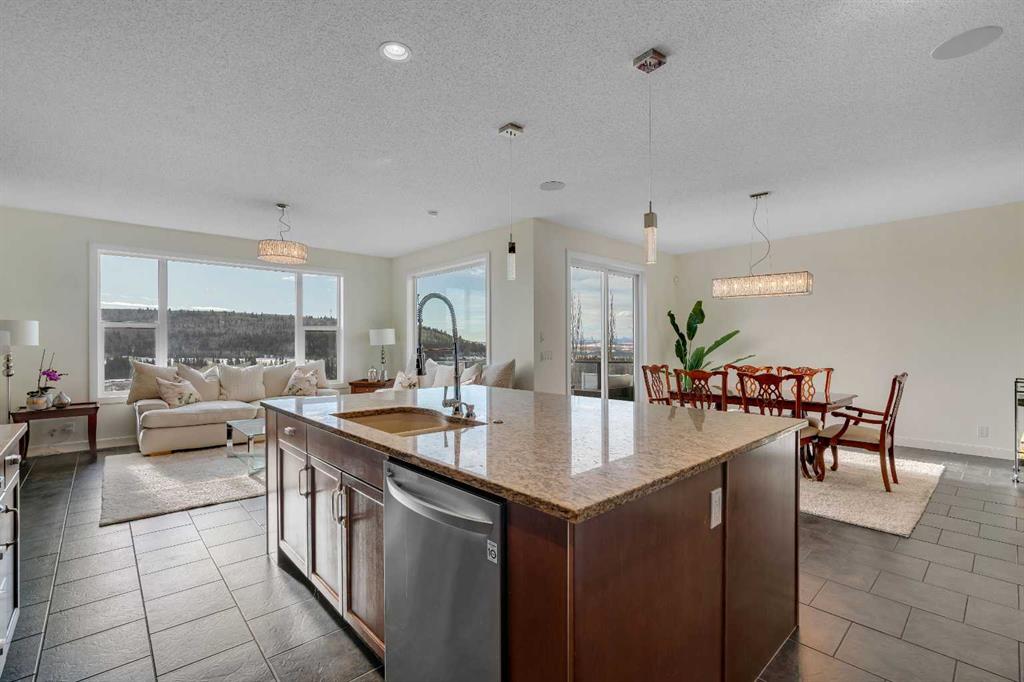 Welcome to this beautifully maintained two-storey walk-out home backing directly onto a stunning environmental reserve with pathways, nature and incredible mountain views. Built in 2011 and thoughtfully positioned to capture the scenery from nearly every window, this home offers the perfect blend of privacy, space and functionality. The main floor welcomes you with a spacious front foyer and an open-concept layout featuring an expansive kitchen with oversized eat-up island, stainless steel appliances, a large pantry and abundant cabinetry for exceptional storage. The kitchen flows seamlessly into the dining area and spacious living room with gas fireplace, solid wood built-in shelving and solid wood staircase railings that add warmth and character. The dining area leads to the deck where you can relax and enjoy the peaceful reserve and mountain views. The main floor also includes a private 2-piece bathroom and a functional boot room with storage that leads to the attached garage. Upstairs offers a central open office/den with double desks, a massive bonus room with stunning views, two bedrooms with a shared 4-piece bathroom, and a convenient laundry room with a sink. The private primary retreat is a standout feature with a unique bright dressing room with oversized skylight offering endless natural lighting, spa-inspired ensuite with soaker tub, shower and dual sinks, plus a separate walk-in closet and private bedroom access designed to avoid disrupting anyone sleeping while getting ready for the day. The professionally developed walk-out basement features a large entertaining bar, spacious rec room with two intentional entertaining spaces offering covered patio & backyard access, custom Murphy bed for guests or optional fourth bedroom, a 4-piece bathroom, multiple storage closets including a large walk-in closet and a mechanical room with additional storage. Additional Features include Central Air Conditioning installed 2 years ago, Telus Alarm system including cameras, doorbell & sensors, upgraded lighting throughout, Refrigerator (2025), Dishwasher (2024), Range (2025), Ceiling speakers on all 3 floors and include the master retreat. A rare opportunity to own a walk-out home backing onto protected green space with breathtaking views in desirable Sunset Ridge. Sunset Ridge is a sought-after community known for incredible Rocky Mountain views, extensive parks and welcoming neighbourhood feel. Residents enjoy over 5 km of scenic walking & biking pathways, numerous playgrounds, green spaces and a central park with ponds, all designed to encourage an active outdoor lifestyle. Appreciate the convenience of nearby schools including RancheView School (K-8) and St. Timothy Jr./Sr. High School, both located within the community. Local amenities at the entrance to Sunset Ridge include restaurants, medical services, pharmacy, daycare and other everyday conveniences, while the charming shops and services of downtown Cochrane are minutes away and Calgary a short commute.