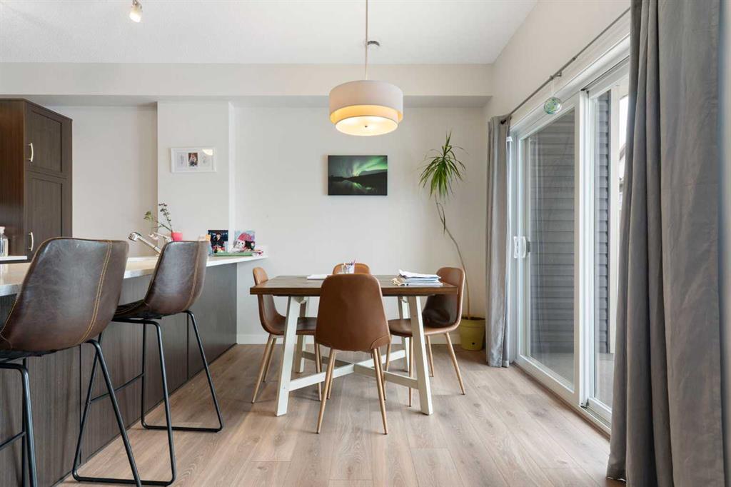 TWO TITLED PARKING STALLS | VIEWS | Welcome to this stylish townhome in the family-friendly community of Fireside. Upon entering, you’re welcomed by a bright foyer with stairs leading to the main living level. Upstairs, the spacious kitchen, living, and dining areas flow seamlessly together, creating the perfect space for both everyday living and entertaining. Rich dark wood cabinetry adds warmth, while large windows fill the space with natural light. A convenient two-piece powder room is also located on this level. The top floor features two well-appointed bedrooms, including a primary retreat complete with a walk-in closet and private balcony, an ideal spot to enjoy your morning coffee or unwind in the evening. A full four-piece bathroom and a stacked washer and dryer are also located on this level for added convenience. Situated in the family-friendly Fireside community, this home offers easy access to parks, pathways, schools, restaurants, pharmacy, and more, all while being just a short drive from the mountains and Calgary. Book your showing today to find out why Living in Cochrane is Loving where you Live!
