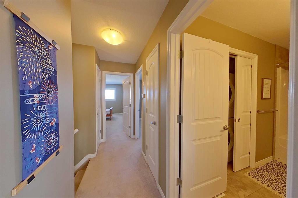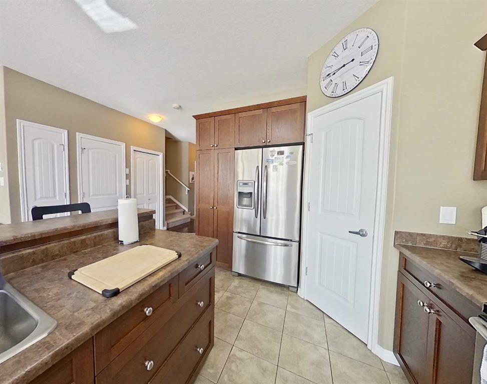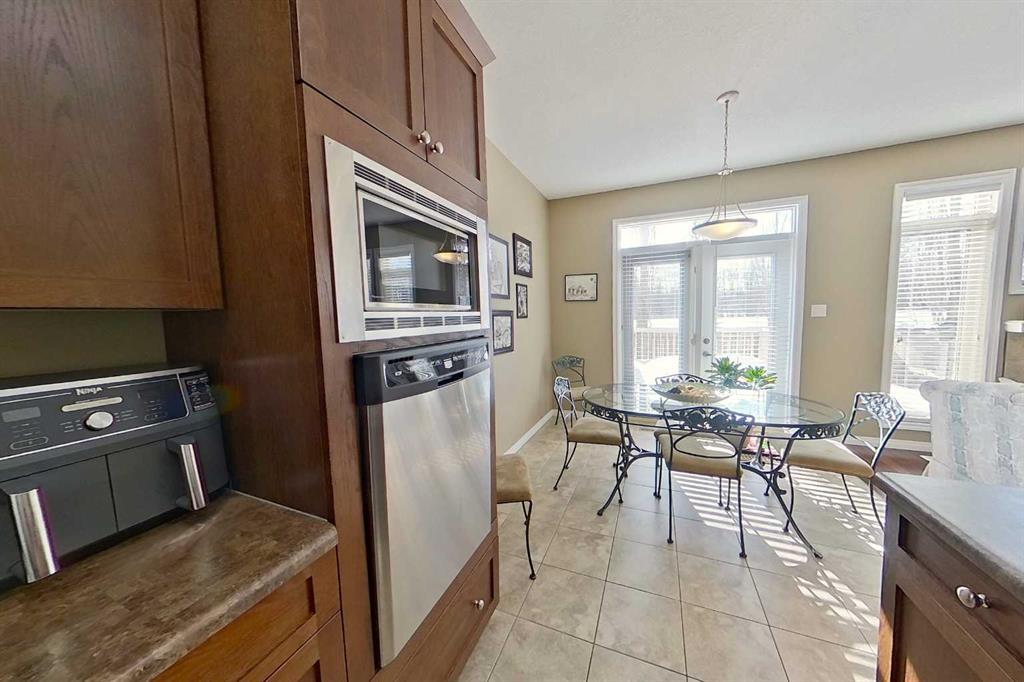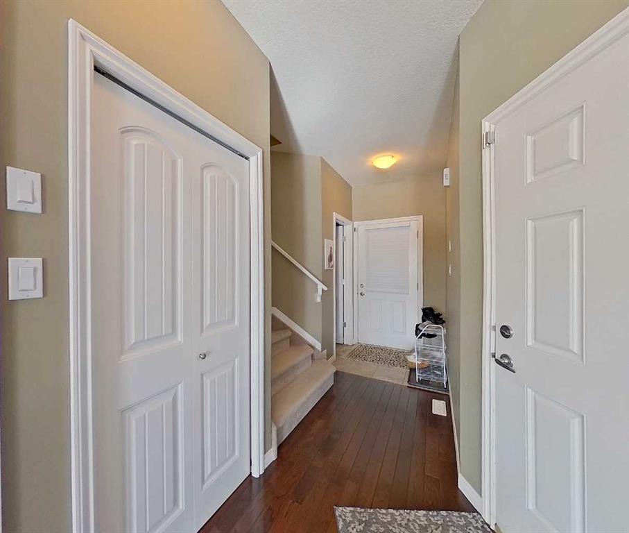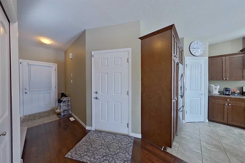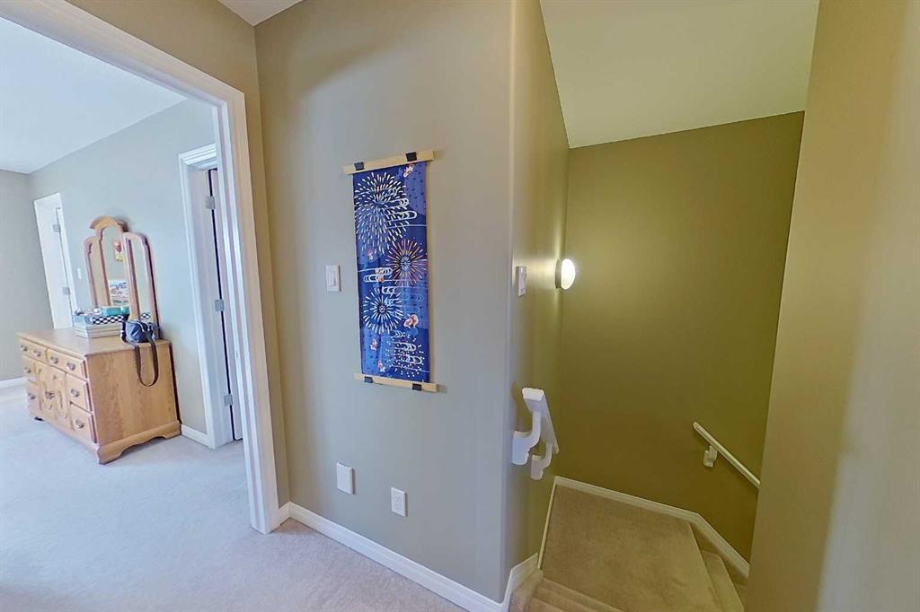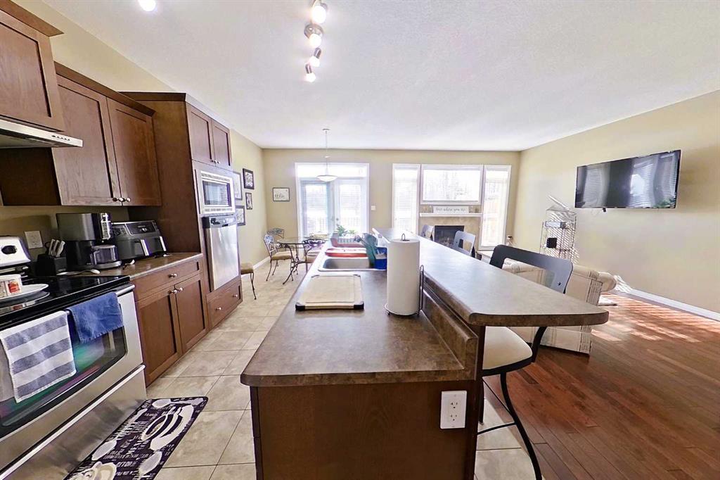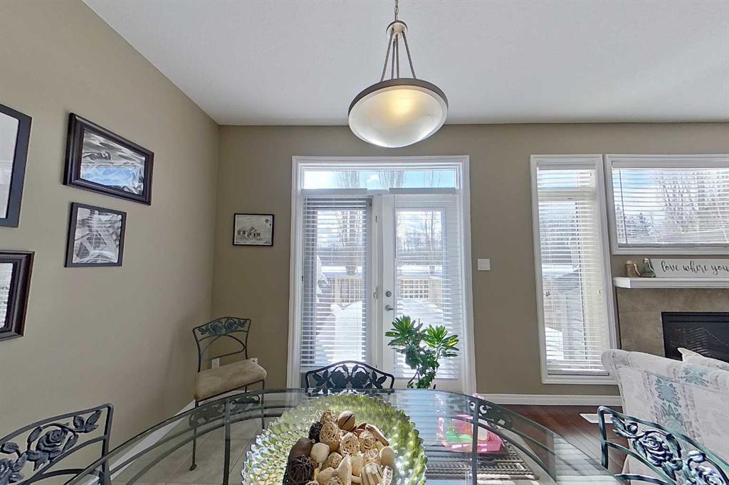 Immaculate.... 2 Storey, 3 Bedroom Townhome in Cornerstone Village. A welcoming Veranda opens to a Foyer and 2 Pc Bath with Ceramic Tile flooring that extends to the Kitchen and Dining Room . The Open Concept Floor Plan... with high ceilings, Dark Hardwood flooring and a Cozy Gas Fireplace in the Living Room. Dark Kitchen Cabinets with ample counter space, Stainless Steel Appliances, Island with Eating Bar, and Corner Pantry. Bright Dining Room Patio Doors open to the deck and landscaped backyard. Upstairs is the Primary Bedroom, a Walk-in Closet with custom built storage, and a 4 Pc Ensuite. Two Additional Bedrooms share a 4 Pc Bath with Laundry. The basement is undeveloped, ready for future development ...it has a rough-in bath, newer HWT and the Furnace Mother Board. Convenient Single Attached Garage with direct access from the main hallway. Condo Fees include: Reserve Fund, Exterior Building Maintenance, Snow Removal, Common Area Maintenance and Guest Parking. Located close to Cornerstone Shopping Plaza, Catholic Jr/Sr High, Downtown amenities and so much more. Add this beautiful Condo to your viewing list