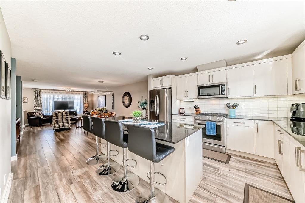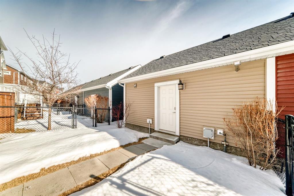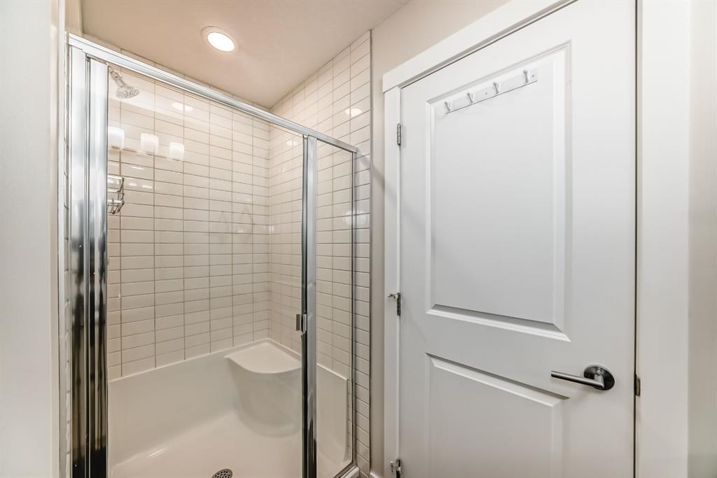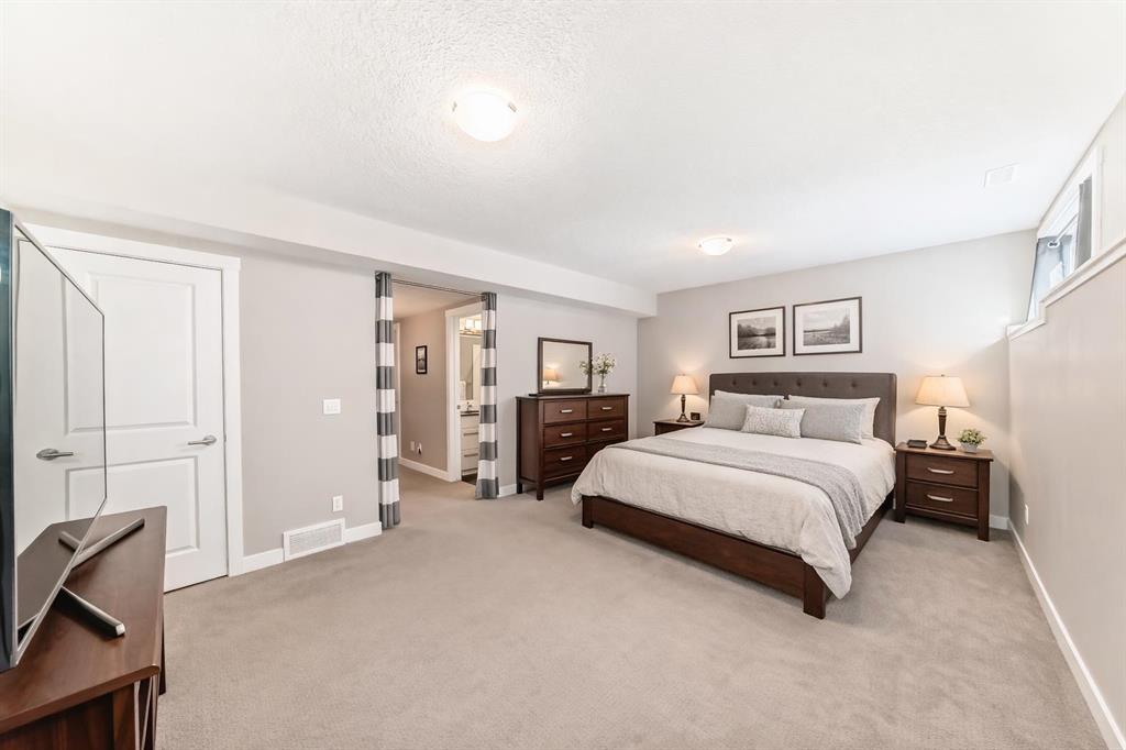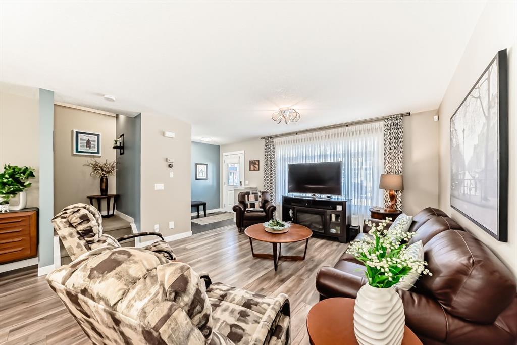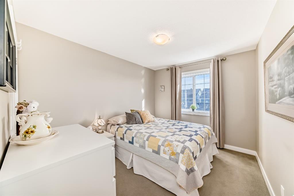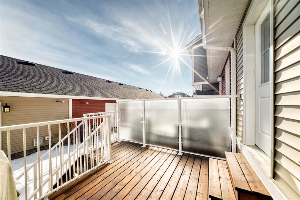 If you're looking for a townhome that offers real space, this one delivers: 4 bedrooms, 3.5 bathrooms, and over 2,400 SQFT of fully developed living with 1,700.9 SQFT above grade (RMS), in a desirable end-unit location with only one common wall. The main floor features a bright open-concept layout with high ceilings, large windows, and great flow between the living, dining, and kitchen areas. The kitchen is both functional and stylish with quartz countertops, a large island, and plenty of cabinetry, making it an easy space for everyday living or hosting friends and family. A convenient 2-piece bathroom completes the main level. Upstairs you'll find three spacious bedrooms, including a comfortable primary suite with a good-sized walk-in closet and private 4-piece ensuite featuring heated floors. The additional bedrooms are generously sized and also offer great closet space, while another full bathroom with heated flooring and upper-level laundry with a newer washing machine add everyday convenience. The fully finished basement expands the living space with a large fourth bedroom, full bathroom, and additional rec/family room, giving you flexibility for guests, a home office, gym, or extra living area. Additional features include central air conditioning, central vacuum, quartz countertops, high ceilings, and keypad door locks on all three exterior doors. The double detached heated garage is fully finished with epoxy flooring and back lane access. The backyard is fully fenced with a deck and natural gas BBQ line. Located in the family-friendly community of Baysprings, close to parks, schools, playgrounds, shopping, and walking paths, this home offers space, functionality, and a fantastic Airdrie location.