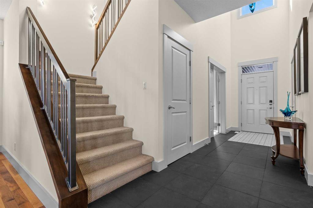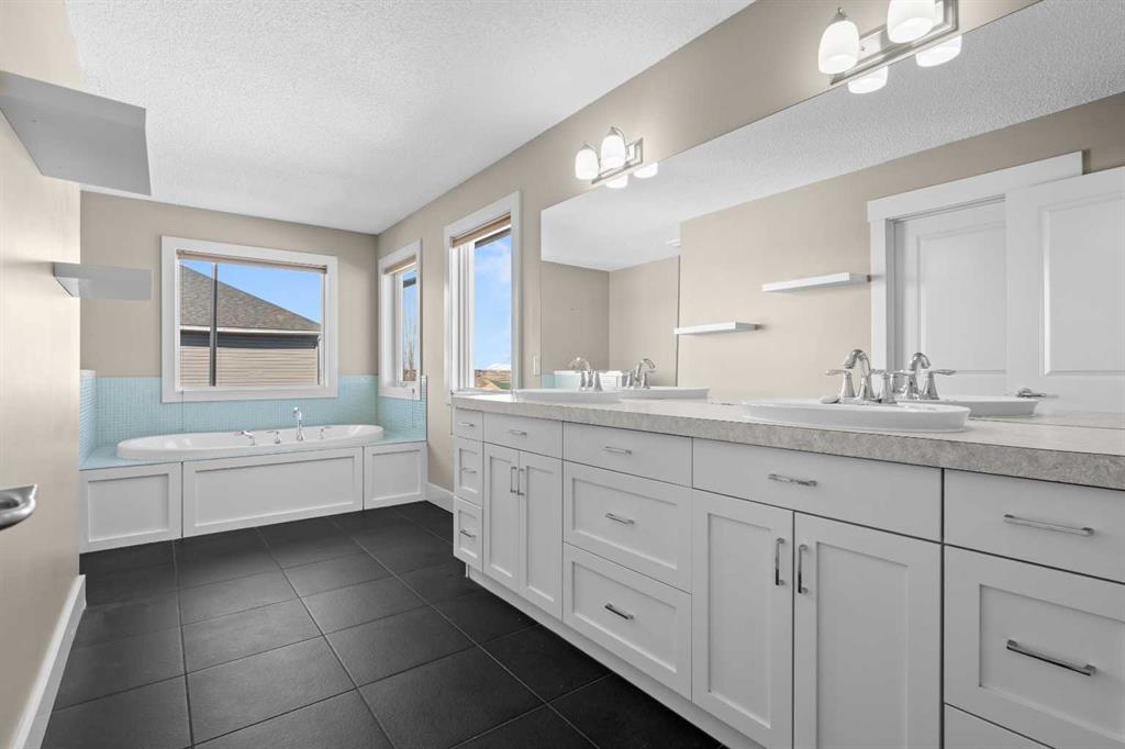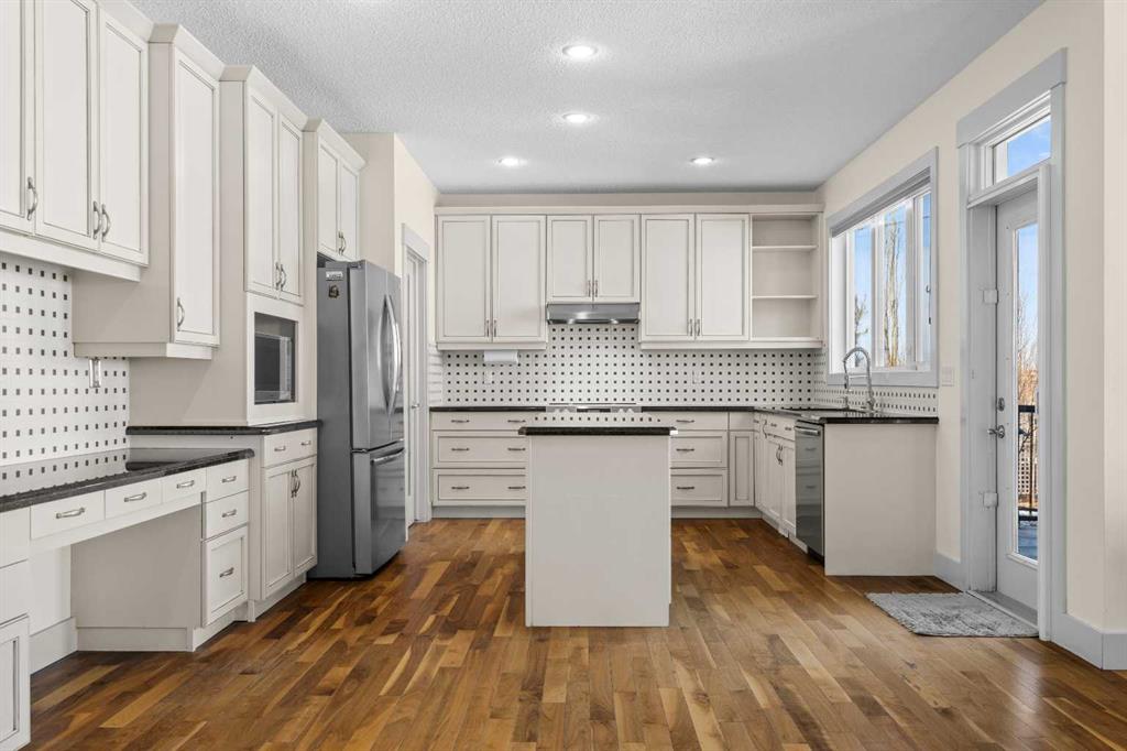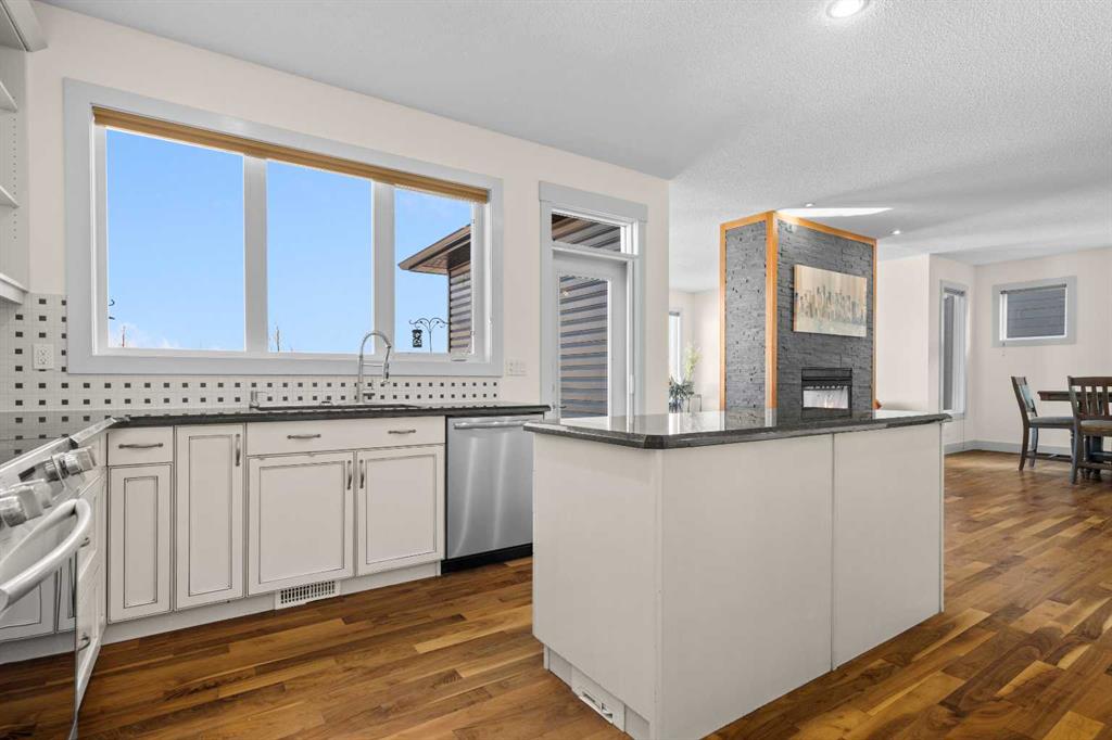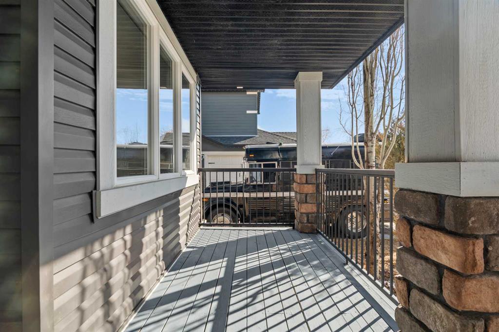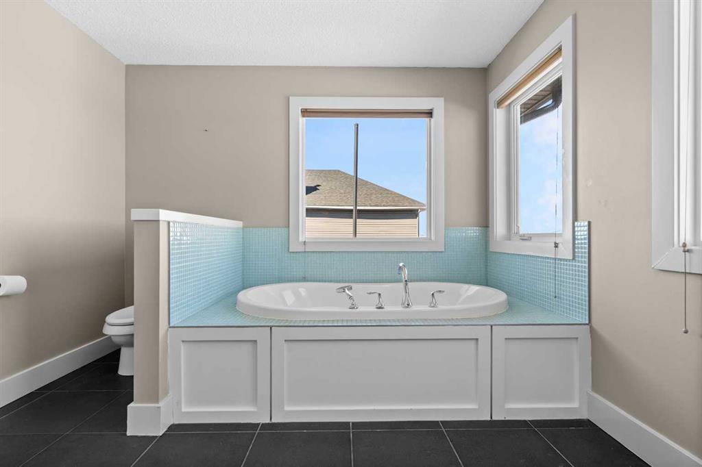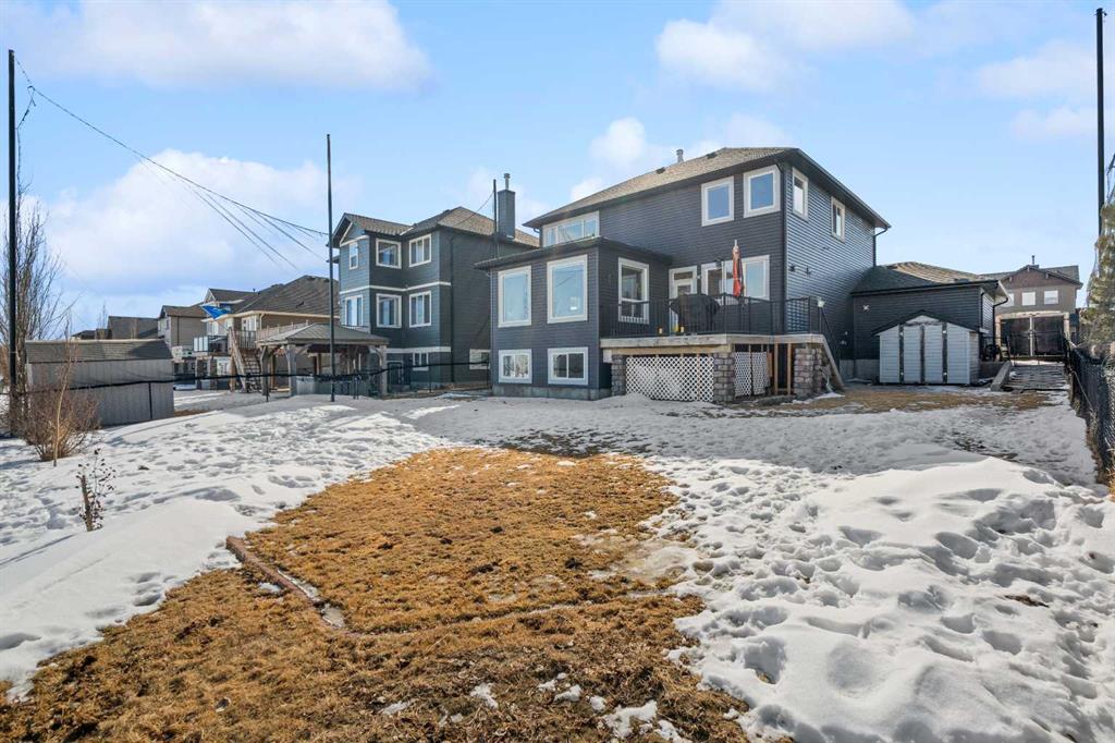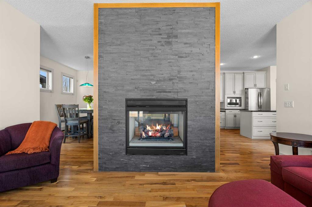 A gorgeous home located on a large lot backing directly onto the golf course, this spacious home offers stunning views, exceptional living space, and a highly desirable layout. A charming front porch and impressive open-to-above tiled entry create a welcoming first impression, with a private office near the front door—perfect for working from home. The main level features hardwood flooring throughout the kitchen, dining, and living areas, highlighted by a striking two-way stacked stone fireplace. The bright white kitchen offers abundant cabinetry, pot drawers, and new appliances (2024), while the large dining area surrounded by windows captures the beautiful golf course views. A walk-through pantry and functional mudroom with built-in lockers add everyday convenience. There is also a laundry room with laundry rough-in on the main floor. Upstairs, the huge primary suite offers a relaxing retreat with a walk-in closet and spacious ensuite featuring dual sinks, deep soaker tub, and oversized shower. Two additional bedrooms and a full bathroom complete the upper level. The finished basement provides even more living space with a large family/games room and an additional bedroom with cheater ensuite, featuring a jetted tub for two and an impressive oversized tiled shower with dual heads and rain shower. Enjoy outdoor living on the durable long-life deck overlooking the golf course, with a large yard, storage shed, and underground sprinkler system. Additional highlights include a triple car garage with 220 wiring, two furnaces, new hot water tank, HVAC system, and a sump pump. A great opportunity to own a spacious golf course property with incredible views and outstanding features throughout. View Multi Media/3D Virtual Tour.