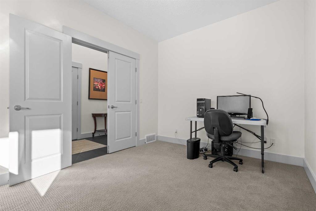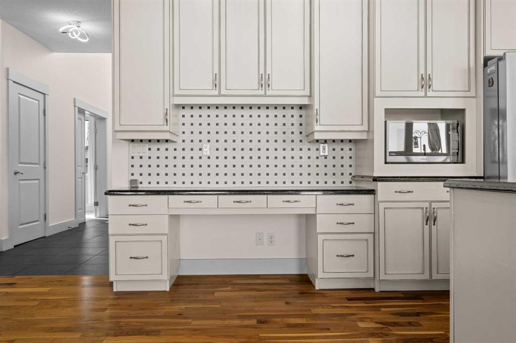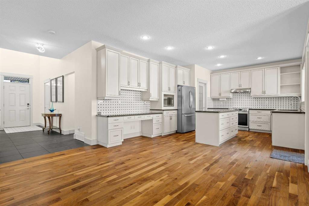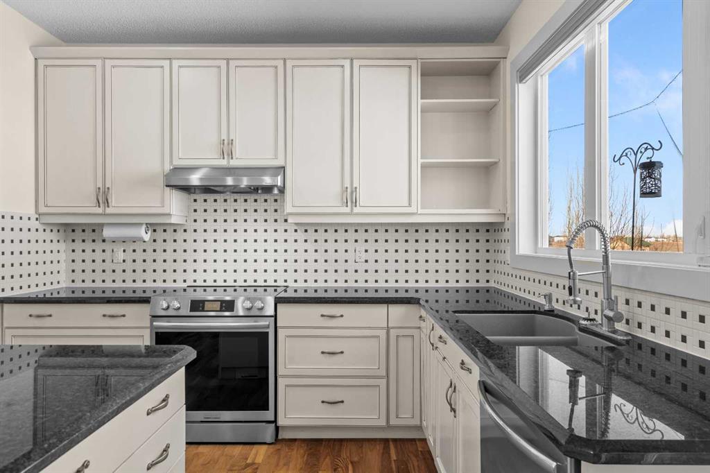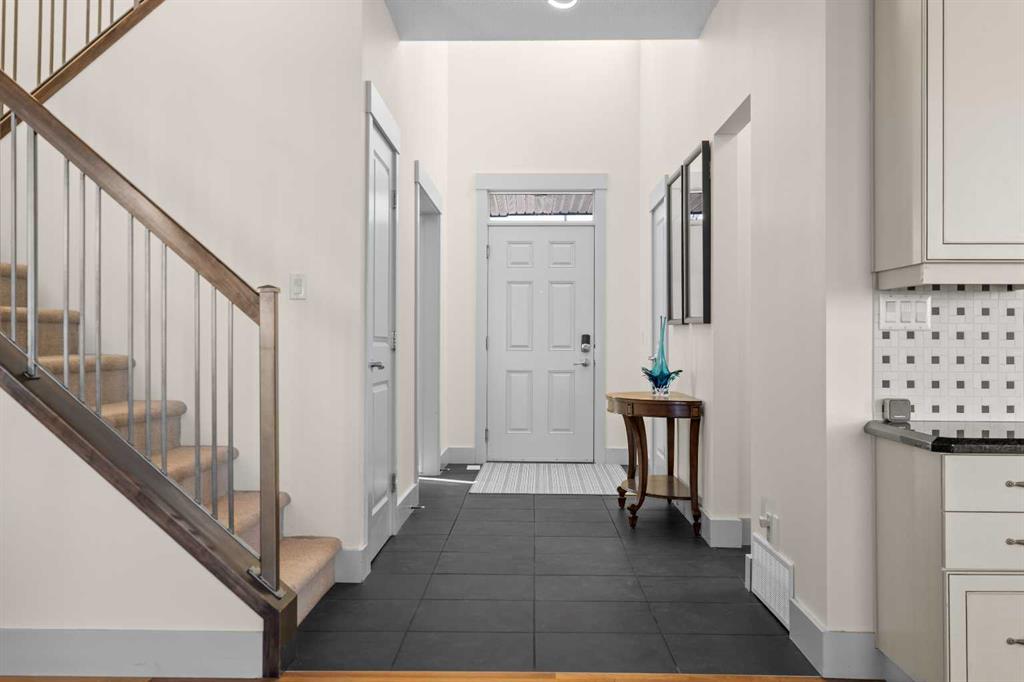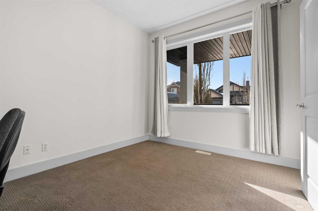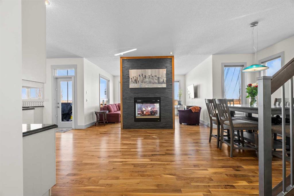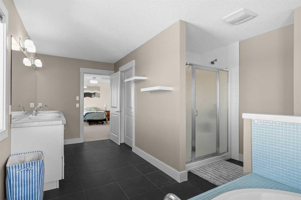 A gorgeous home located on a large lot backing directly onto the golf course, this spacious home offers stunning views, exceptional living space, and a highly desirable layout. A charming front porch and impressive open-to-above tiled entry create a welcoming first impression, with a private office near the front door—perfect for working from home. The main level features hardwood flooring throughout the kitchen, dining, and living areas, highlighted by a striking two-way stacked stone fireplace. The bright white kitchen offers abundant cabinetry, pot drawers, and new appliances (2024), while the large dining area surrounded by windows captures the beautiful golf course views. A walk-through pantry and functional mudroom with built-in lockers add everyday convenience. There is also a laundry room with laundry rough-in on the main floor. Upstairs, the huge primary suite offers a relaxing retreat with a walk-in closet and spacious ensuite featuring dual sinks, deep soaker tub, and oversized shower. Two additional bedrooms and a full bathroom complete the upper level. The finished basement provides even more living space with a large family/games room and an additional bedroom with cheater ensuite, featuring a jetted tub for two and an impressive oversized tiled shower with dual heads and rain shower. Enjoy outdoor living on the durable long-life deck overlooking the golf course, with a large yard, storage shed, and underground sprinkler system. Additional highlights include a triple car garage with 220 wiring, two furnaces, new hot water tank, HVAC system, and a sump pump. A great opportunity to own a spacious golf course property with incredible views and outstanding features throughout. View Multi Media/3D Virtual Tour.