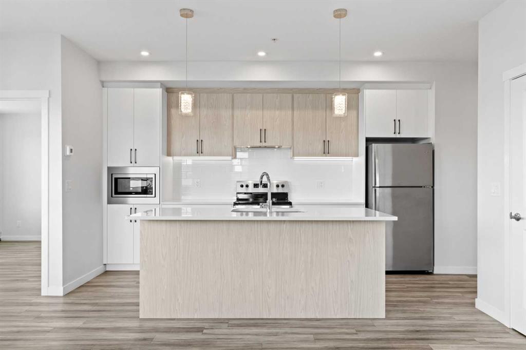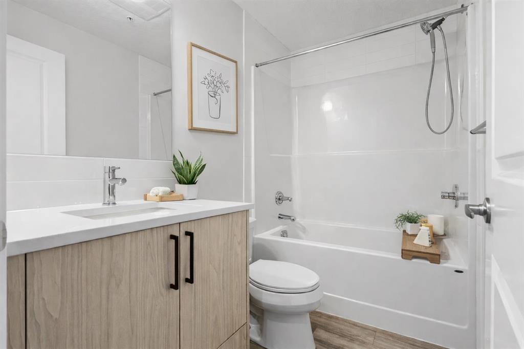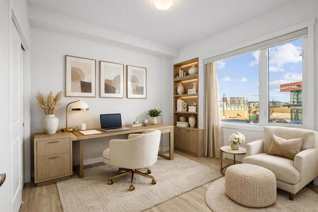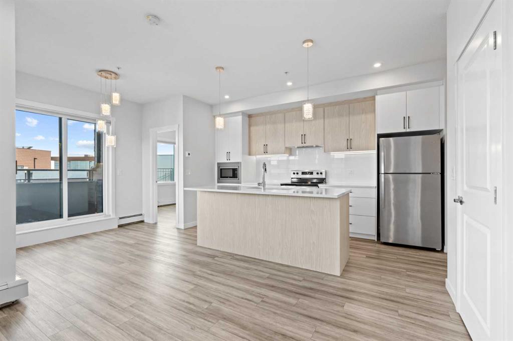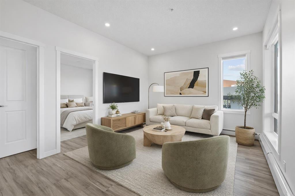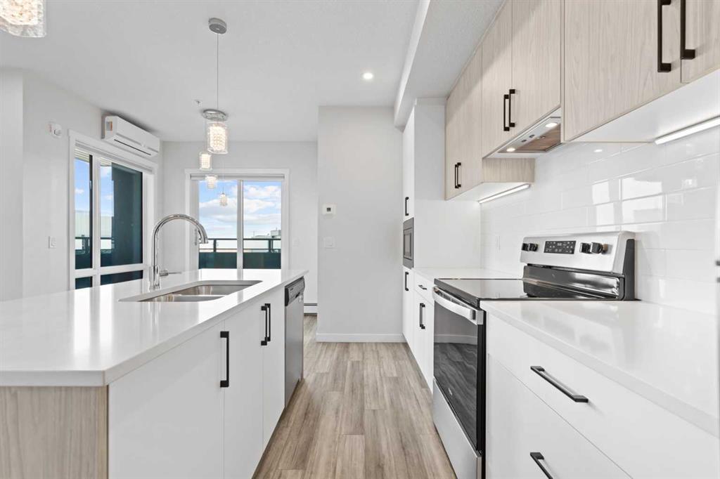 Welcome to this stylish CORNER, AIR CONDITIONED unit in Q Condos at Sage Hill NW, offering the perfect blend of privacy, upgrades, and unbeatable walkability. Although the unit is located on the ground level, it sits elevated and set back from the street, creating a private and secure outdoor space that feels more like a raised terrace than a typical ground floor patio. This bright, modern and clean 2-bedroom, 2-bathroom home features over 800 square feet of open concept living, enhanced by extra windows that fill the space with natural light throughout the day. This unit feels brand new! The thoughtful layout creates great separation between the bedrooms while the 9 ft ceilings add to the spacious, airy feel. The upgraded kitchen is both functional and elegant, showcasing quartz countertops, kitchen cabinets to the ceiling, stainless steel appliances, a slide-in electric range, and pot lights for a clean modern finish. Luxury vinyl plank flooring runs through the main living areas and the home also includes professionally installed window coverings throughout. One of the standout features of this home is the oversized L-shaped balcony with unobstructed views, offering a fantastic space for relaxing or entertaining. Comfort is further enhanced by an air conditioning unit, helping keep the home cool during Calgary’s warmer months. There is also a TITLED heated UNDERGROUND parking spot + TITLED heated underground STORAGE. The location is a major highlight. You are just a one minute walk to Sage Hill Crossing, where you will find everyday conveniences including Co-op grocery store, Shoppers Drug Mart, Canada Post, Tim Hortons, Anytime Fitness, childcare services, Golf Sweet indoor golf, and numerous restaurants and shops. The home also offers quick access to Stoney Trail and Deerfoot Trail, making commuting easy, while downtown Calgary is approximately 20 minutes away. Scenic walking paths, parks, and playgrounds are also close by. Whether you are a first-time buyer, downsizer, or investor, this well-designed condo offers modern comfort, privacy, and a location that is hard to beat in one of NW Calgary’s most convenient and growing communities. Book your showing today and experience everything Sage Hill living has to offer! NOTE: for pets - max 1 pet unit allowed. View our 3D iGuide Virtual Tour!!