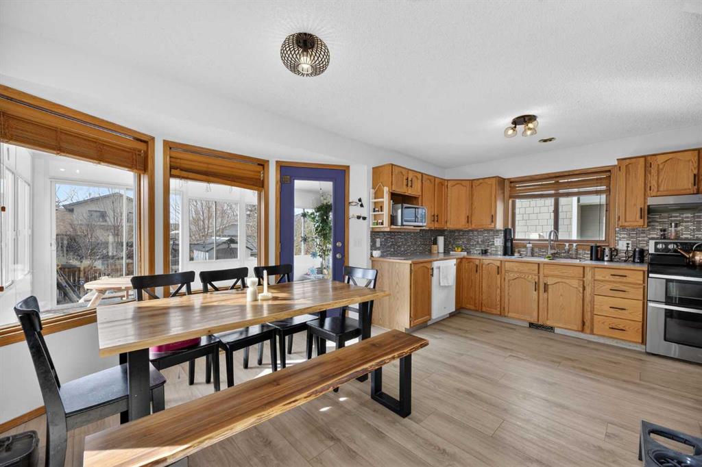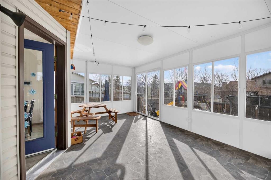 Tucked away on a quiet street in the established community of Meadowbrook, this home offers the space, updates, and location families are looking for. With mature trees, a large west-facing yard, and quick access to amenities, this property truly checks all the boxes. The main floor features a spacious kitchen with abundant counter and cupboard space and plenty of room for a large dining table—perfect for everyday living and entertaining. The dining area flows comfortably into the family living space and can easily double as a cozy reading nook. Just off the kitchen, the bright 18' X 12' three-season room provides additional living space and a great spot to relax while enjoying views of the backyard. Upstairs offers three bedrooms, including a generously sized primary bedroom with a large walk-in closet and convenient cheater access to the impressive 5-piece bathroom. The basement expands the living space with a large family room featuring a wet bar, plus a flexible area that works well as a home office, hobby space, or play area, along with ample storage. Recent upgrades include air conditioning (2019), a new garage door with opener (2020), vinyl plank flooring (2021), and a heated garage with plumbing rough-in for a sink. Located within walking distance to schools, parks, and everyday amenities, and offering quick access to Queen Elizabeth II Highway for an easy commute to Calgary. Homes in this location with this much finished space and a large yard don’t come along often—book your showing today.