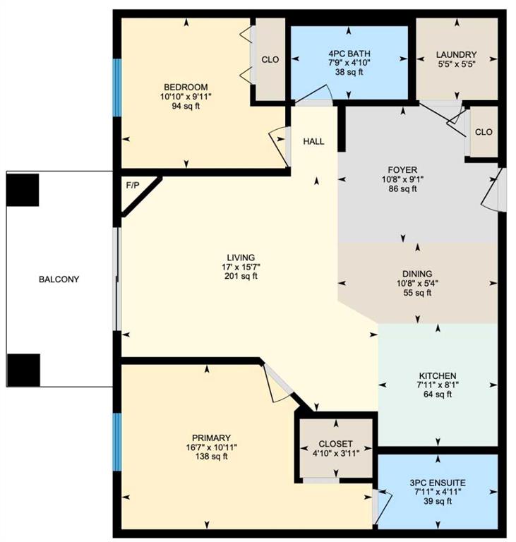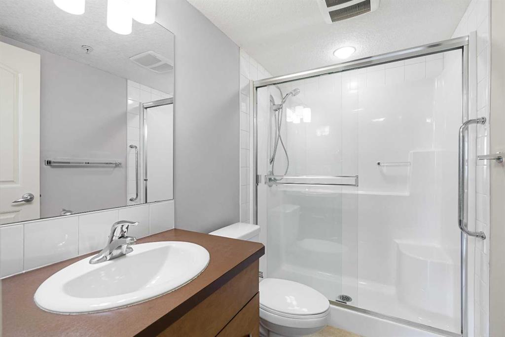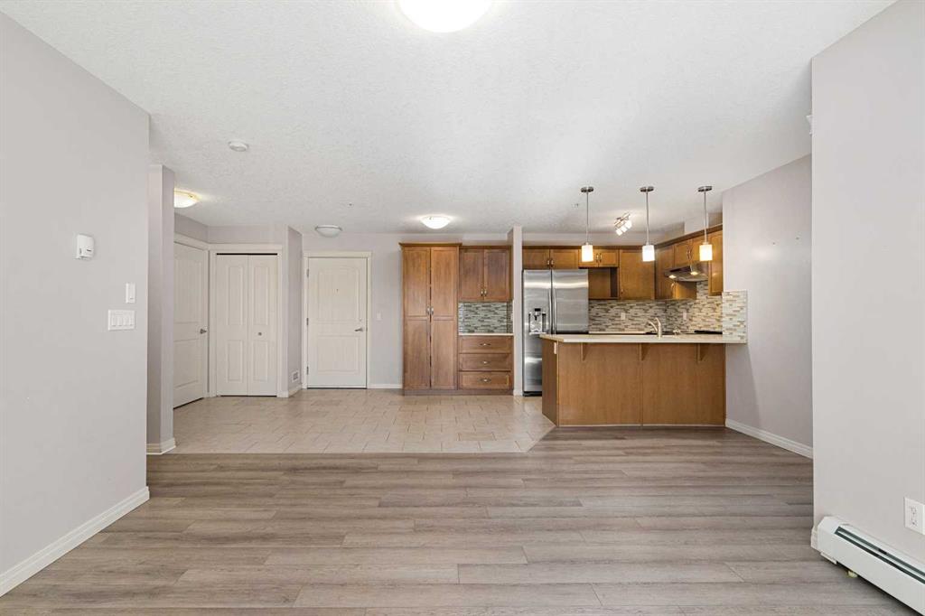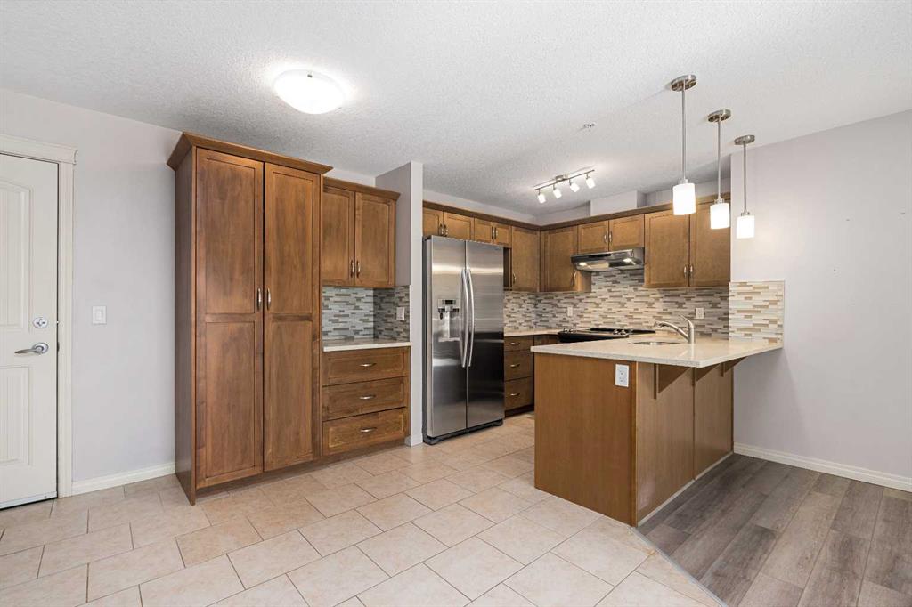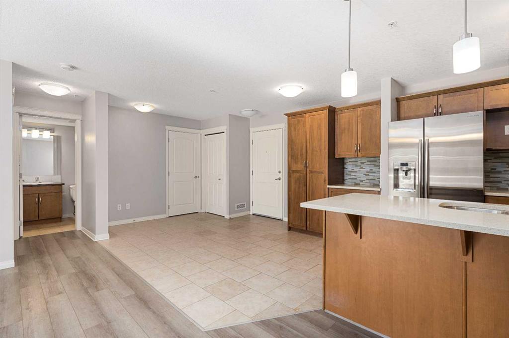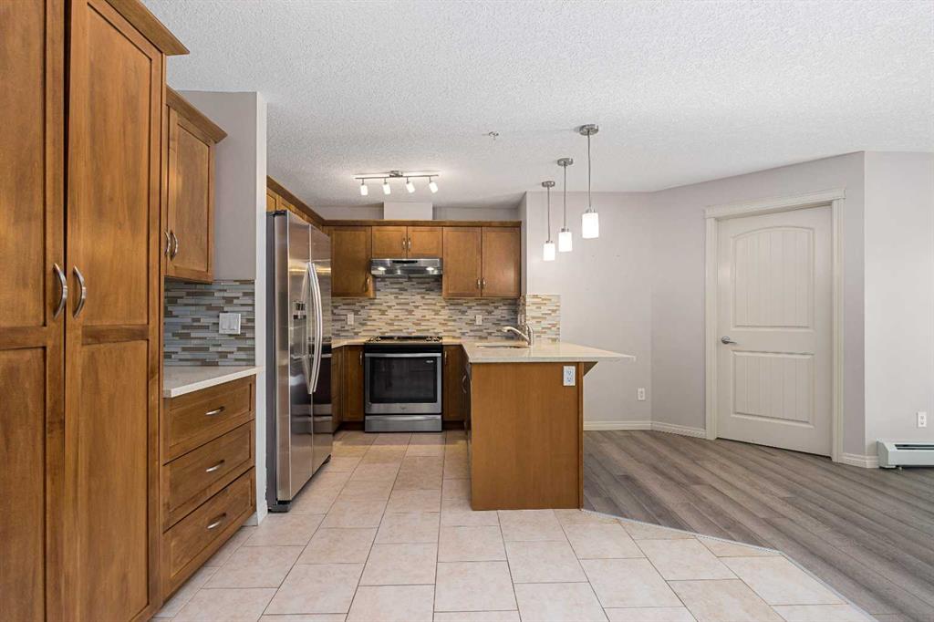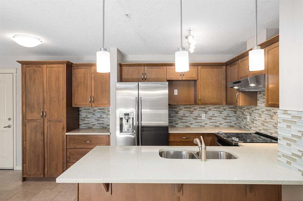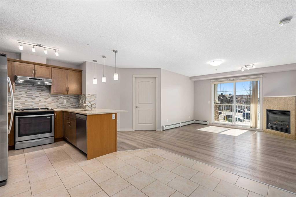 Beautiful and well-maintained 2-bedroom, 2-bathroom condo located in the desirable community of Cranston. This bright and functional unit offers an open-concept layout combining the kitchen, dining, and living areas, creating a comfortable space for both everyday living and entertaining. The kitchen features rich maple cabinetry, stainless steel appliances, modern tile backsplash, and a convenient peninsula with additional seating. The spacious living room is filled with natural light and offers a cozy corner gas fireplace with direct access to the private balcony — perfect for relaxing or enjoying your morning coffee. The primary bedroom includes a walk-through closet and a private 3-piece ensuite bathroom. The second bedroom is well-sized and located near the main 4-piece bathroom, making it ideal for guests, family members, or a home office. Additional highlights include in-suite laundry with extra storage space, durable flooring throughout the main living areas, and a well-designed layout that maximizes functionality. This unit also comes with a titled underground parking stall and private locker providing convenience and protection during the winter months. The building is well managed and offers secure entry and a welcoming lobby area. Located close to parks, schools, shopping, restaurants, and major roadways, this home provides easy access to everything the vibrant community of Cranston has to offer. A fantastic opportunity for first-time buyers, downsizers, or investors.