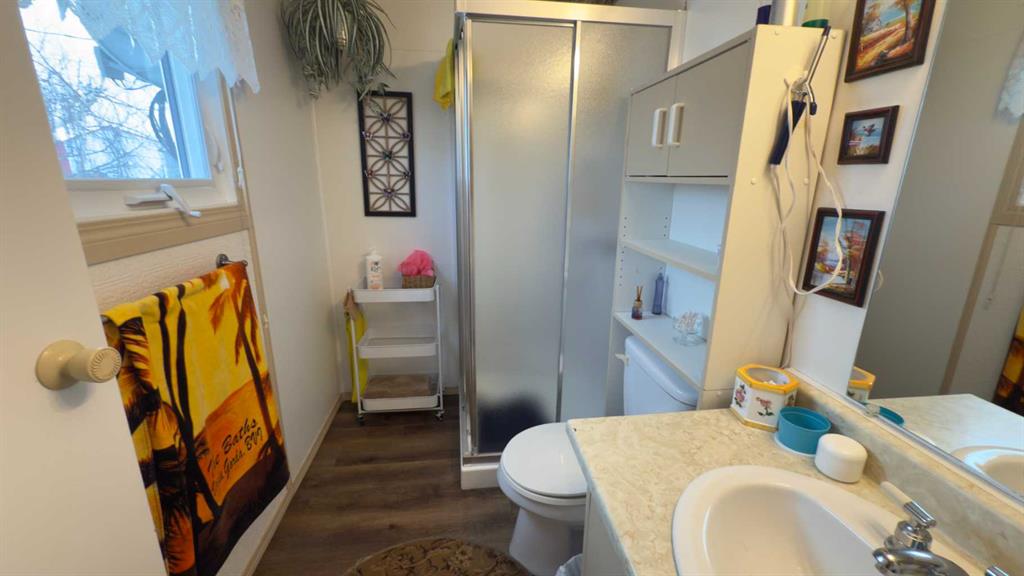 Double wide mobile home originally built in 1979 and moved onto a permanent foundation in 1989. This clean well cared for home clearly shows pride of ownership throughout. Features include metal insulated siding, vinyl windows and a durable corrugated metal roof on the home and garage. The home offers 4 bedrooms and 3 bathrooms, including a primary bedroom with ensuite. The fully finished basement provides additional living space with in-floor heat for added comfort and plenty of storage. Outside you’ll find a 28 x 26 insulated and heated garage, ideal for vehicles, projects or extra workspace. Located in a great community with everything you need close by!