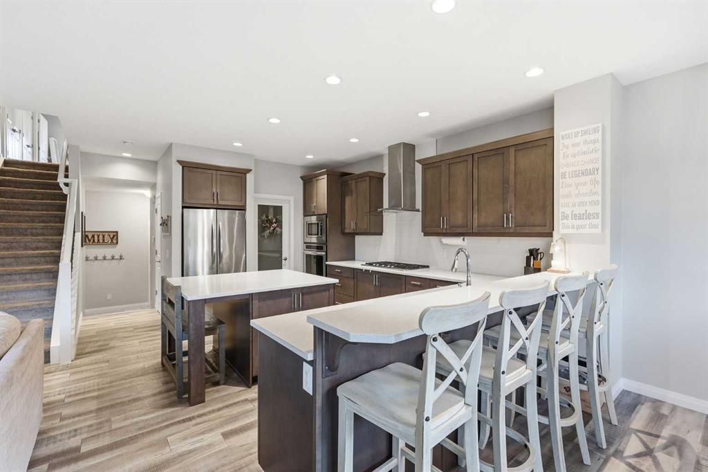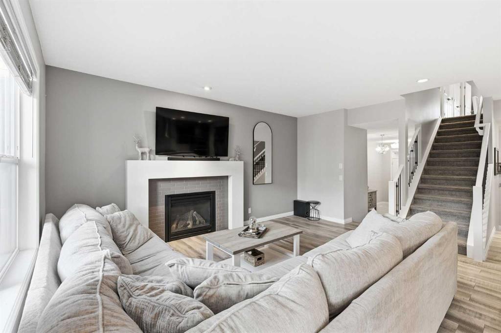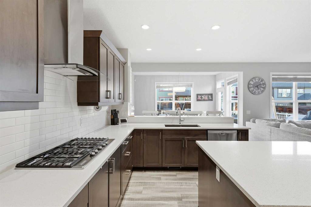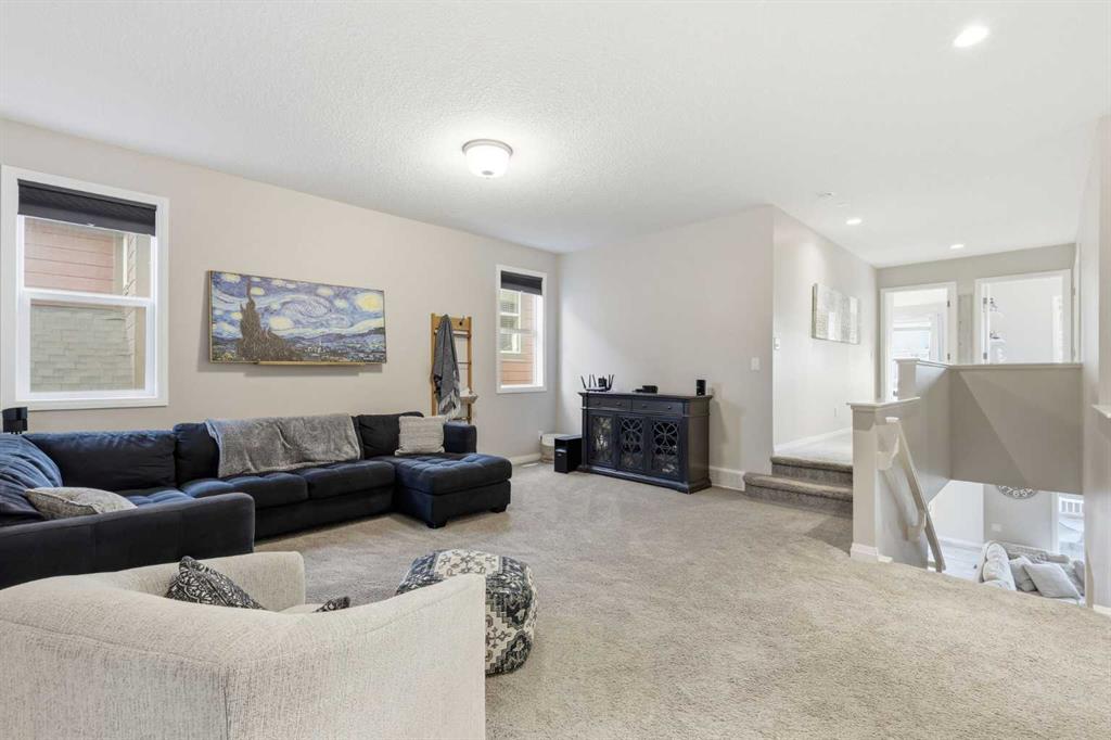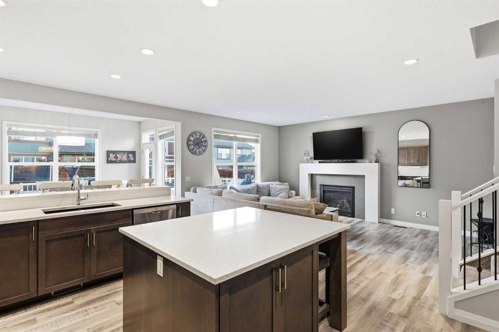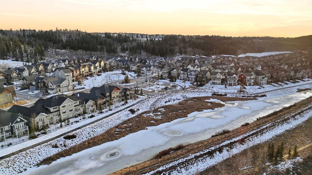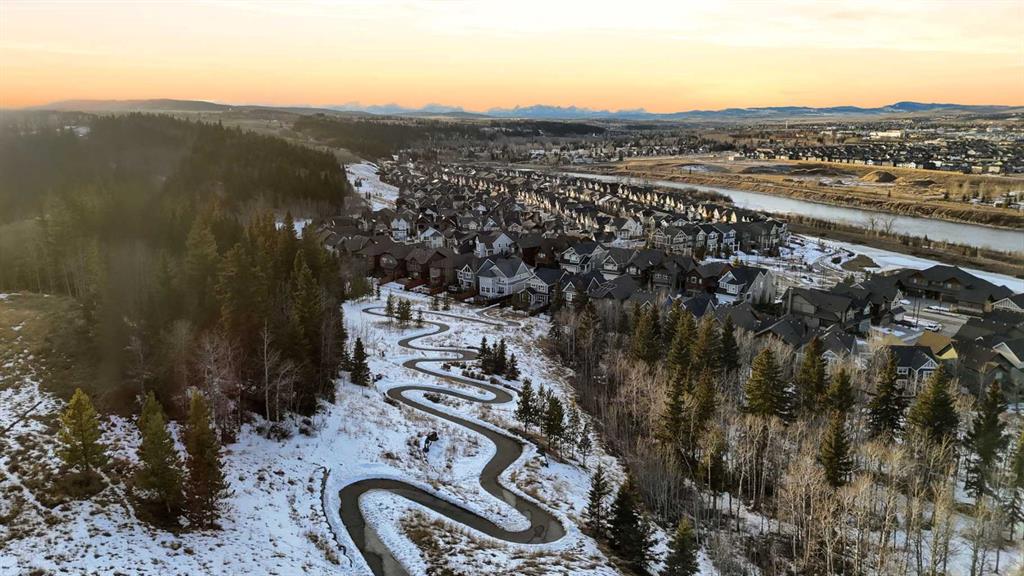 Welcome to Cochrane's premiere family-friendly community, Riviera! Tucked-away on a quiet cul-de-sac, this stunning home offers luxurious town living among natural surroundings. Riviera boasts extensive scenic pathways, playgrounds, and close proximity to the Bow River. Better value in Riviera seldom comes available. Inside, you'll find a bright and modern layout exuding style and comfort. The chef-inspired kitchen features quartz counters, spacious island, upgraded appliances, and is perfect for family meals or entertaining. Upstairs, a comfy bonus room, dedicated office space, and laundry room await. The primary bedroom includes a five-piece ensuite bathroom and walk-in closet. Outside, both front and back yards are fully landscaped. The oversized composite deck is perfect for summer BBQs and outdoor entertaining. Additional features include, central A/C, permanent exterior LED lights, and an Insulated and drywalled garage.