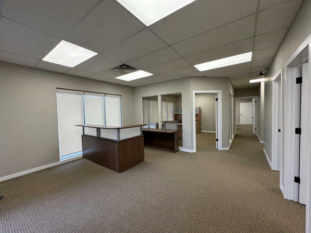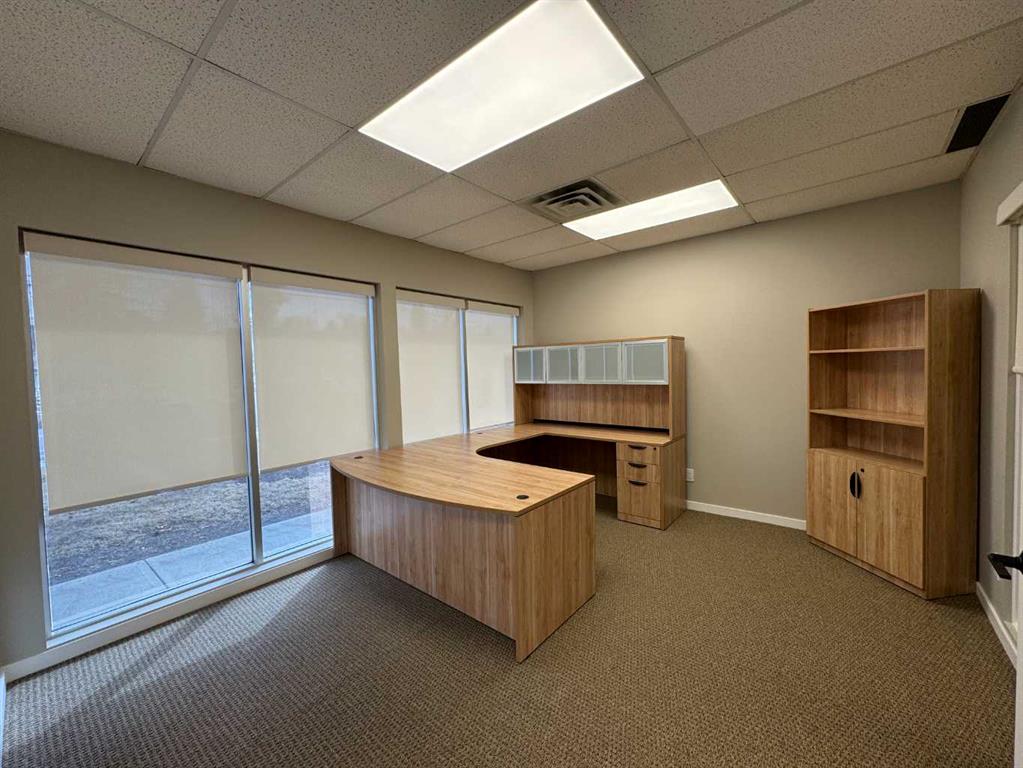 Beautifully renovated professional office space in the established Fairview district of Calgary. This bright corner unit has been fully refreshed with brand-new flooring, fresh paint throughout, modern blinds, and a completely updated kitchen and washroom facilities; delivering a clean, professional workspace ready for immediate occupancy. The efficient layout provides excellent natural light and accessible entry, making it suitable for a variety of professional or medical office users. There are two dedicated parking stalls for staff or client convenience. Select office furniture may also be included in the sale. Fairview is a centrally located and well-connected community with quick access to major transportation routes including Macleod Trail, Glenmore Trail, and Deerfoot Trail. The area is supported by strong nearby amenities, restaurants, and services, with major retail shopping minutes away at CF Chinook Centre. Public transit and LRT access are also close by, offering convenient connectivity for employees and visitors alike. A well-located, move-in-ready office opportunity in one of Calgary’s established business corridors.