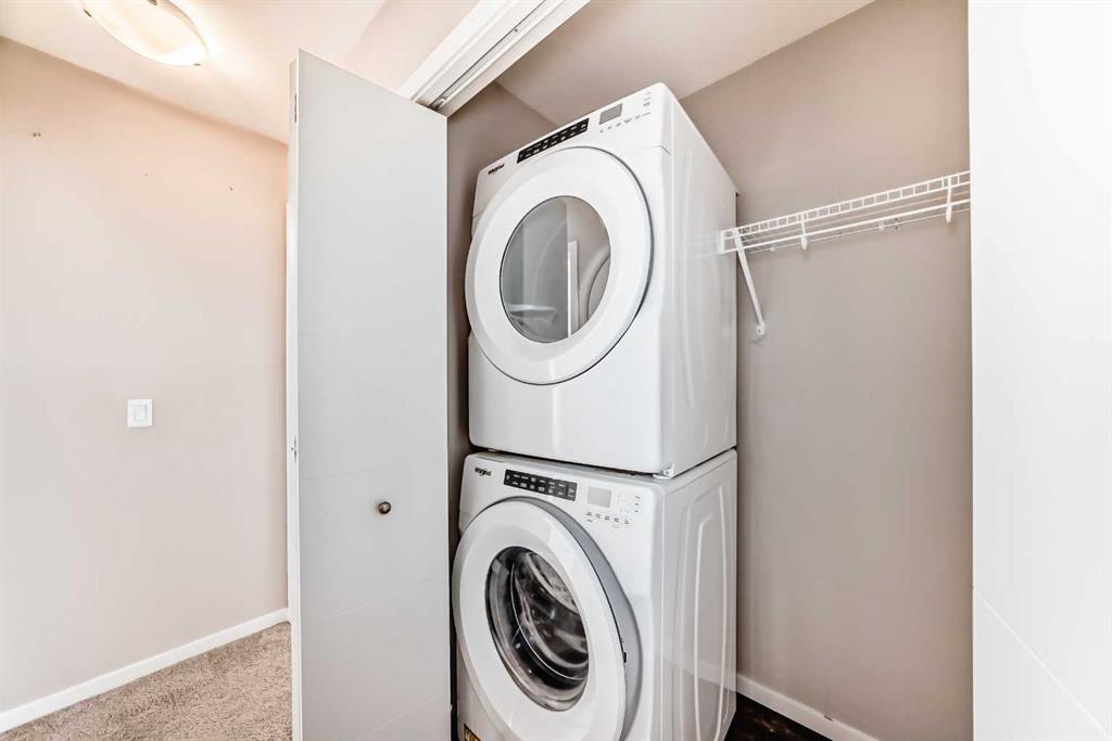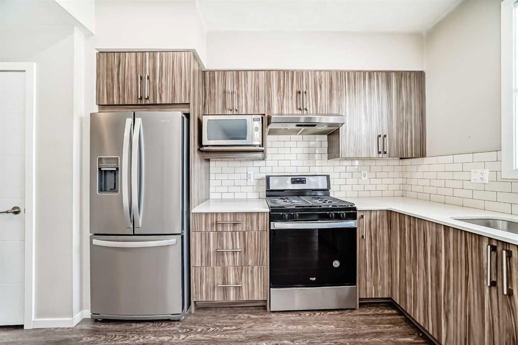 This bright and spacious two-storey townhome offers a functional open-concept layout with dual primary bedrooms, each complete with its own private ensuite. The main level features a modern kitchen with quartz countertops and a good sized dining and living room area with direct access to your west-facing balcony. A convenient powder room completes this level. Upstairs, you’ll find two spacious primary bedrooms, each with a 4-piece ensuite, along with upper-level laundry for added convenience. The home also offers a single attached garage with a private entrance to the unit and a side door leading outside. Plenty of visitor parking is available for guests. Built by Jayman, this well-maintained complex features a central park with a playground, BBQ area, and pergola for residents to enjoy. It is a pet-friendly complex with condo fees of $373.67 per month, which include Redstone’s annual HOA fee. Ideally located steps from the pathway system around the wetlands pond, shopping, and transit, with excellent access to Stoney Trail, Metis Trail, and Deerfoot Trail for an easy commute.
