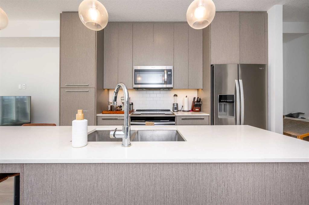 Welcome to beautiful Legends in the sought after community of Cornerstone. This 2 bed, 2 full bath unit comes with a spacious living room with large windows allowing the room to fill with natural light. The bedrooms are large, shaped appropriately and the primary bedroom has a massive 4pc ensuite bathroom. The kitchen comes with updated appliances, an ice and water dispensing fridge, built in cabinetry, and a kitchen island perfect for entertaining. This unit has in suite washer and dryer for ultimate convenience. This building is pet friendly with a dog wash station, has 2 elevators, staircase accessible, and the gym and building amenities are located in the same building. This unit has titled parking and the titled storage locker is located in a private locked room, inside the parkade away from the other dusty lockers. This unit is close to public transit, schools, walking paths, shopping, and all the amenities Calgary has to offer. Air BnB friendly building.