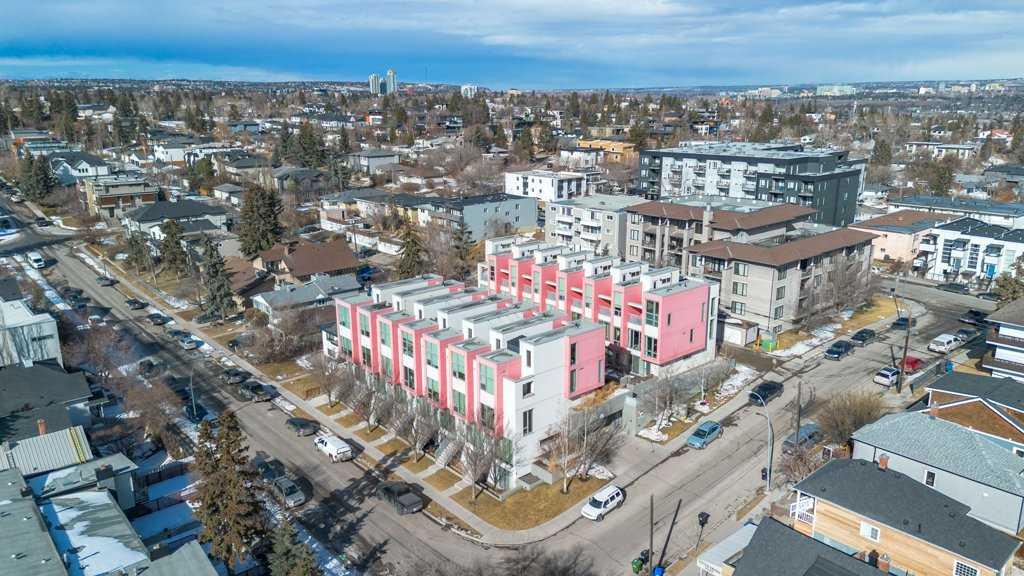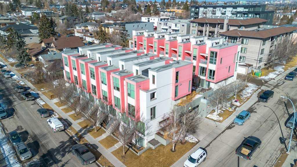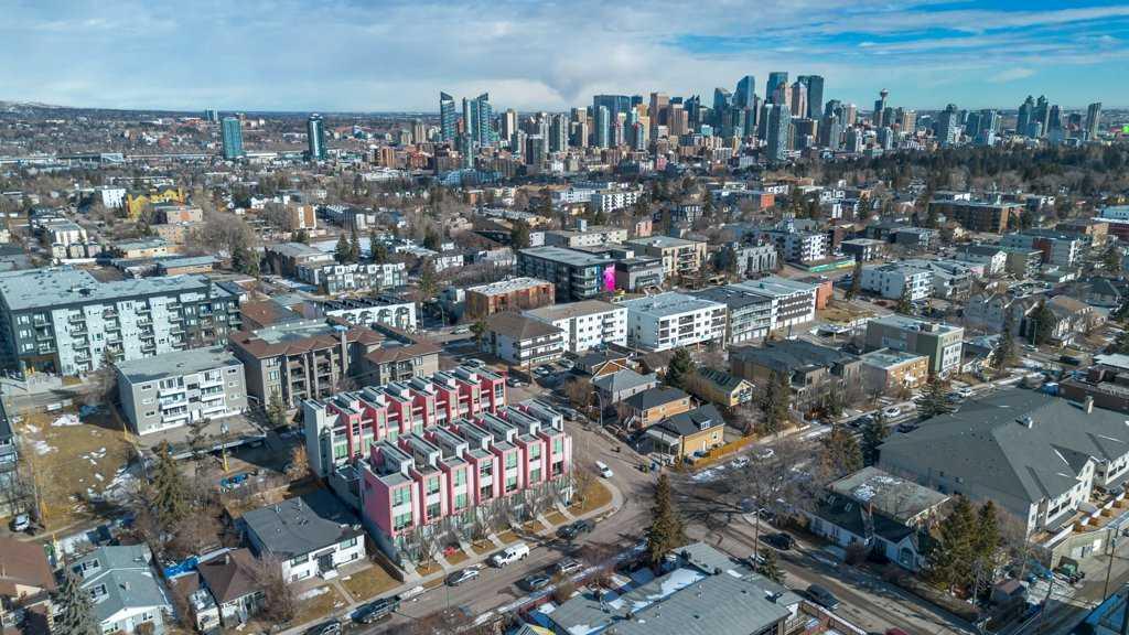 Experience quiet, upscale living in this beautifully upgraded townhome located in the heart of vibrant Marda Loop. Built with solid concrete construction, this home offers exceptional soundproofing and privacy—creating a peaceful retreat in one of Calgary’s most sought-after inner-city communities. Inside, modern design meets thoughtful upgrades. The main floor features engineered hardwood flooring, while the bedrooms and second-floor hallway were updated with engineered Canadian maple hardwood (Fall 2023). The office/den showcases European-made luxury vinyl plank flooring, and the stairs are finished with 100% wool carpet (Fall 2023) for added comfort. The stylish kitchen includes a Bosch dishwasher with built-in water softener (2024) and an updated Miele induction cooktop. Enjoy in-floor heating throughout the home as well as air conditioning for year-round comfort. Upstairs are two spacious bedrooms, each with its own ensuite, while the private rooftop patio provides a beautiful space to relax or entertain. Just steps from the shops, restaurants, and cafés of Marda Loop, this home offers the perfect blend of modern upgrades, quiet concrete construction, and an unbeatable inner-city location.
