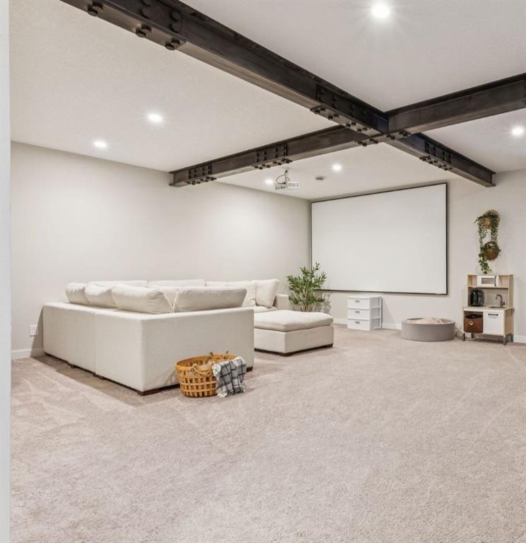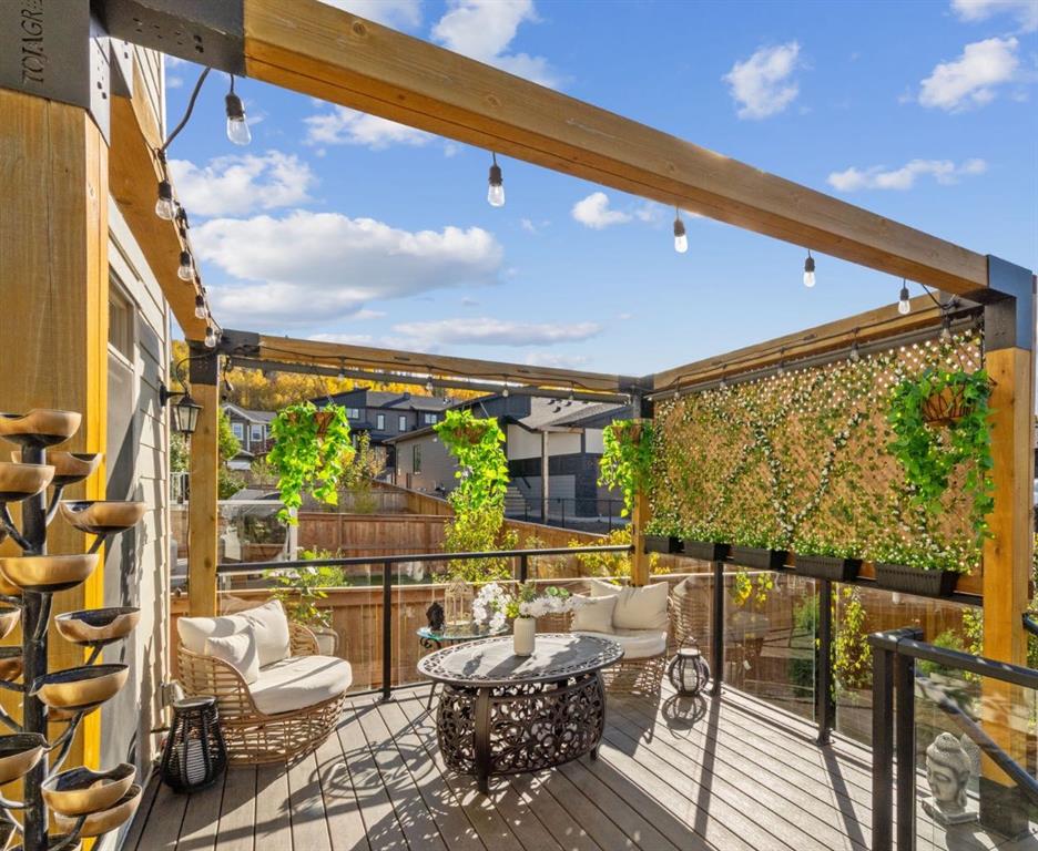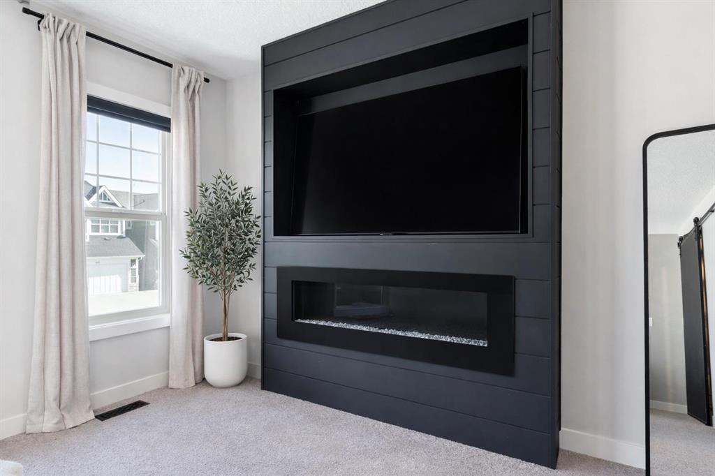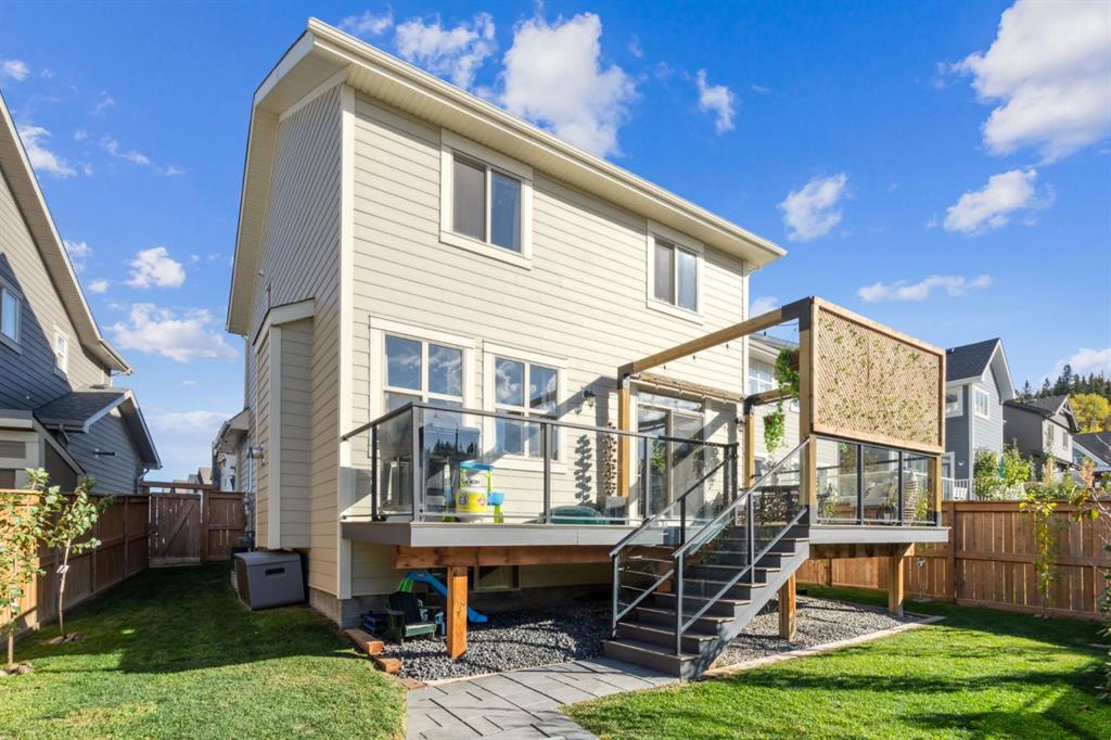 Welcome to this stunning smart-enabled home in the prestigious community of Riviera, where timeless style blends seamlessly with modern convenience. A bright OPEN-TO-BELOW foyer welcomes you with expansive windows and beautiful EXPOSED CEILING BEAMS that highlight the home’s architectural charm. The main floor offers a dedicated OFFICE, a stylish powder room, and added ease with the NEST SMART SYSTEM. The gourmet kitchen serves as the centrepiece, showcasing UPGRADED APPLIANCES, a gas cooktop with chimney hood fan, an oversized island, and STRIKING FEATURE WALLS. The adjoining living room is warm and inviting with its GAS FIREPLACE and airy, light-toned finishes. Upstairs, a bright bonus room with CUSTOM FEATURE WALLS provides flexible living space. The west-facing kids’ bedrooms offer cozy SHIPLAP DETAILS, while the primary bedroom is a luxurious haven—complete with its own FIREPLACE, TINTED WINDOWS, AUTOMATIC BLINDS, and a spa-like 5-PIECE ENSUITE with soaker tub, tiled shower, and a WALK-THROUGH CLOSET with BARN DOOR and CUSTOM ORGANIZERS. The FULLY DEVELOPED BASEMENT is designed for hosting and relaxation, featuring 9-ft CEILINGS, a WET BAR with BAR FRIDGE, a spacious THEATRE ROOM enhanced by UNIQUE BEAMS, and ABUNDANT STORAGE. Step into your west-facing backyard, PROFESSIONALLY LANDSCAPED with an ELEVATED COMPOSITE DECK and GLASS RAILINGS, PERGOLA, STONE GAS FIRE PIT, and mature trees lining the PIE-SHAPED LOT for enhanced privacy—perfect for relaxing or entertaining. NOTABLE FEATURES: • Multiple custom feature walls • Brand-new air conditioning • Automatic blinds & smart-home integration • Engineered hardwood flooring • West-facing, fully landscaped yard Experience the best of Riviera living—surrounded by natural beauty, river pathways, and a true family-friendly environment.