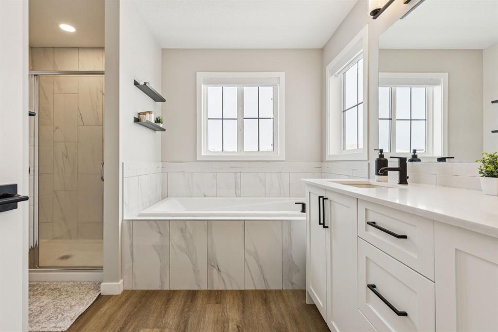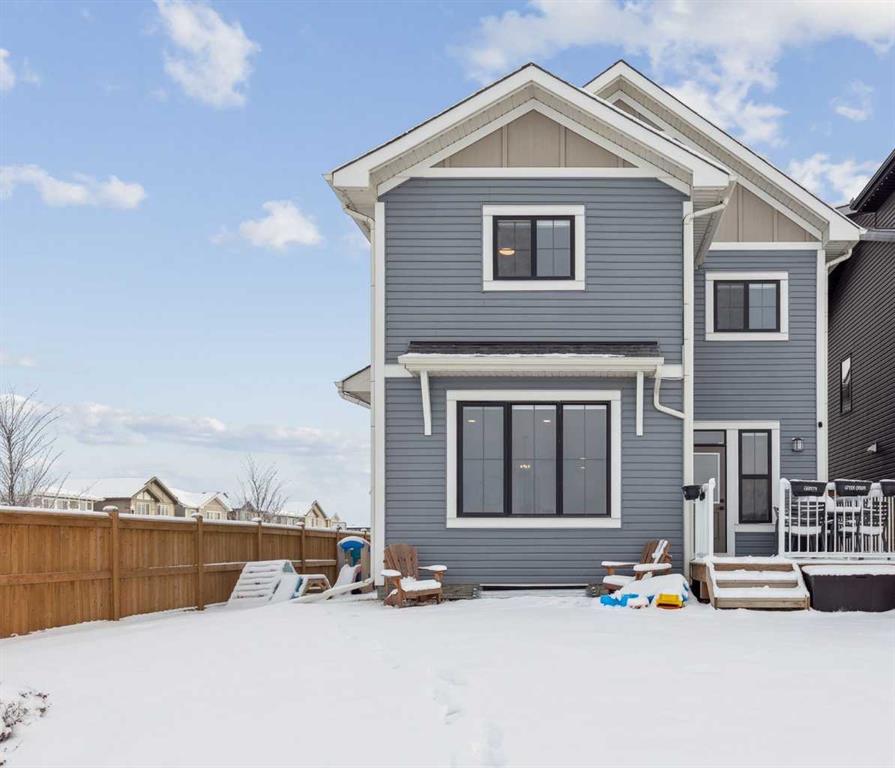 Welcome to this stunning FORMER SHOW HOME, 3-STOREY CORNER-LOT home in Heartland, offering exceptional style, thoughtful upgrades, and unbeatable MOUNTAIN VIEWS FROM EVERY LEVEL. Perfectly positioned backing onto GREEN SPACE, this property features a fully fenced WEST-FACING BACKYARD, complete with a spacious DECK. Step inside to a bright and airy main floor with LARGE WINDOWS, BUILT-IN SPEAKERS (requires Sonos amp to run them), and a sleek ELECTRIC FIREPLACE with a FLOATING MANTLE. The modern kitchen is designed for everyday living and entertaining, featuring stainless steel appliances including a BUILT-IN WALL OVEN and MICROWAVE, plus a fridge and dishwasher. A WALKTHROUGH PANTRY flows seamlessly into the mudroom for added convenience. Thoughtful touches throughout include BUILT-IN GATES that match the railing on all stairways—ideal for families and pets. Upstairs on the second level, you’ll find a spacious BONUS ROOM, a well-appointed LAUNDRY ROOM with WIRE SHELVING, and three bedrooms. The primary bedroom impresses with a stylish FEATURE WALL, a bright WALK-IN CLOSET with a WINDOW, and a luxurious 5PC ENSUITE with a TILED SHOWER, SOAKING TUB, DUAL SINKS with QUARTZ COUNTERS, and a STANDALONE SHOWER. The two additional bedrooms each offer WALK-IN CLOSETS, BUILT-INS, and MOUNTAIN VIEWS—one with its own charming FEATURE WALL. A 4PC MAIN BATH with QUARTZ COUNTERS completes this floor. The THIRD-LEVEL LOFT is a fantastic bonus space, offering a versatile BONUS/PLAY AREA, an ADDITIONAL BEDROOM, and a 4PC BATHROOM—all enjoying ELEVATED MOUNTAIN VIEWS. The basement is finished to below and left UNFINISHED, providing great potential along with a SIDE ENTRY—perfect for future development. The insulated garage comes equipped with a bike rack, adding to the home’s functionality. Additional features include AIR CONDITIONING and beautifully completed LANDSCAPING. A rare opportunity to own a 3-storey home with this level of space, design, and views in Heartland—don’t miss it!