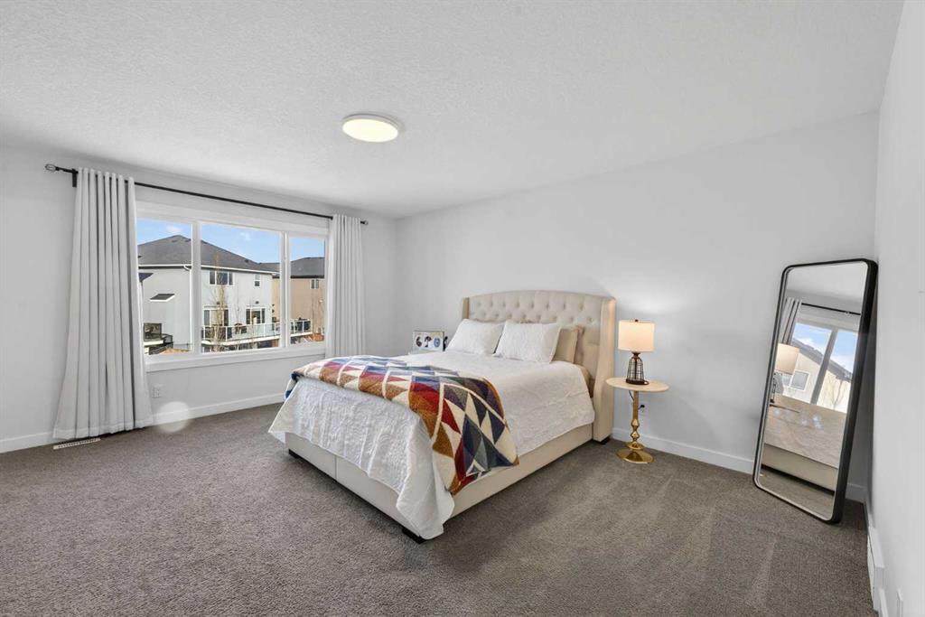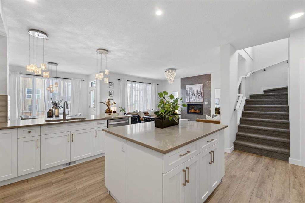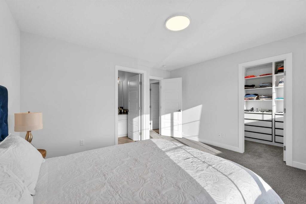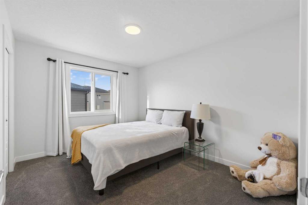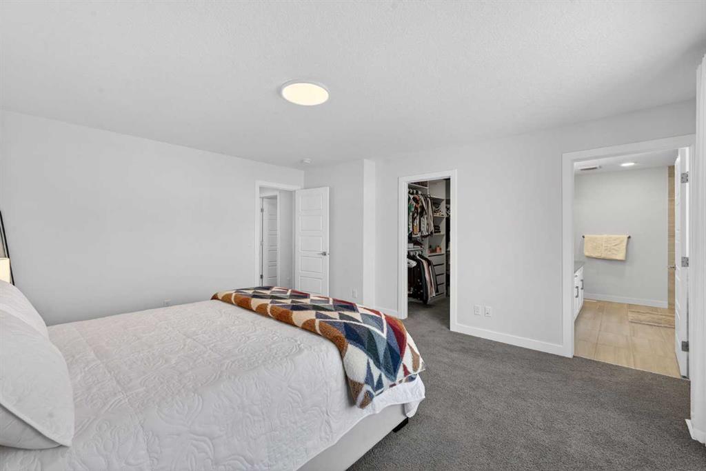 RARE 8,700+ SQ FT LOT | 2,638 SQ FT | 5 BEDROOMS & 3.5 BATHS | SPICE KITCHEN | 2 PRIMARY SUITES | SEPARATE ENTRANCE BASEMENT | 9 FT BASEMENT CEILINGS | HUGE CONCRETE DECK | FULLY FENCED YARD (2024) | OVERSIZED GARAGE | OVERSIZED DRIVEWAY | QUIET CUL-DE-SAC | WALK TO SCHOOL & PARKS. Welcome to this 2022-built detached home in the sought-after community of Kinniburgh in Chestermere. Offering 2,638 sq ft on a rare almost 8,800 sq ft lot, this home sits on a quiet cul-de-sac and features 5 bedrooms and 3.5 bathrooms, including a main floor bedroom —ideal for guests or multi-generational living. The executive U-shaped kitchen with large island, pantry, and separate spice kitchen flows into the bright open living and dining area with vinyl flooring throughout the main floor. Upstairs offers 4 spacious bedrooms including 2 primary suites with ensuites and walk-in closets. The unfinished basement with 9-ft ceilings and separate entrance offers excellent future development potential. Enjoy the huge landscaped and fully fenced backyard (2024) with a large concrete deck, plus an oversized garage and oversized concrete driveway. Walking distance to the elementary school, parks, and pathways.