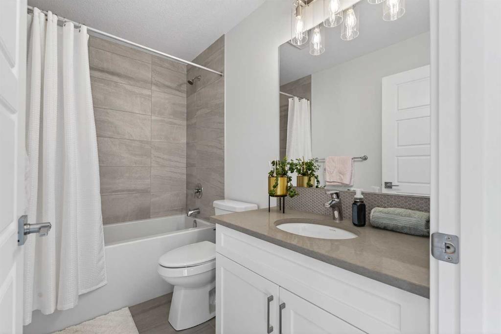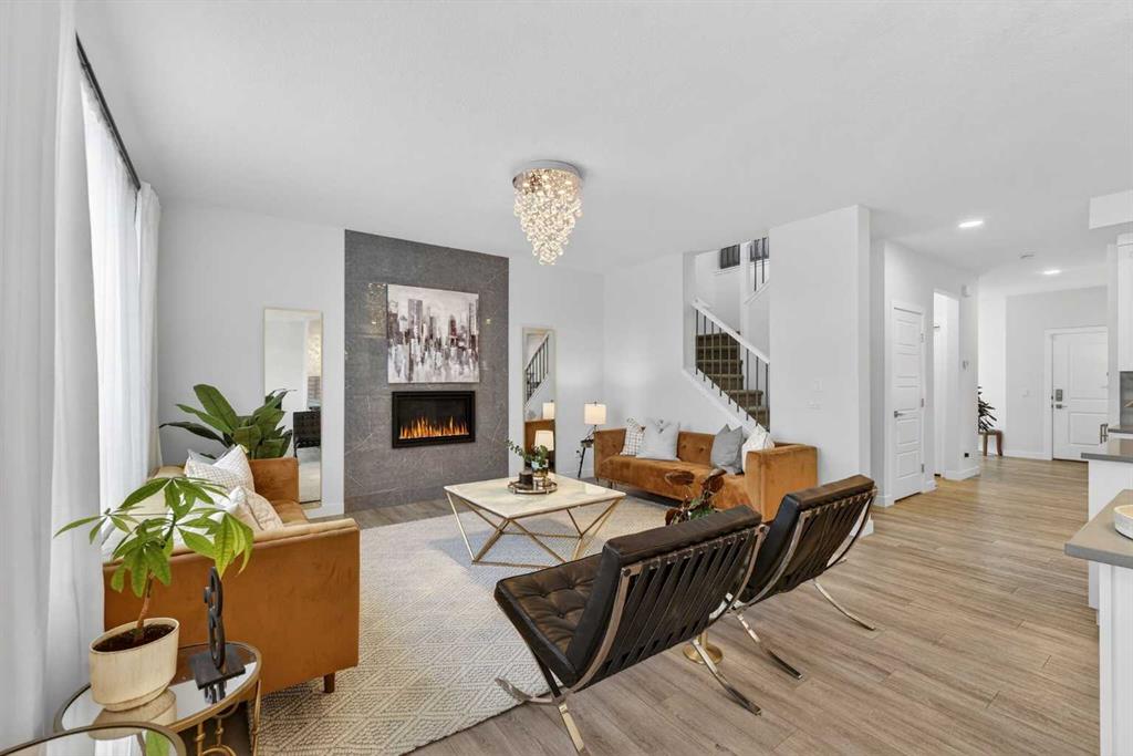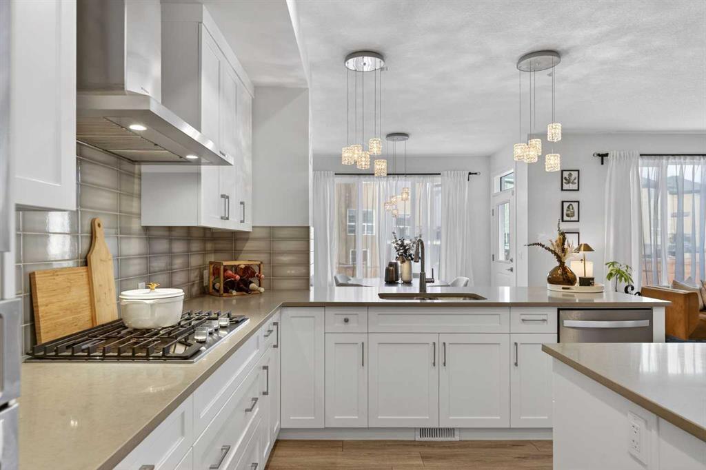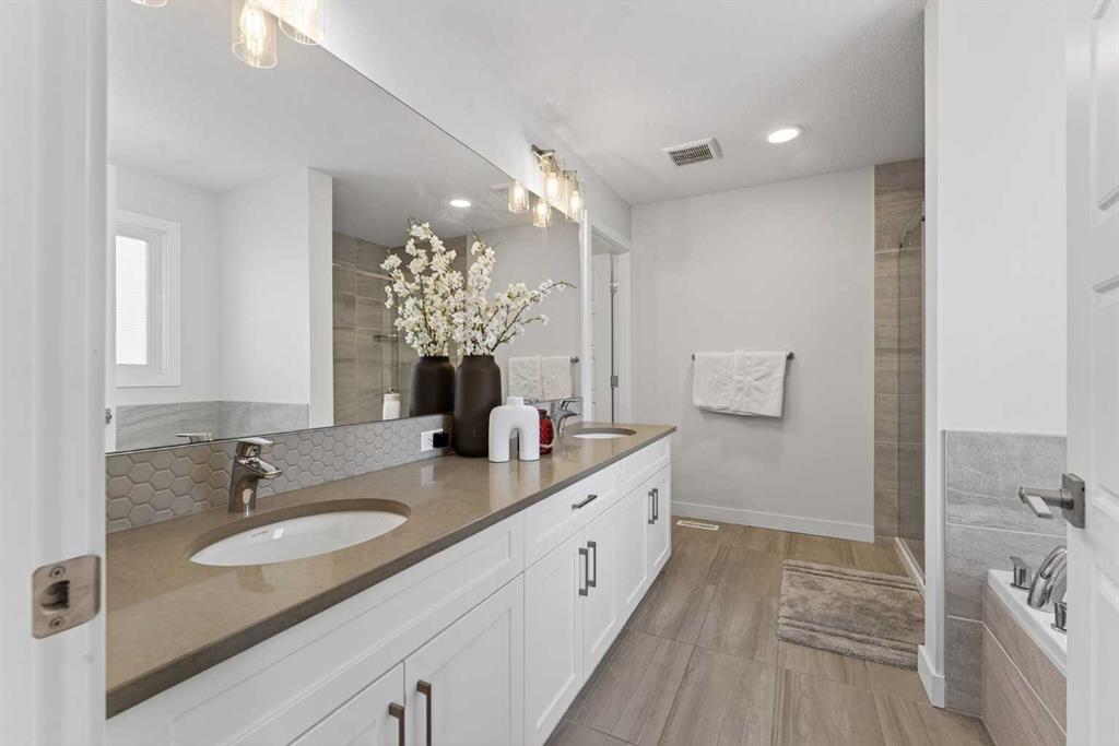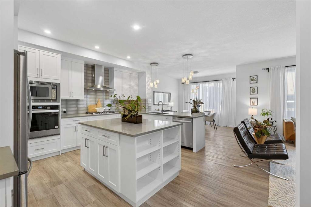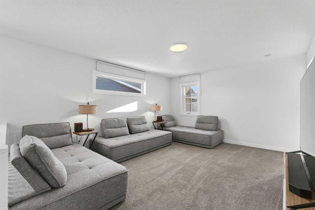 RARE 8,700+ SQ FT LOT | 2,638 SQ FT | 5 BEDROOMS & 3.5 BATHS | SPICE KITCHEN | 2 PRIMARY SUITES | SEPARATE ENTRANCE BASEMENT | 9 FT BASEMENT CEILINGS | HUGE CONCRETE DECK | FULLY FENCED YARD (2024) | OVERSIZED GARAGE | OVERSIZED DRIVEWAY | QUIET CUL-DE-SAC | WALK TO SCHOOL & PARKS. Welcome to this 2022-built detached home in the sought-after community of Kinniburgh in Chestermere. Offering 2,638 sq ft on a rare almost 8,800 sq ft lot, this home sits on a quiet cul-de-sac and features 5 bedrooms and 3.5 bathrooms, including a main floor bedroom —ideal for guests or multi-generational living. The executive U-shaped kitchen with large island, pantry, and separate spice kitchen flows into the bright open living and dining area with vinyl flooring throughout the main floor. Upstairs offers 4 spacious bedrooms including 2 primary suites with ensuites and walk-in closets. The unfinished basement with 9-ft ceilings and separate entrance offers excellent future development potential. Enjoy the huge landscaped and fully fenced backyard (2024) with a large concrete deck, plus an oversized garage and oversized concrete driveway. Walking distance to the elementary school, parks, and pathways.
